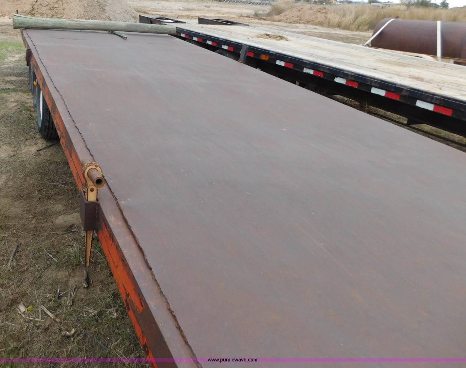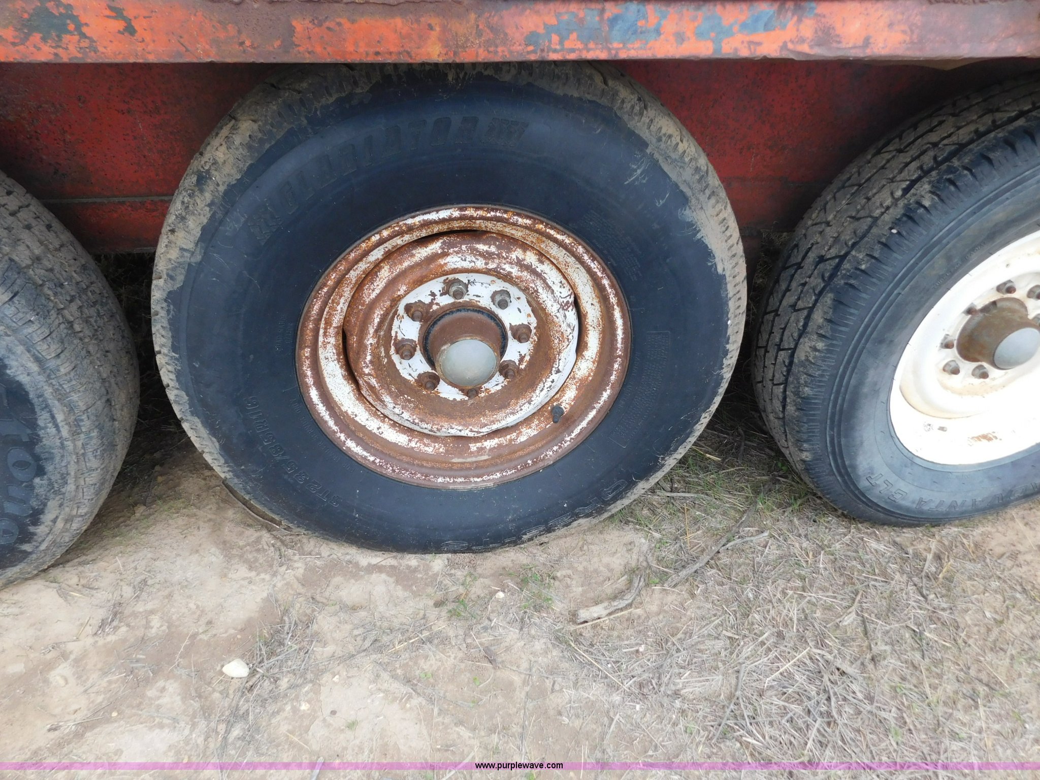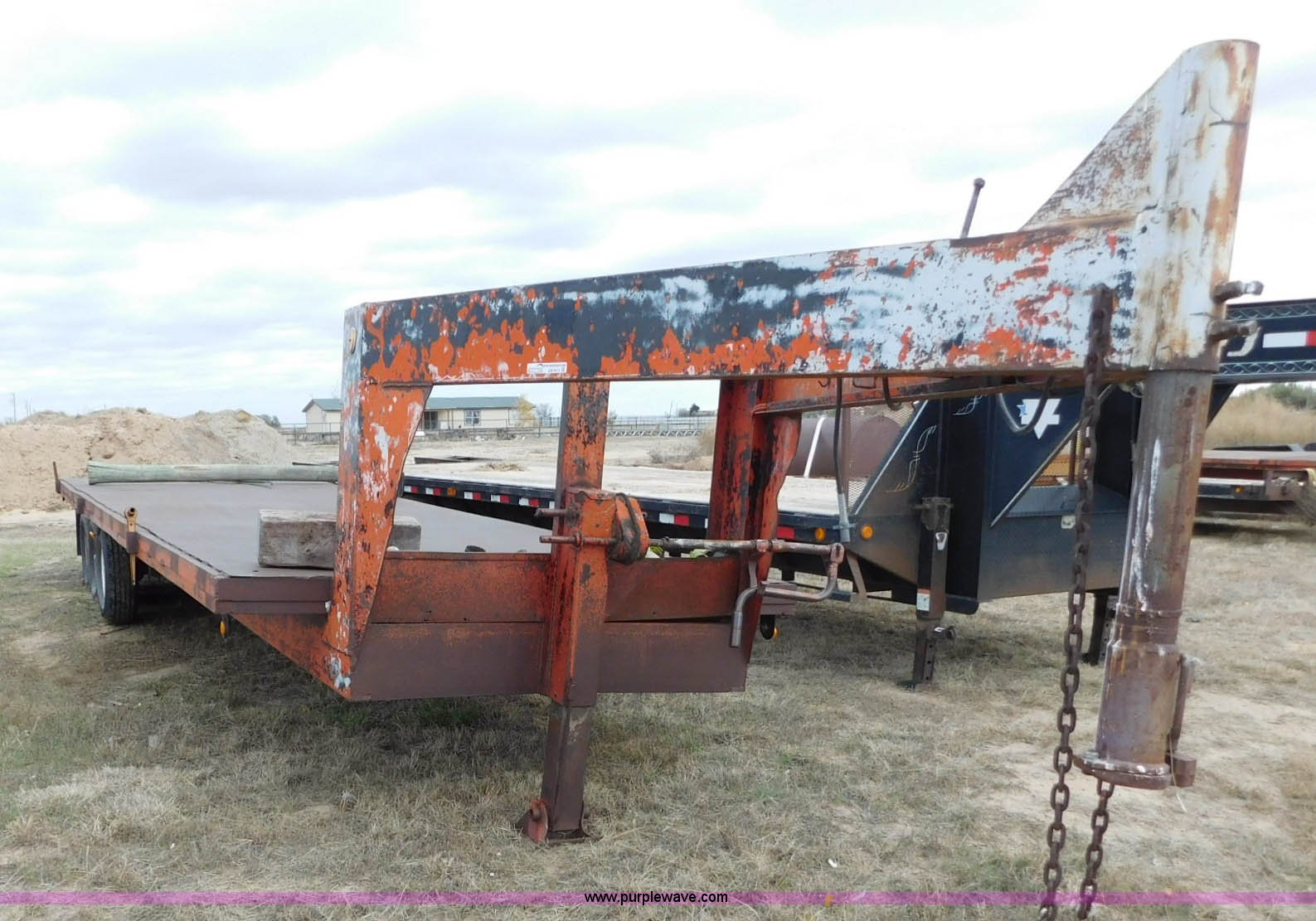 Purple Wave is selling a used Equip. Trailer in Oklahoma. This item is a Shop built equipment trailer with the following: 30'L x 90"W, Steel deck, Single leg landing gear, Gooseneck hitch, Single leg landing gear, LT245/75R16 tires, Dents, Paint weathered