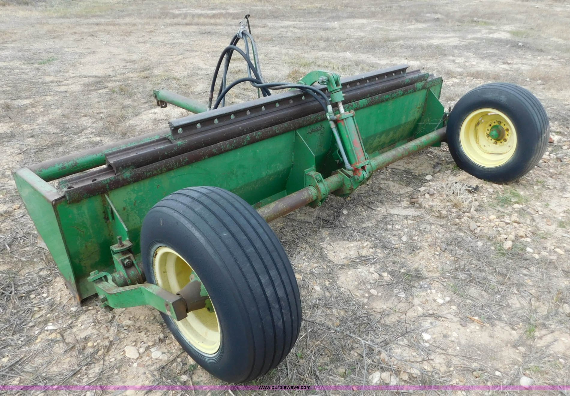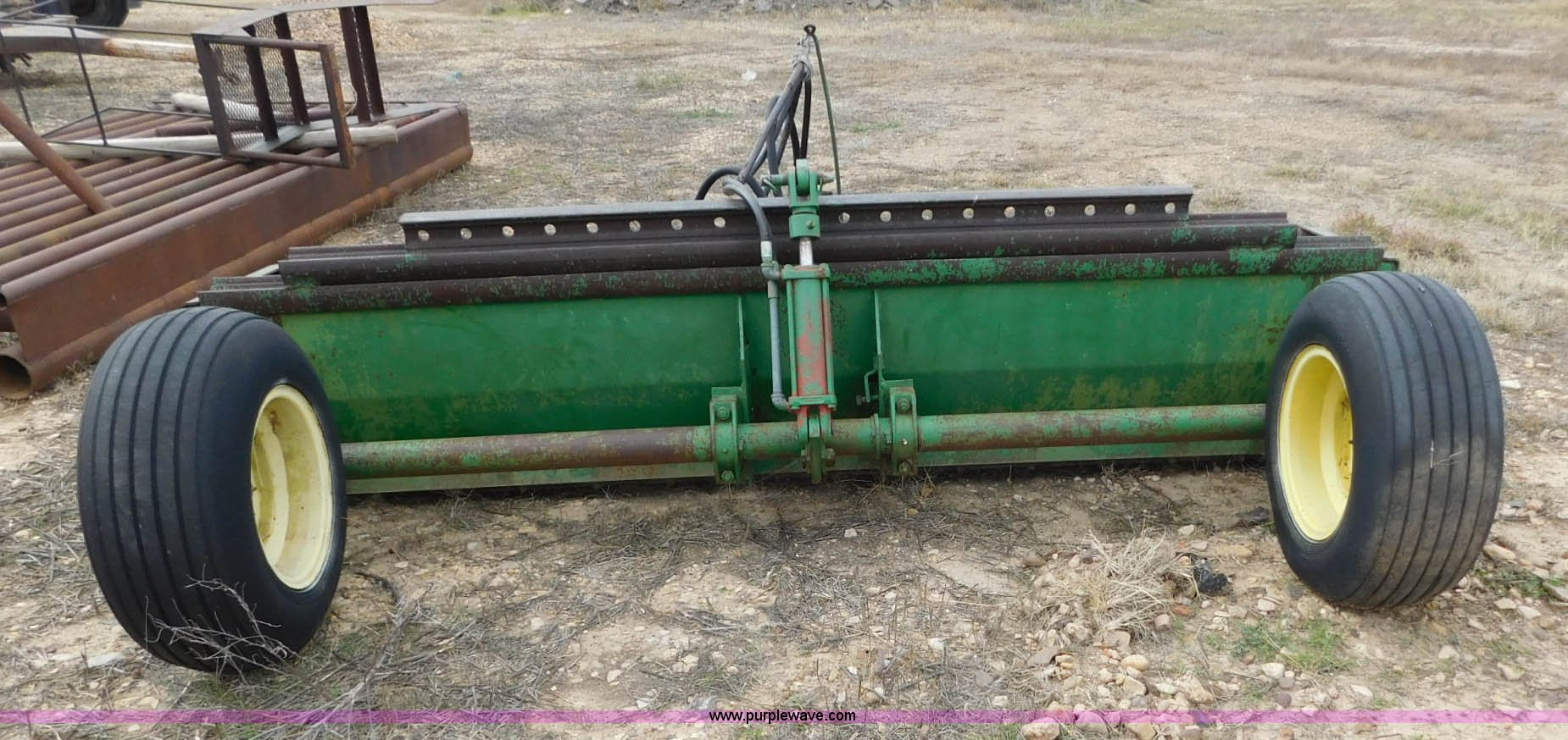 Purple Wave is selling a used Pull Type Scraper in Oklahoma. This item is a John Deere box blade with the following: 9'10"W, Hydraulic raise and lower, Pin hitch, 11L-15 tires, Serial 810-01