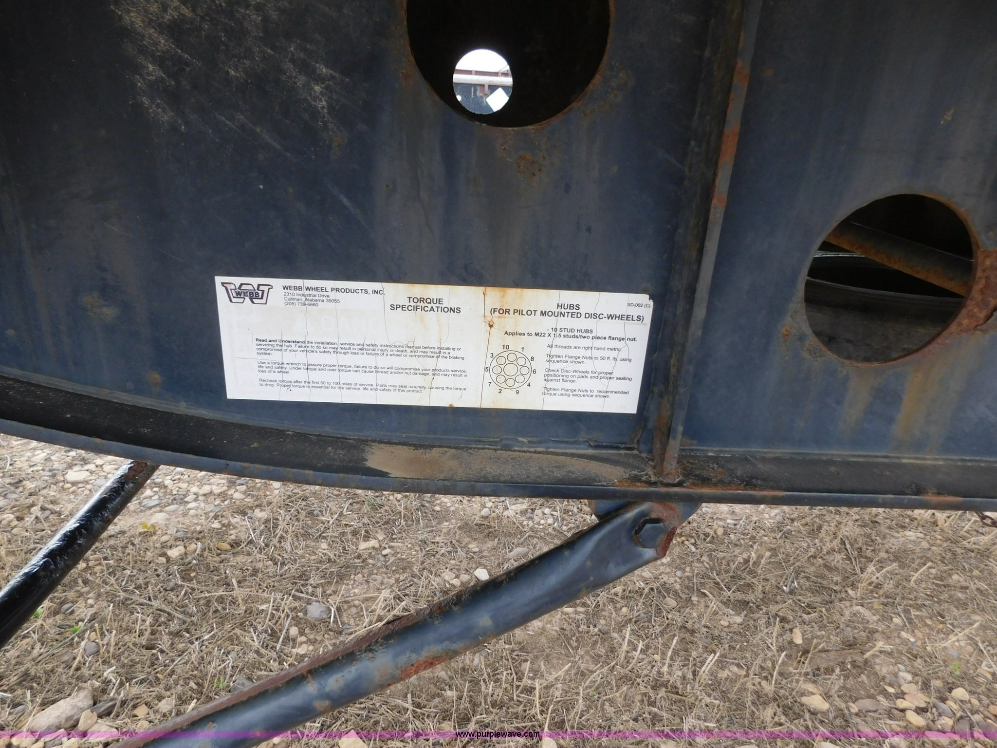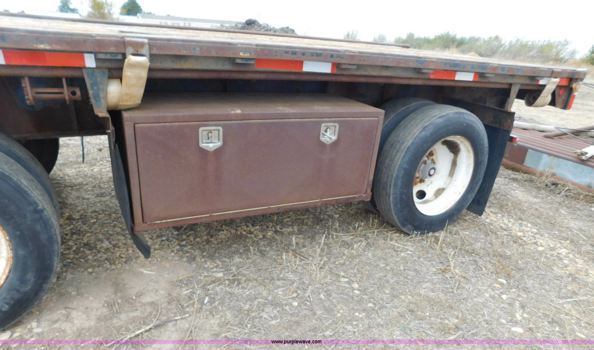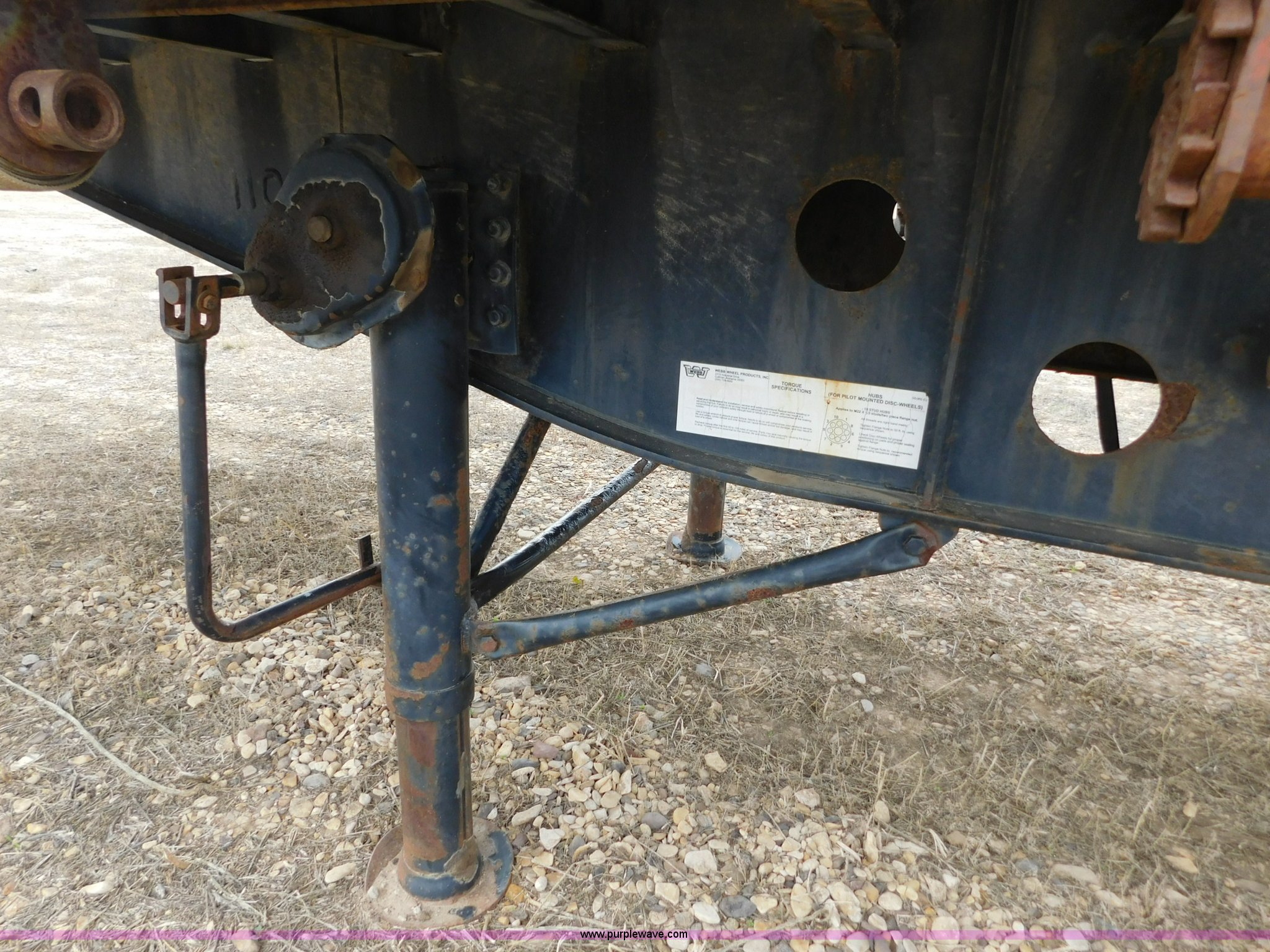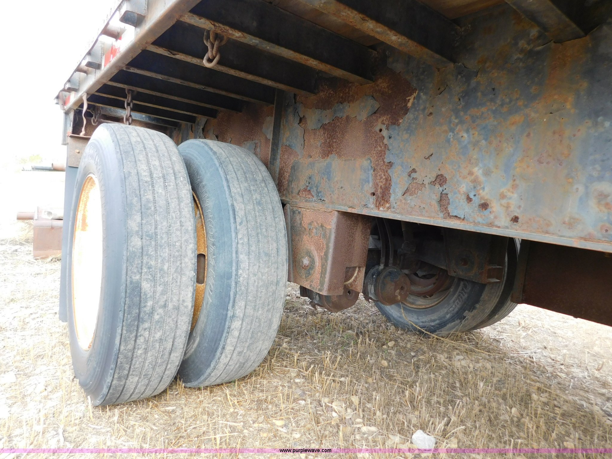 Purple Wave is selling a used Flat or Drop Deck Trailer in Oklahoma. This item is a 1992 Transcraft TL-110 flatbed trailer with the following: 48'L x 8'W, 60 ton capacity, Wood deck, Ratchet tie downs, Under mounted toolbox, Manual landing gear, Mud flaps, Air brakes, 285/75R24.5 tires, GVWR 80,000 lbs, GAWR 22,560 lbs, Weld repairs to frame, Hole in deck, Contents are not included