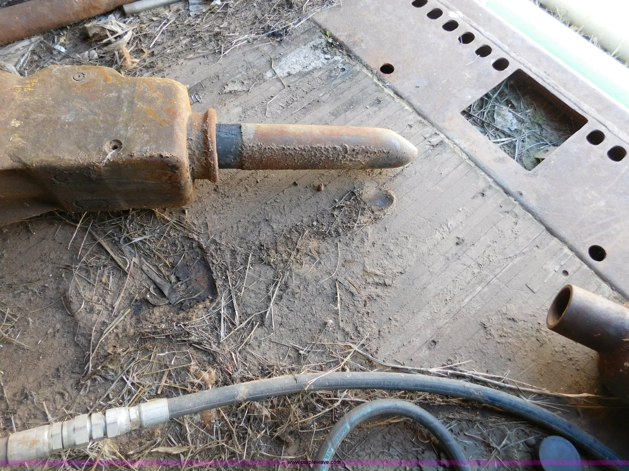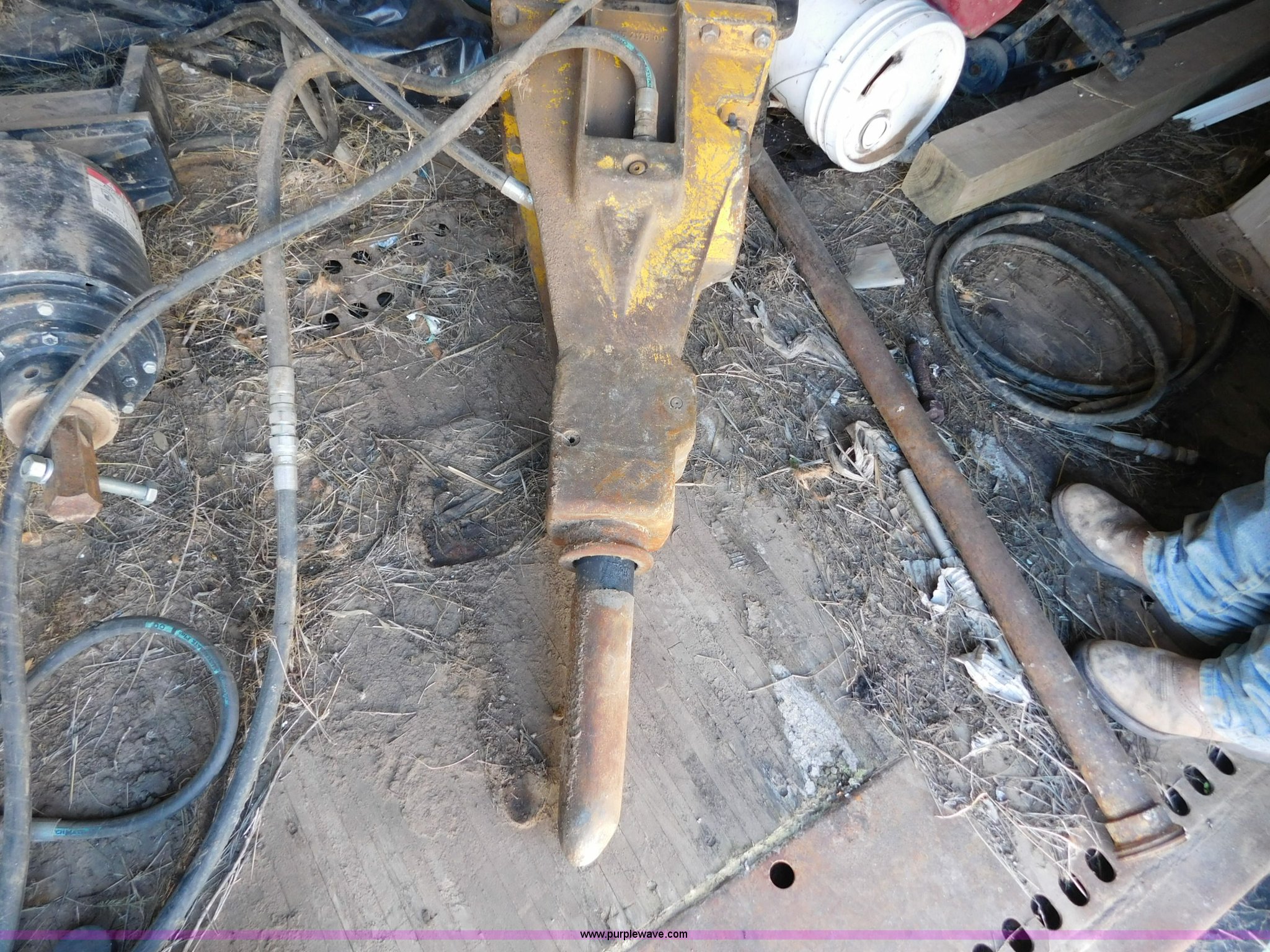 Purple Wave is selling a used Backhoe Attach. in Oklahoma. This item is a Central Fabricators Inc. 580K backhoe concrete breaker with the following: Serial 85489