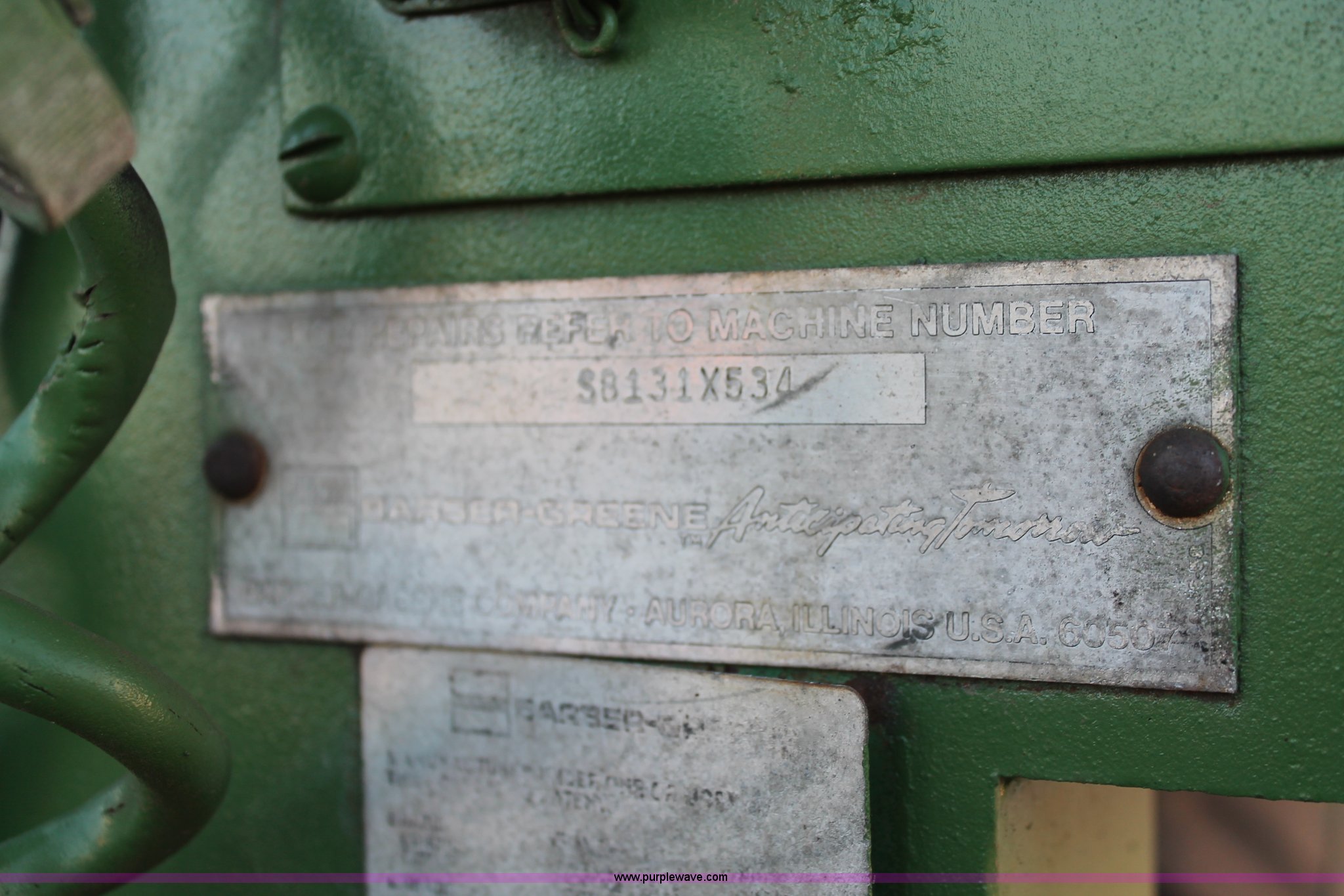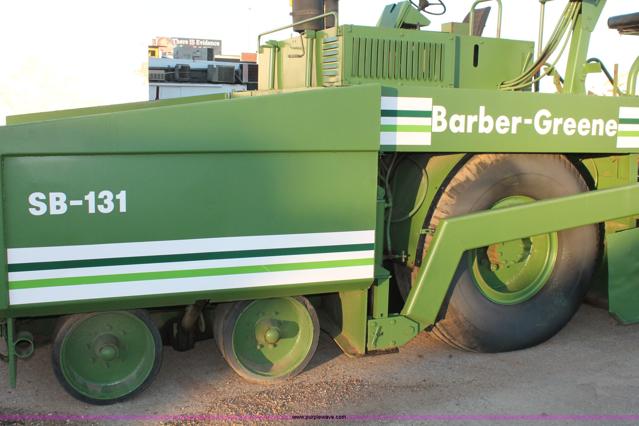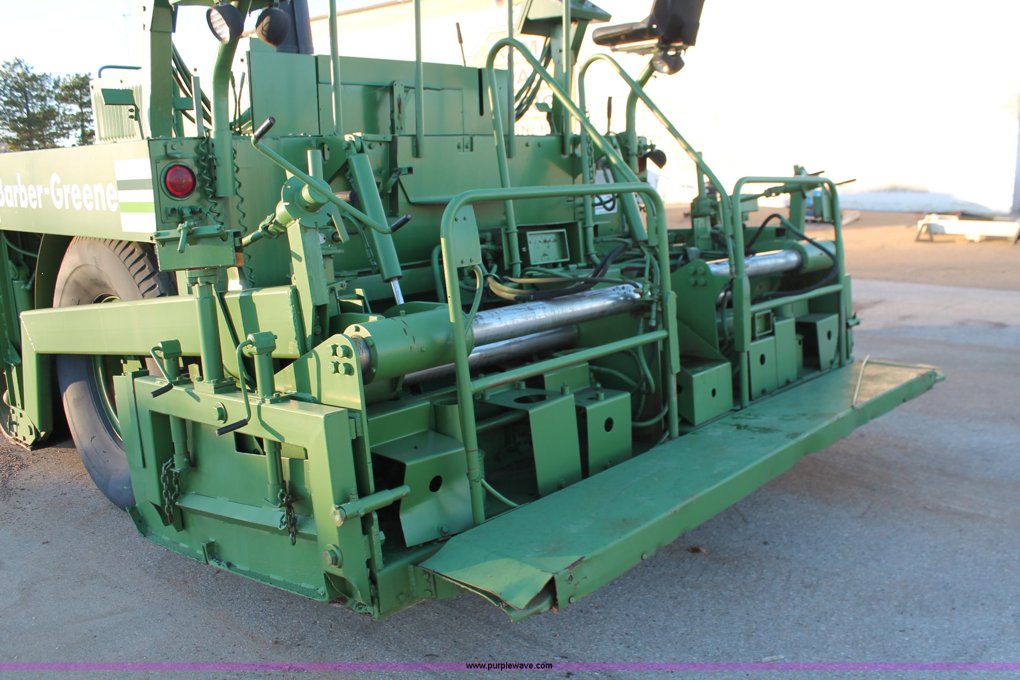 Purple Wave is selling a used Paver or Screed in Oklahoma. This item is a 1982 Barber Greene SB-131 asphalt paver with the following: Four cylinder diesel engine, Three speed travel, Dual open operators stations, 128"W hopper, Dual 24"W conveyor, Hydraulic lift and width controlled screed widener, 12" diameter auger, 16.00-24DT drive tires, 25,400 lbs. base operating weight, Serial SB131X534