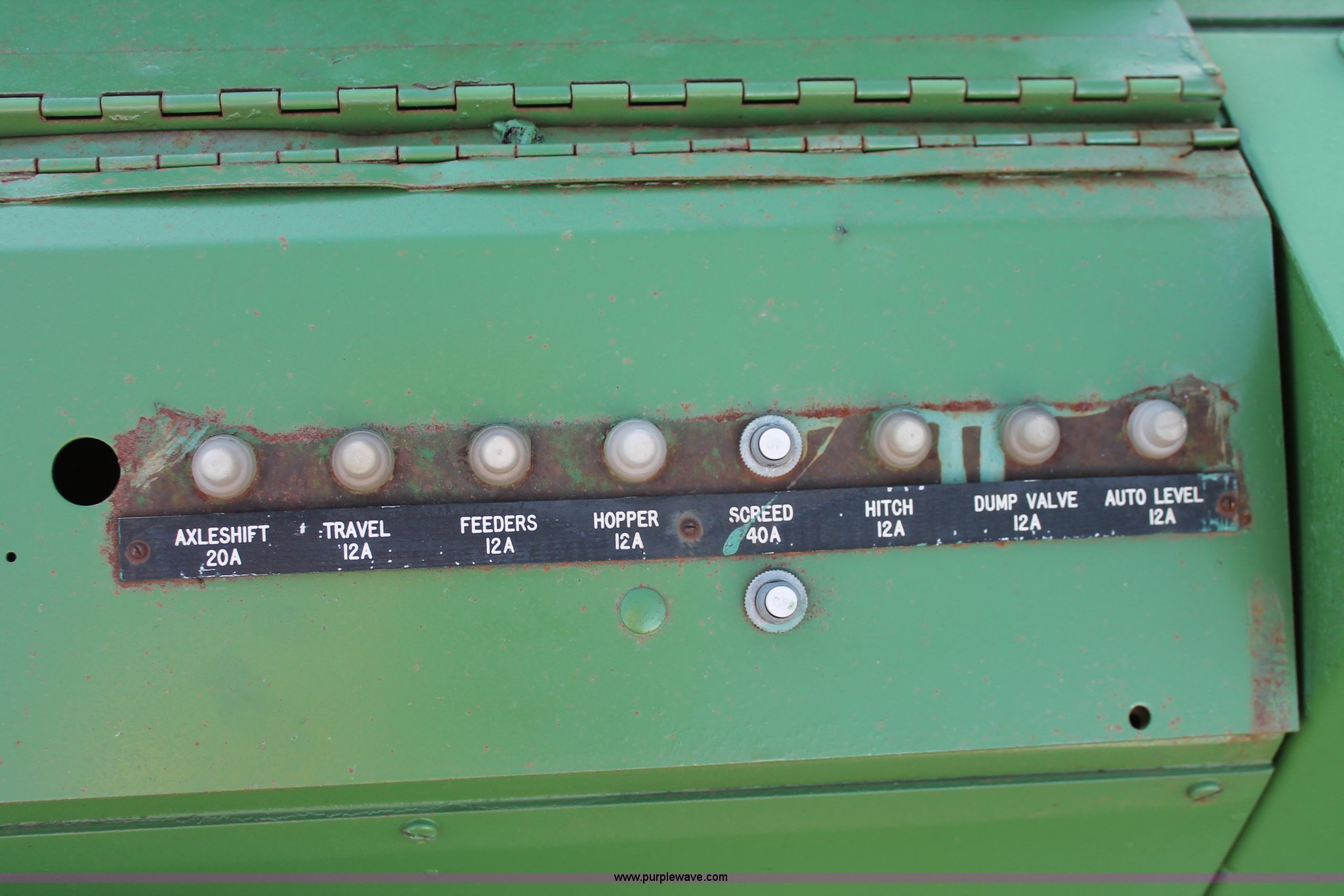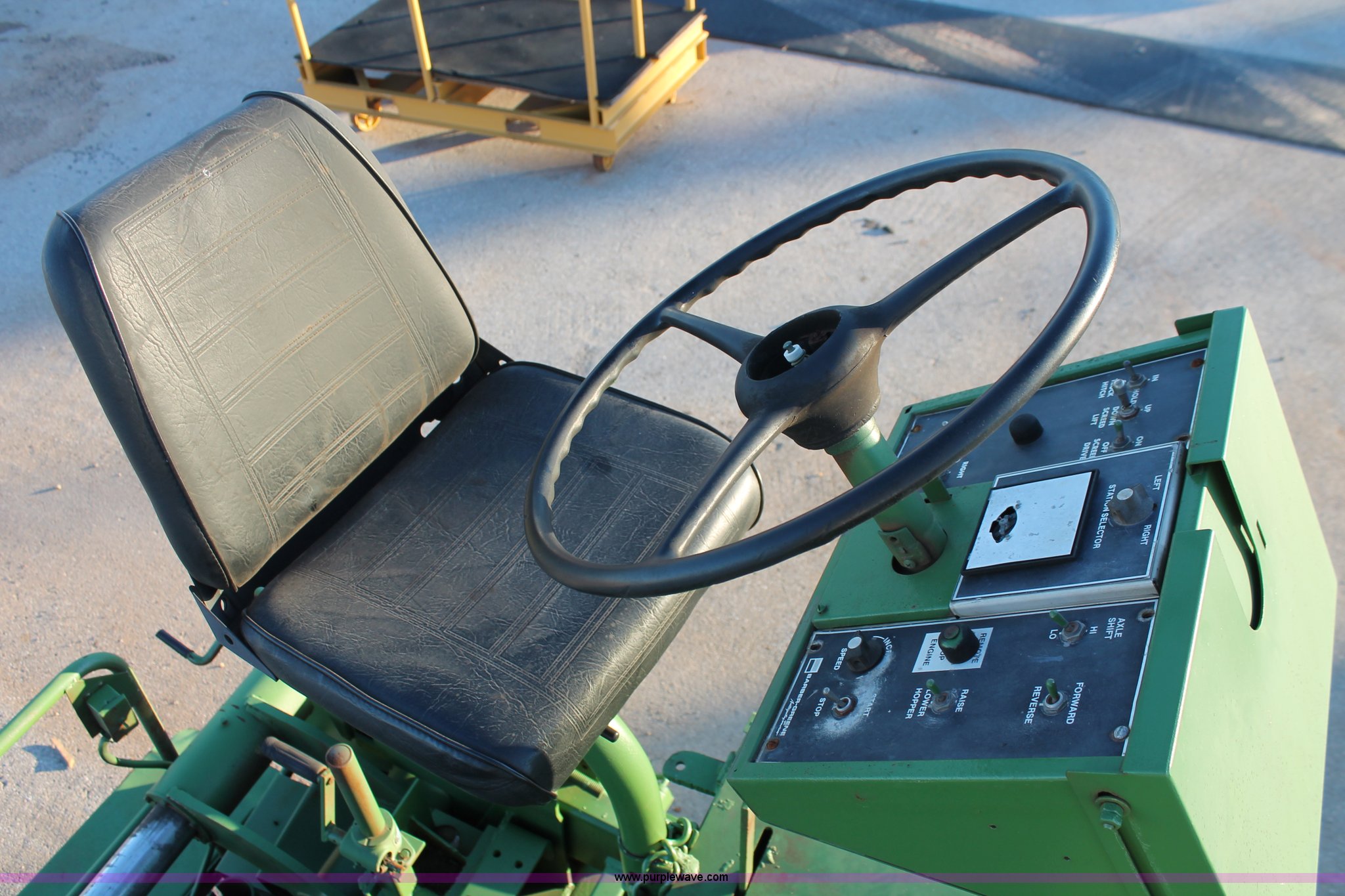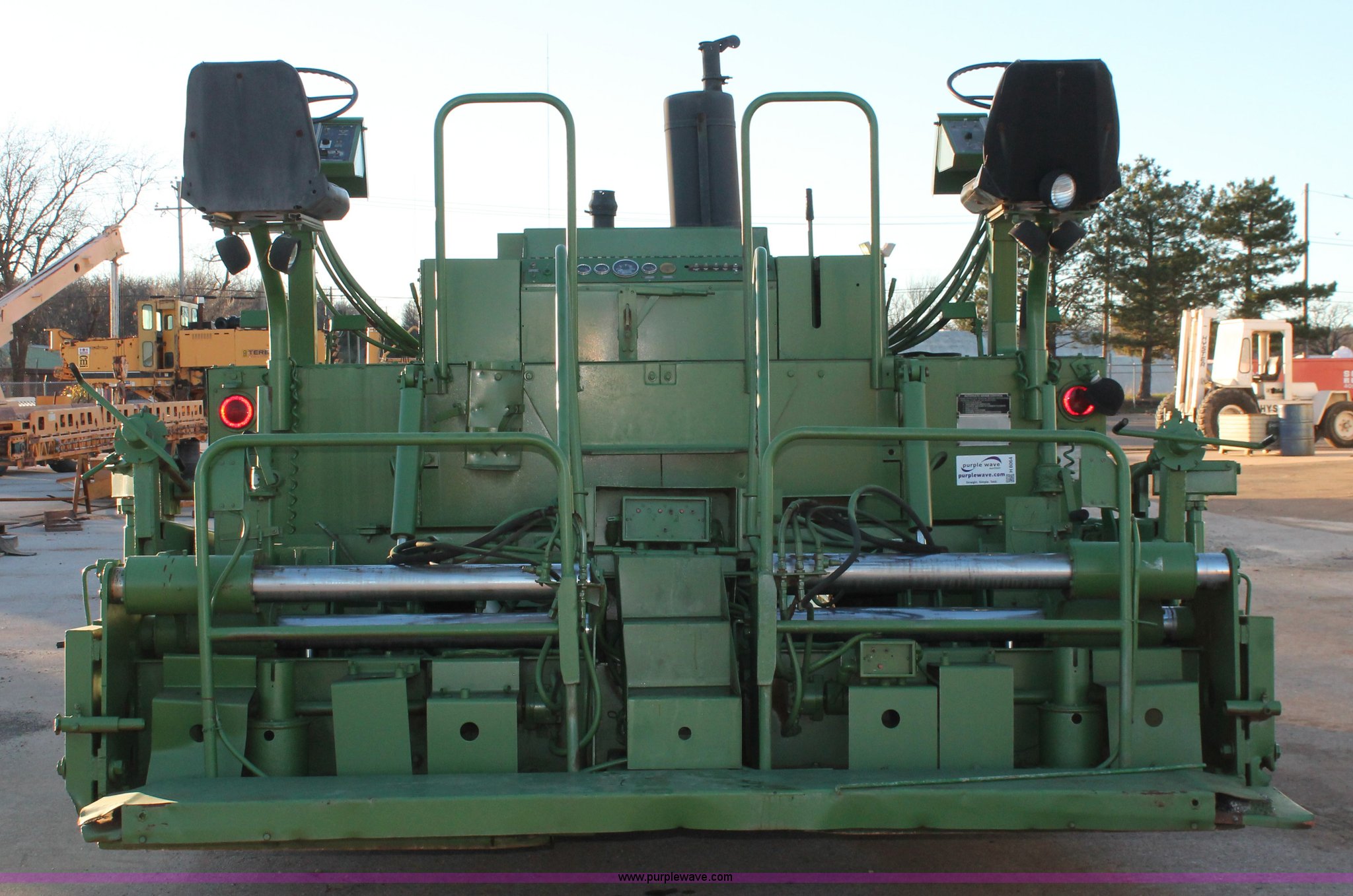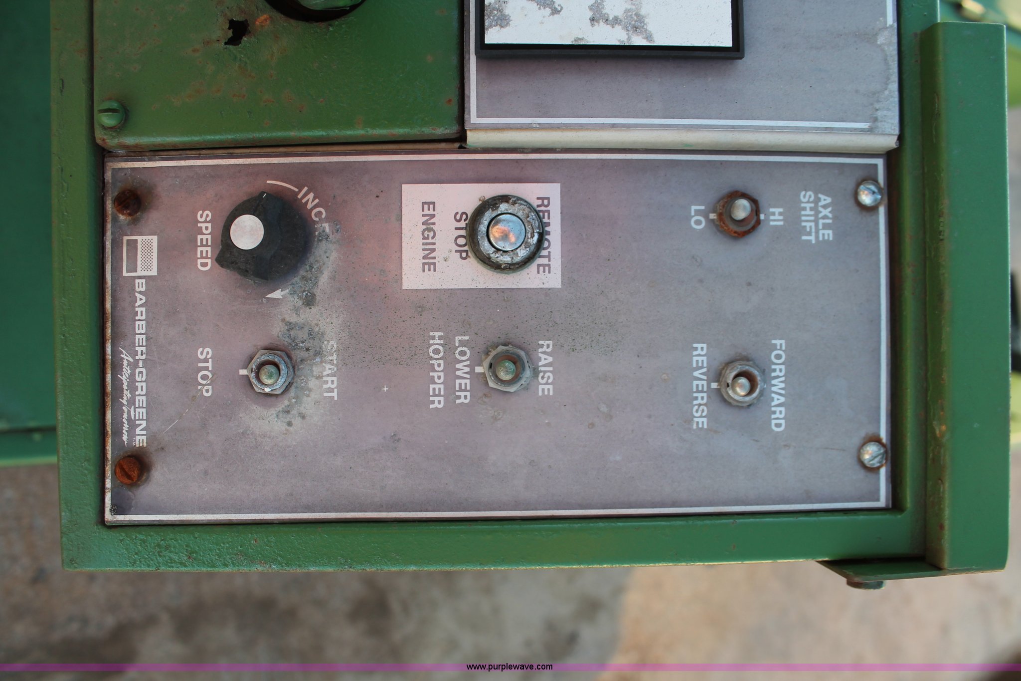Purple Wave is selling a used Paver or Screed in Oklahoma. This item is a 1982 Barber Greene SB-131 asphalt paver with the following: Four cylinder diesel engine, Three speed travel, Dual open operators stations, 128"W hopper, Dual 24"W conveyor, Hydraulic lift and width controlled screed widener, 12" diameter auger, 16.00-24DT drive tires, 25,400 lbs. base operating weight, Serial SB131X534