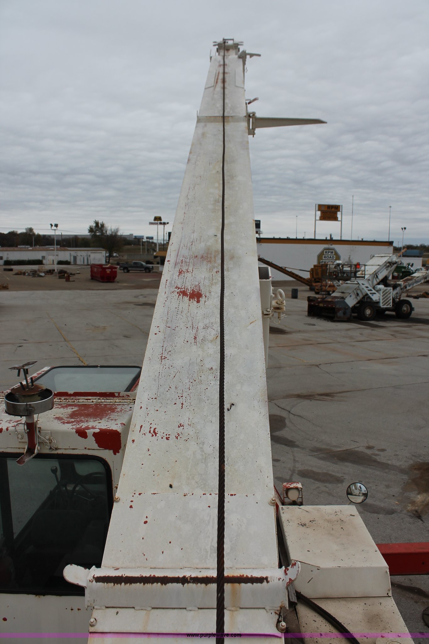 Koehring S888 crane. Detroit Diesel six cylinder diesel engine, Automatic transmission, Crab steer, Circle steer, Axle lock, Single axle, Ether start, Stick crane controls, Telescopic boom 81' boom length (4) sections, (2) winches, In-cab boom controls, Crane block, (4) sheaves, (4) stabilizers, Beacon light, 18.00-25 tires, 60,000 lbs. base operating weight, Assorted rigging, Glass cracked, Serial 60000. Unit will be utilized during the removal process. Item may not be removed prior to December 31, 2015. Road Paving Machinery LLC.. 7600 N. Bryant Avenue. Oklahoma City, OK 73121