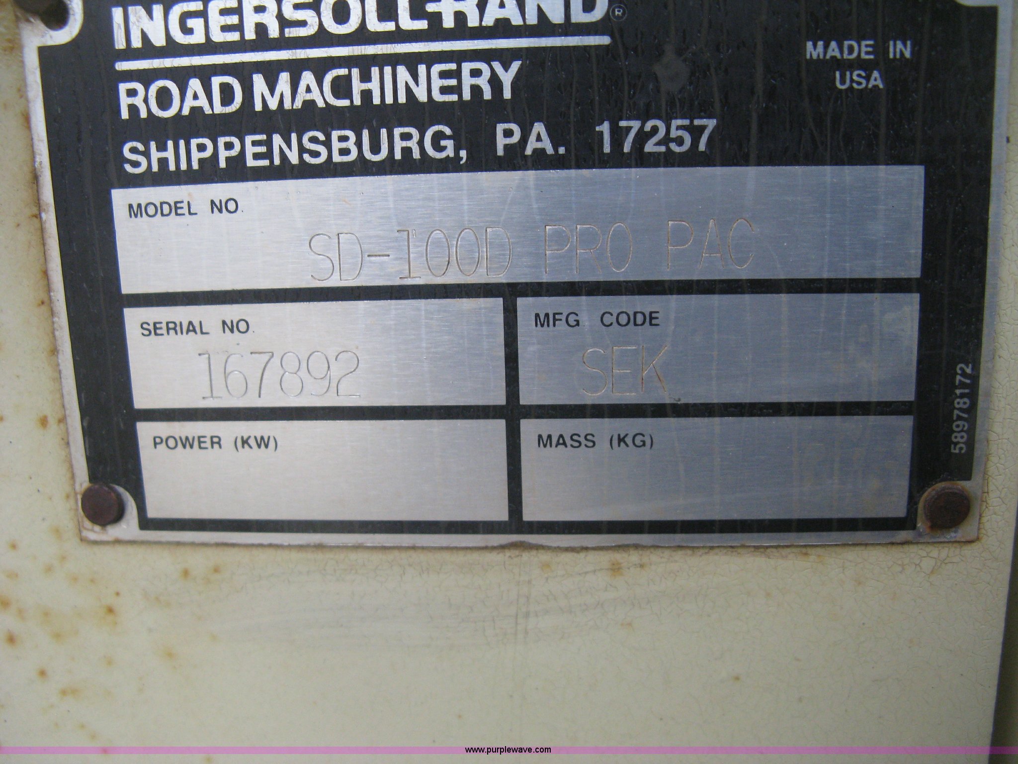Ingersoll Rand SD100D Pro Pac compactor has sold in Wichita, Kansas for $23100. Item J2997 sold on December 17th, 2015.