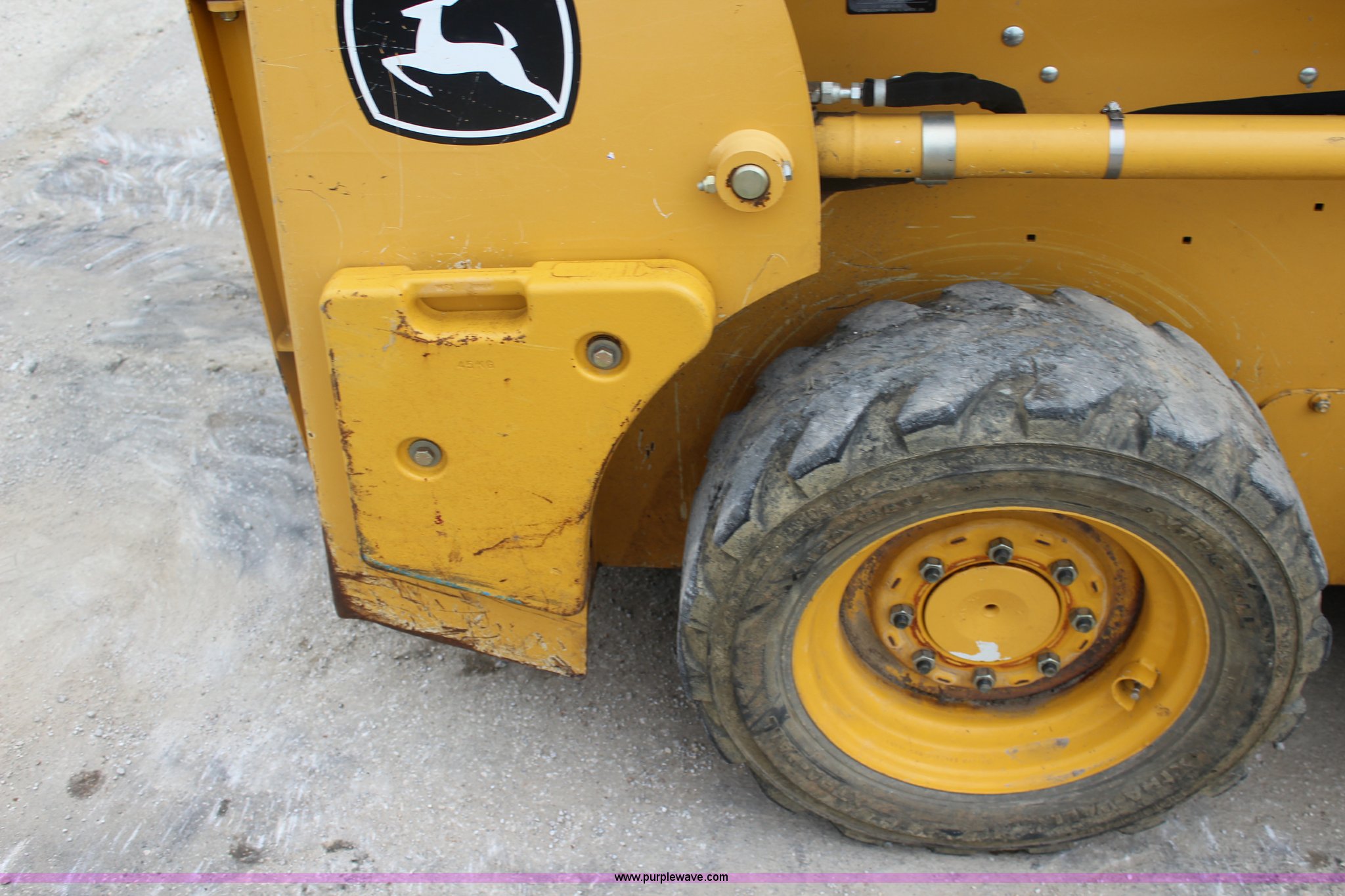 Purple Wave is selling a used Skid Steer Loader in Kansas. This item is a 2012 John Deere 313 skid steer with the following: 721 hours on meter, John Deere 4024T 2.4L four cylinder turbo diesel engine, 45 HP, Hydrostatic transmission, Open station/canopy, Hand and foot controls, Spring suspension seat, 67"W bucket, Manual quick coupler, Auxiliary hydraulics, Counter weights, 10-16.5 foam-filled tires, 5,150 lbs. base operating weight, Serial 1T00313AHLG219416
