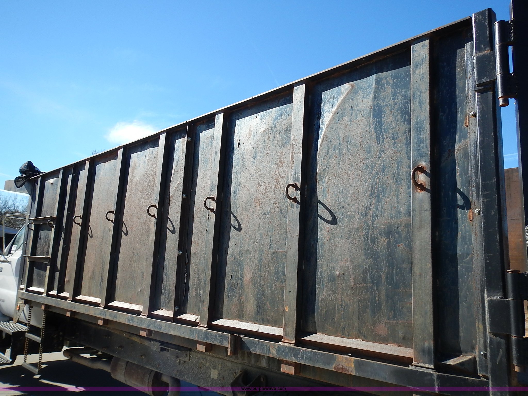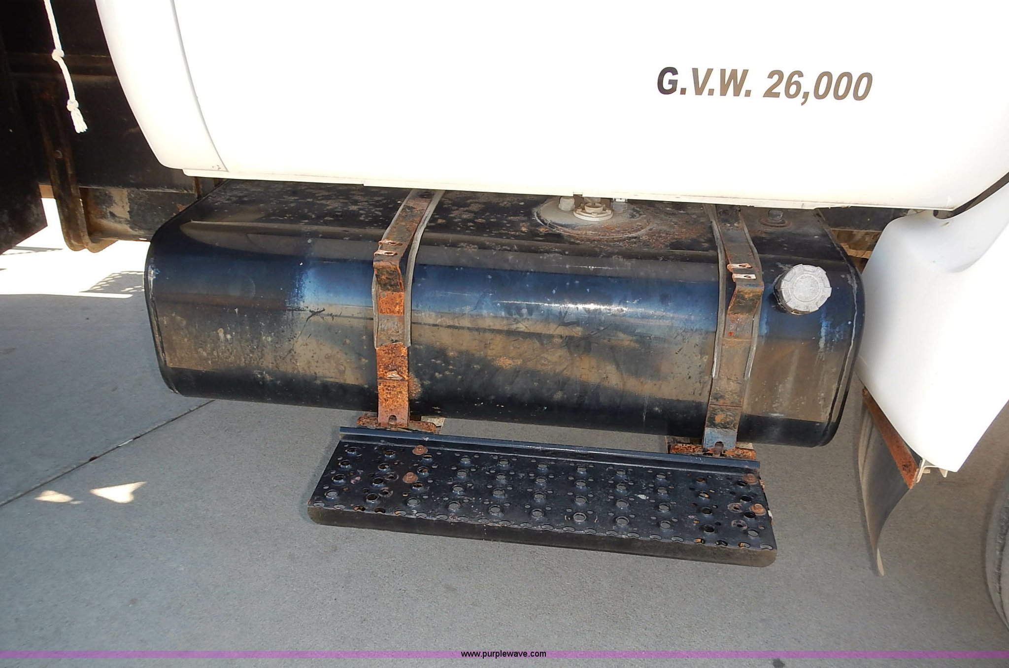 Purple Wave is selling a used Construction Dump Truck in Kansas. This item is a 2006 Ford F750 Super Duty XL dump truck with the following: 50,110 miles on odometer, International A230 4.5L V6 turbo diesel engine, Automatic transmission, Single axle, AC and heat, Tilt, Cruise, AM/FM/CD, Power windows and locks, Chelsea PTO, Block heater, 195"L x 8'W steel dump bed, 4' side height, Two cylinder hoist, Manual operated end gate, Dual swing out gates, Roll-over tarp, Toolbox, Single fuel tank, Front tow hooks, Spring suspension, Hydraulic brakes, 226" wheelbase, 10R22.5 tires, GVWR 25,999, FAWR 10,000 lbs, RAWR 21,000 lbs