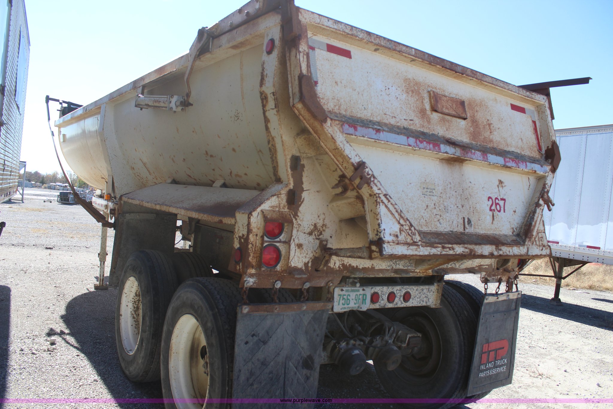 Purple Wave is selling a used End Dump Rock Trailer in Oklahoma. This item is a 1998 Travis HRSFL end dump trailer with the following: 26' overall length, Dual cylinder hoist, End gate, Tarp, Dual leg landing gear, Fifth wheel plate, Spring suspension, Air brakes, Tandem axle, 11R24.5 tires, GVWR 68,000 lbs, GAWR 20,000 lbs, Unit# 267