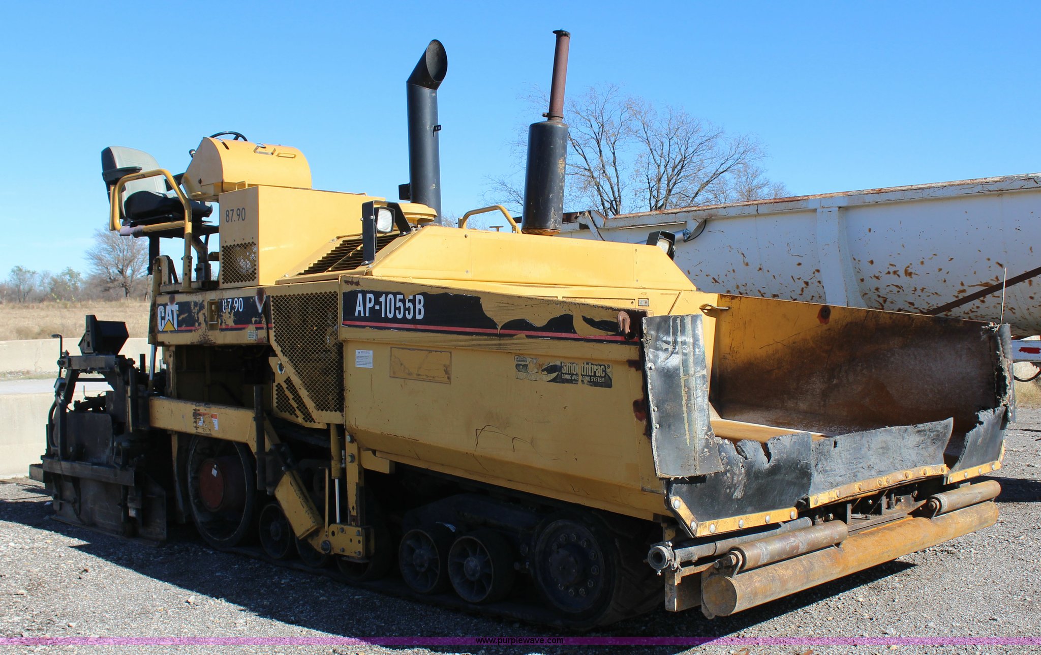 Purple Wave is selling a used Paver or Screed in Oklahoma. This item is a Caterpillar AP-1055B paver with the following: Caterpillar 3116 6.6L six cylinder diesel engine, 174 HP, Serial 4TF86651, Hydrostatic transmission, Three position travel, pave, and maneuver, Caterpillar 10-20B extendamat, Applicator, Rear hose reel, Slope meter, 11' bin, Eight cubic yard capacity, Front and rear work lights, 18"W tracks, Serial CATAP105AA3P00253, Unit# 8790