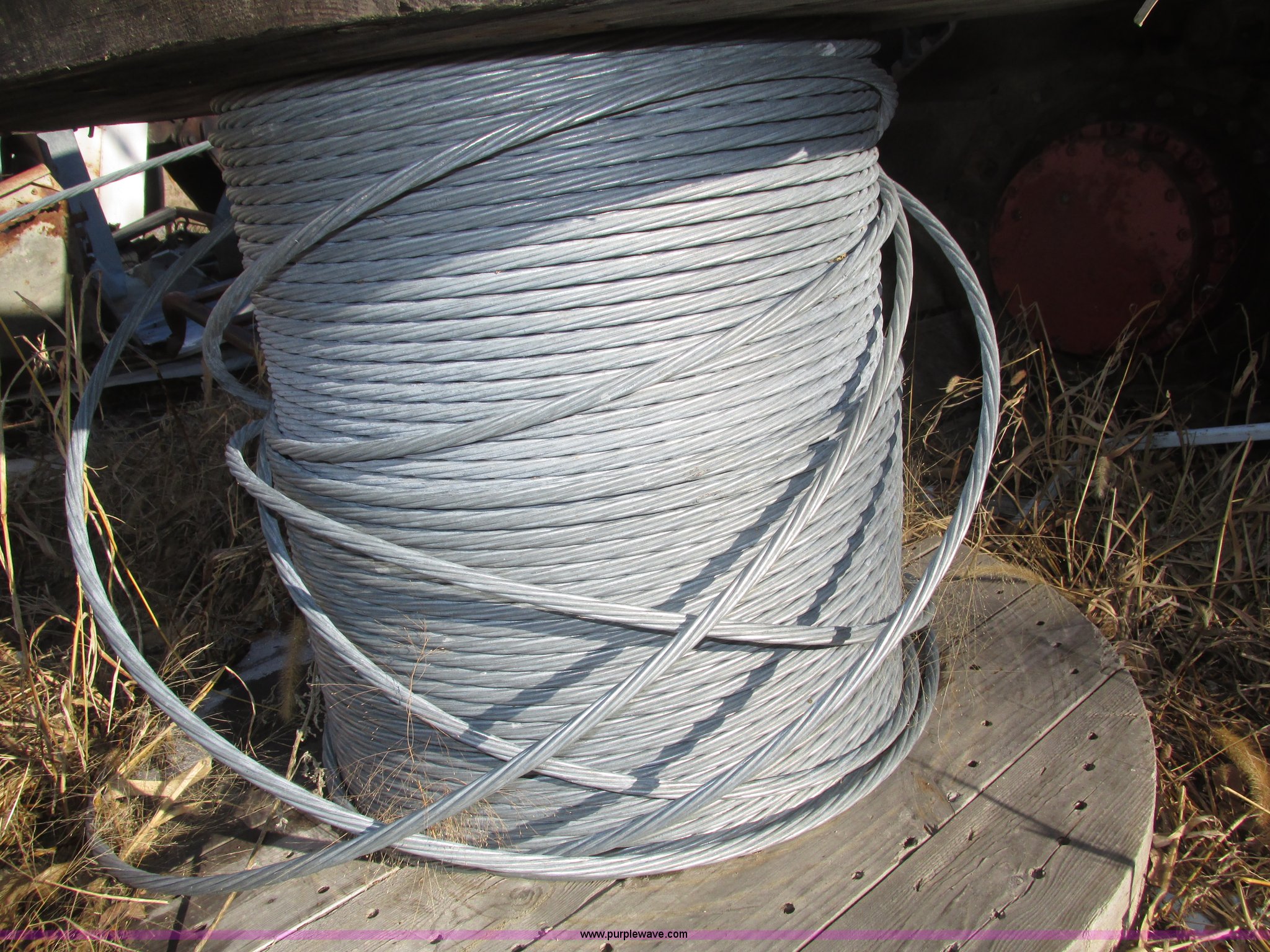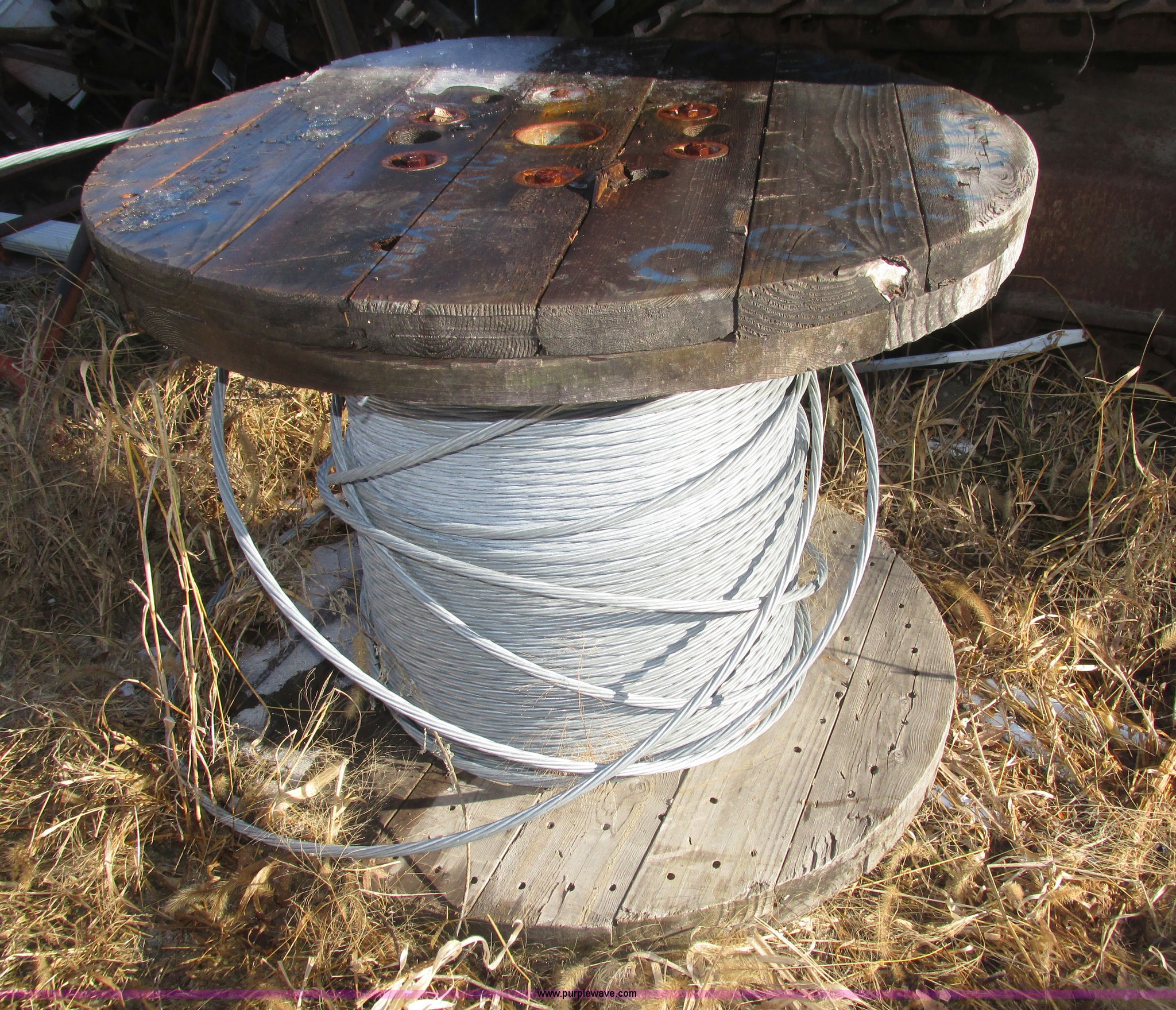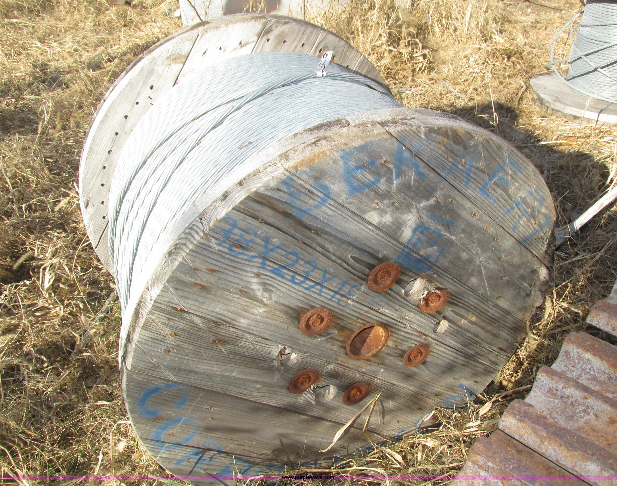 Purple Wave is selling a used Tools in Nebraska. This item is a (2) Bekaert galvanized 1/2" cable spools with the following: 38 x 23 x 18, One full spool, One partial spool