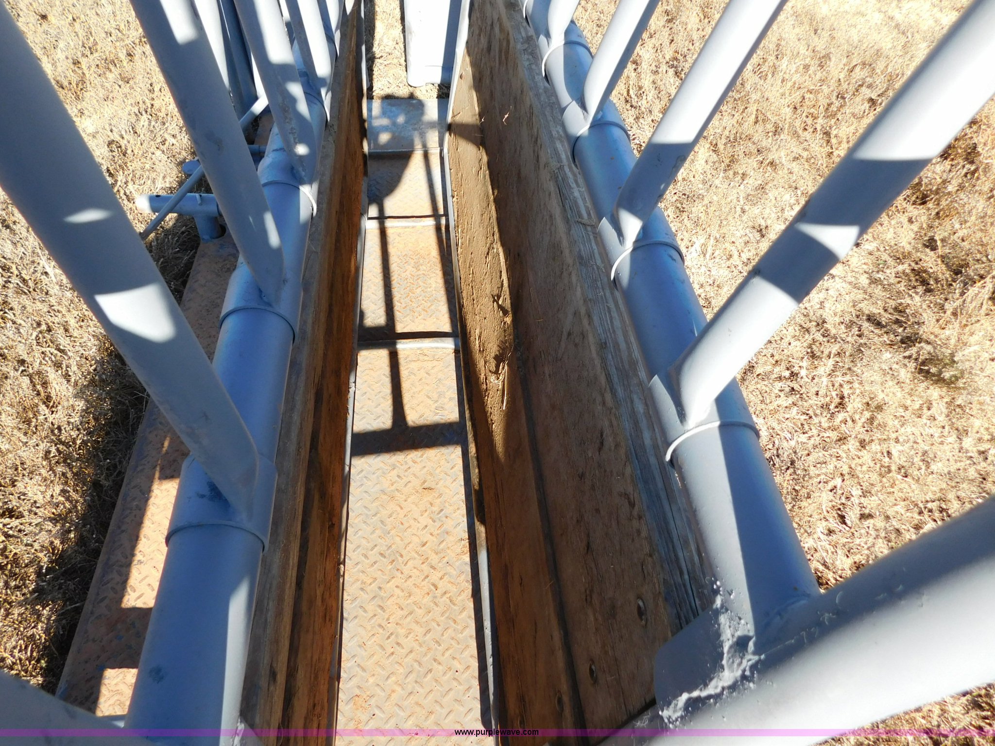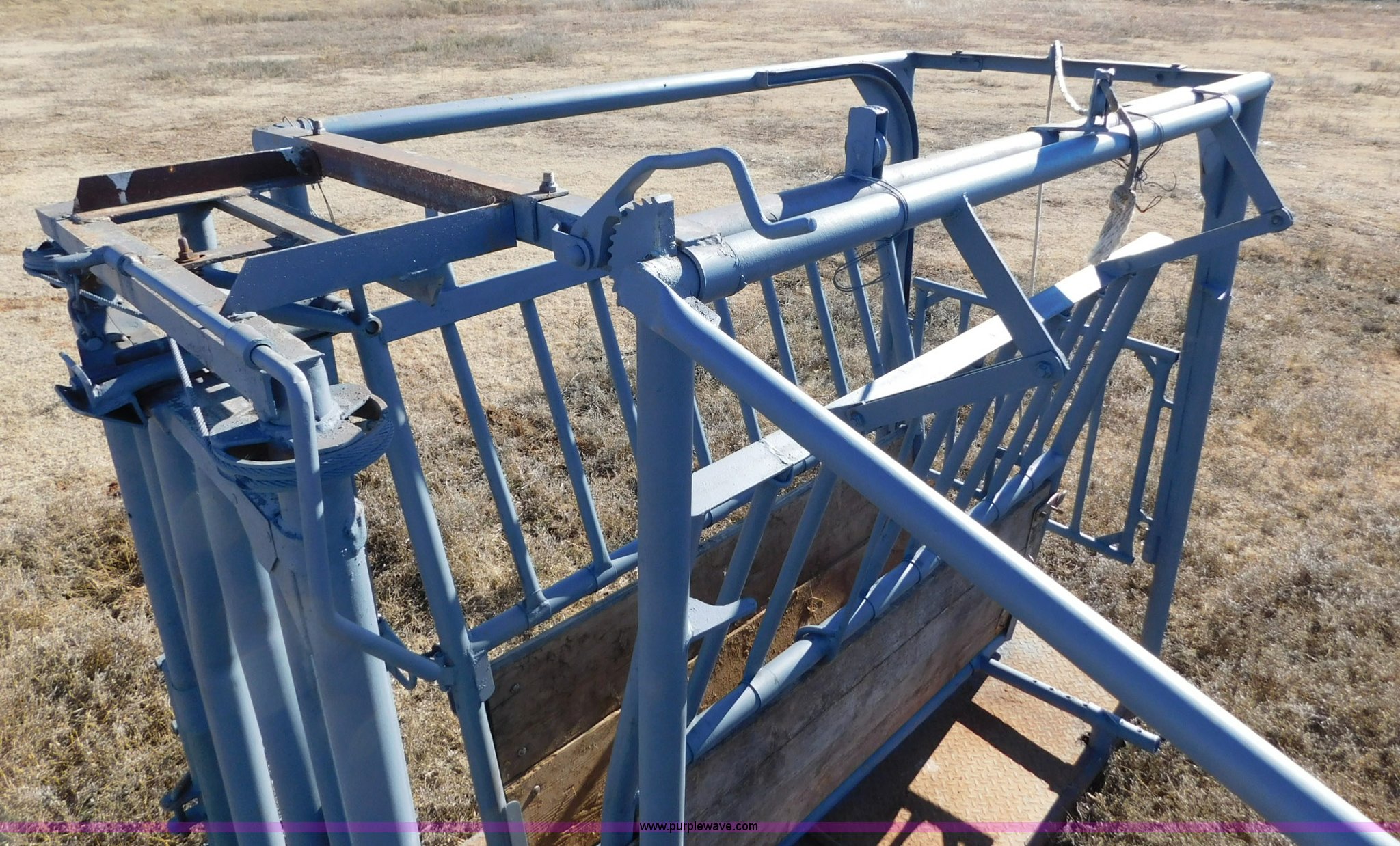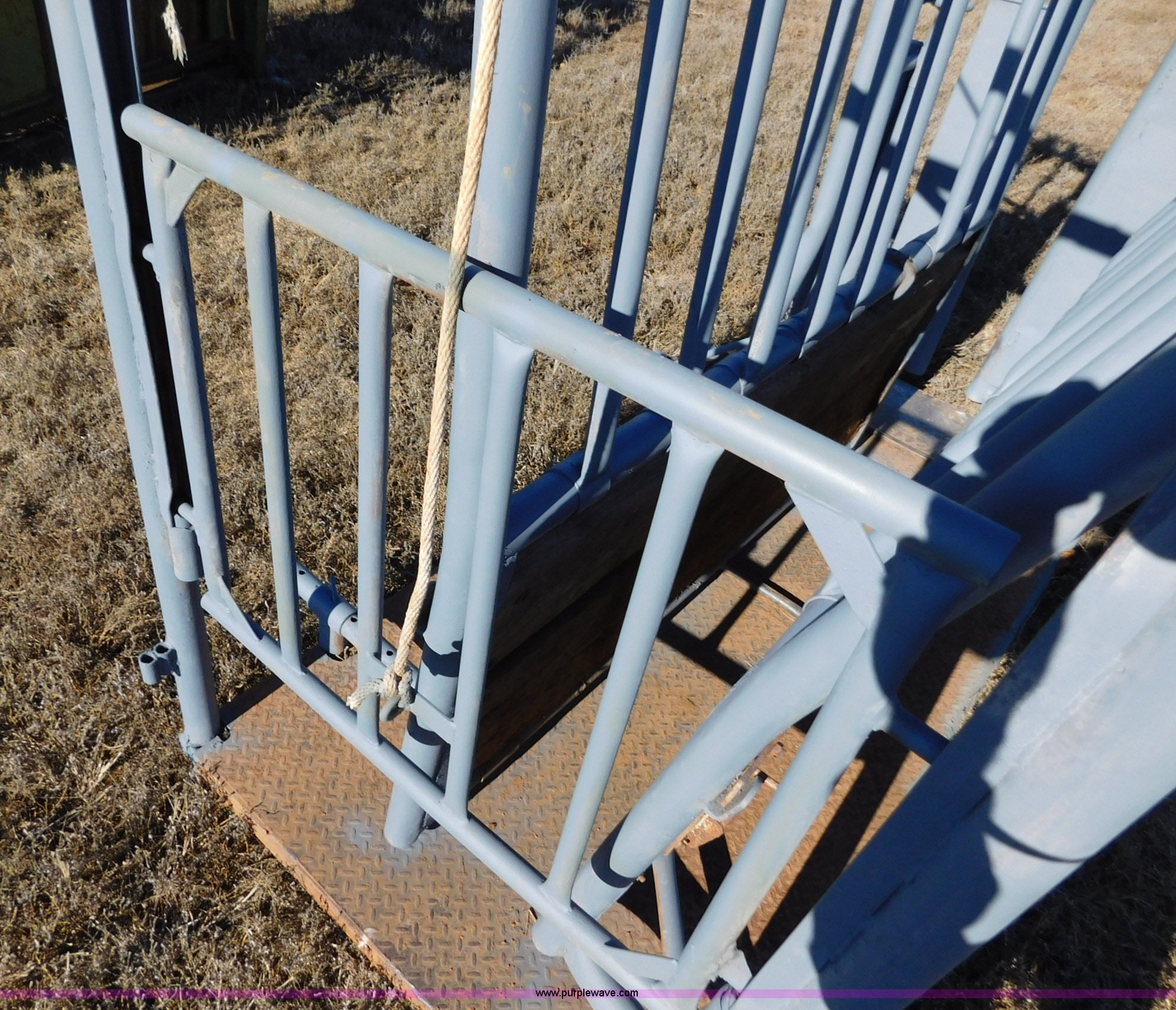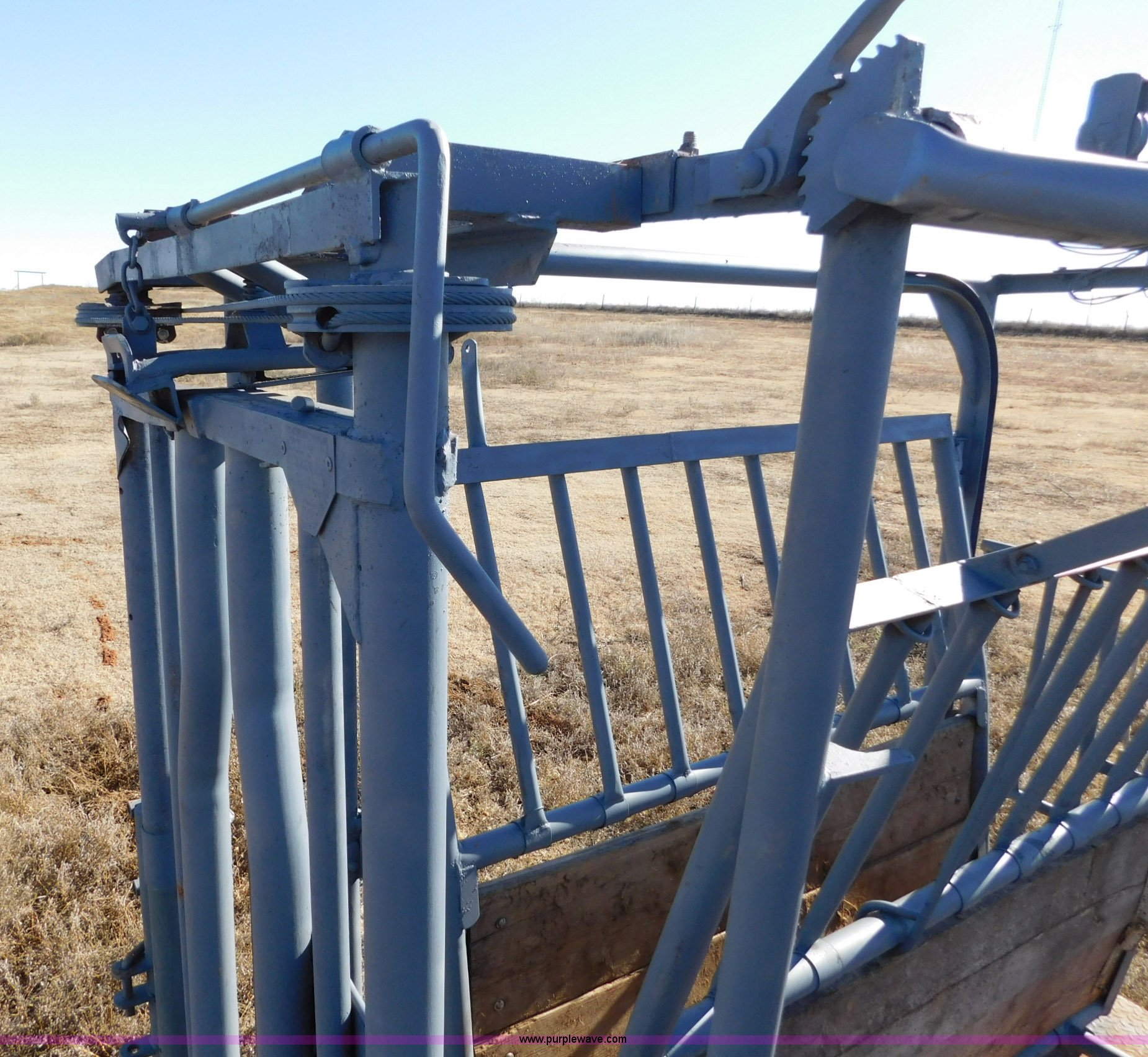 Purple Wave is selling a used Livestock Equip. in Kansas. This item is a W-W Beef Master chute with the following: 92"L x 41"W, Steel floor, Self catch head gate, Rope pull rear gate, Side release, Lower drop down wood side boards, Recently replaced cables on head gate, Serial FLBNY