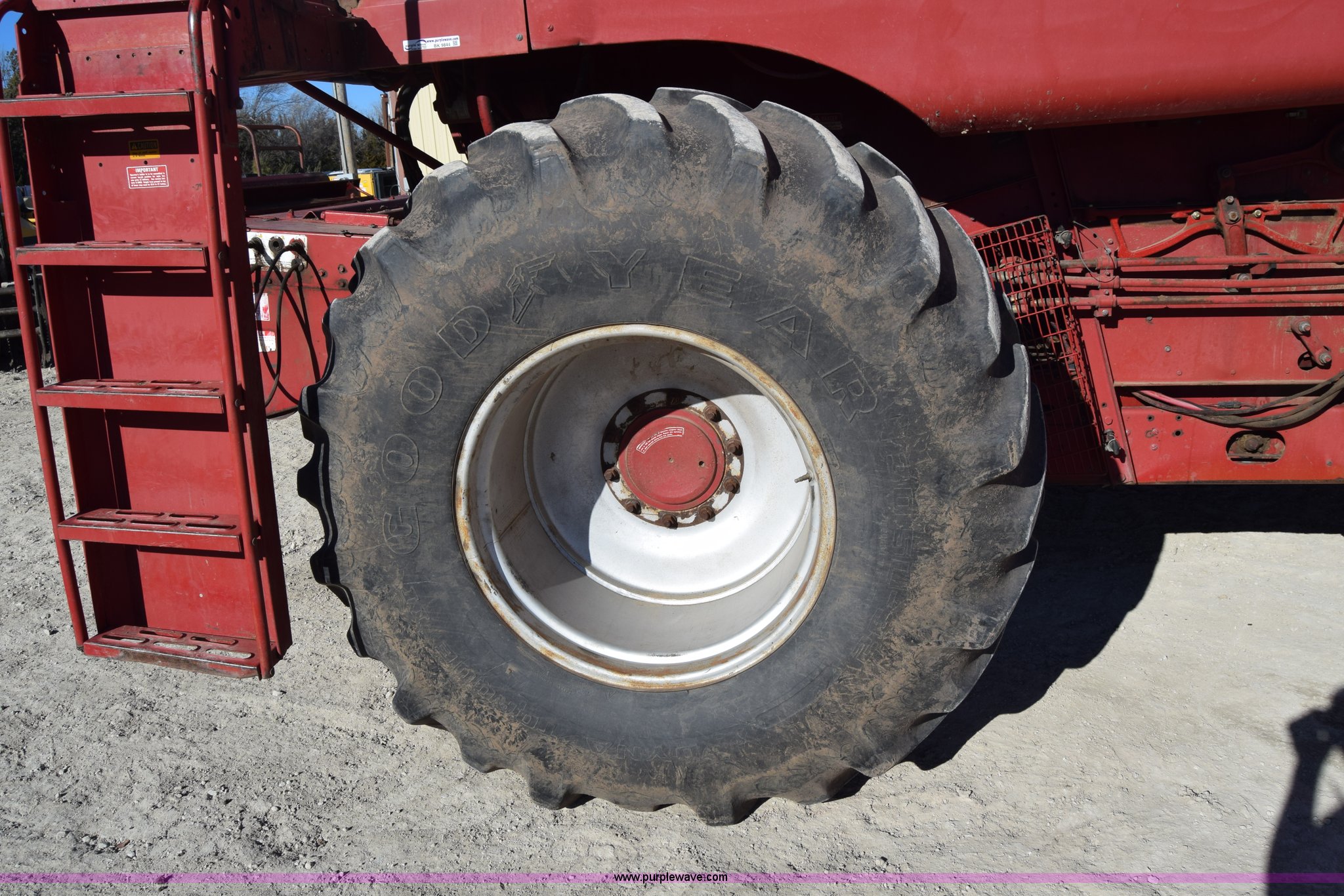 Purple Wave is selling a used Combine in Kansas. This item is a 1991 Case IH 1680 Axial-Flow combine with the following: 5,159 hours on meter, Case 6TA-830 six cylinder diesel engine, Hydrostatic transmission, 3F-3R gears, Single point header coupler, AC and heat, AM/FM, Suspension seat, Work lights, Grain selector, Straw spreader, 30.5-32 front tires, 14.9-24 rear tires, Serial JJC0115952