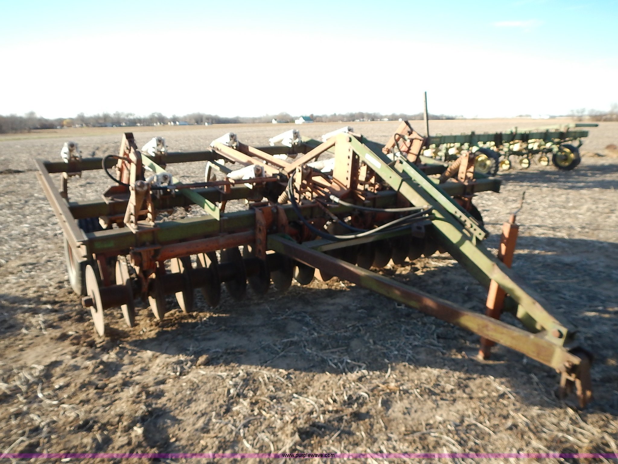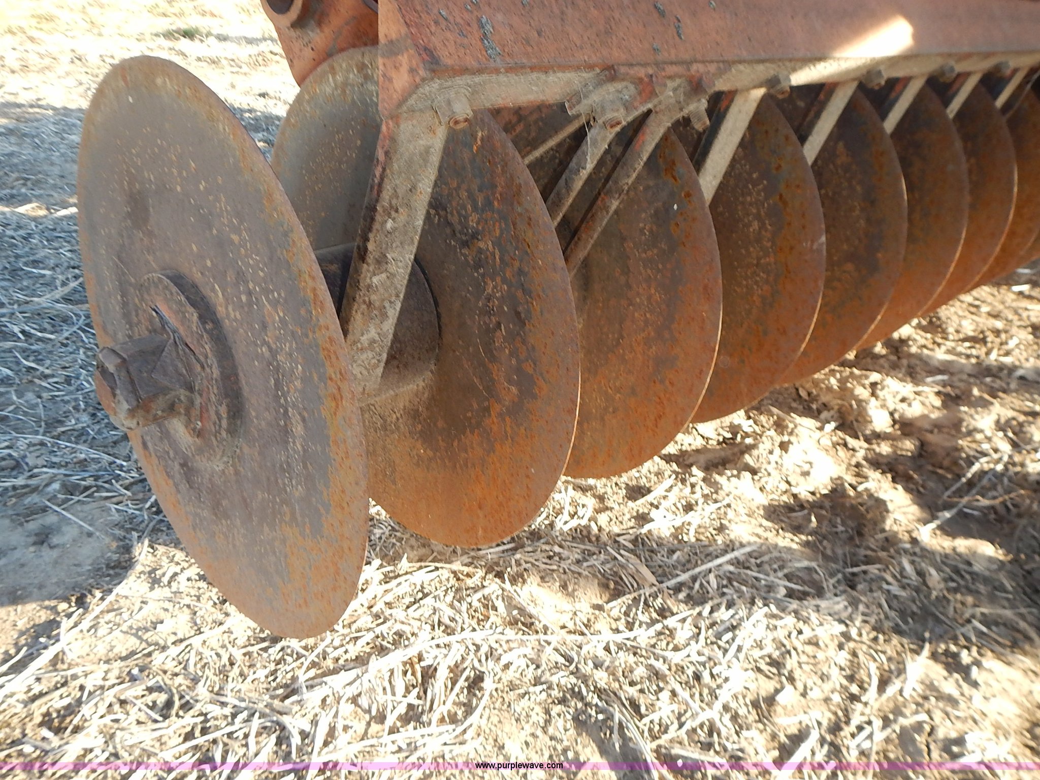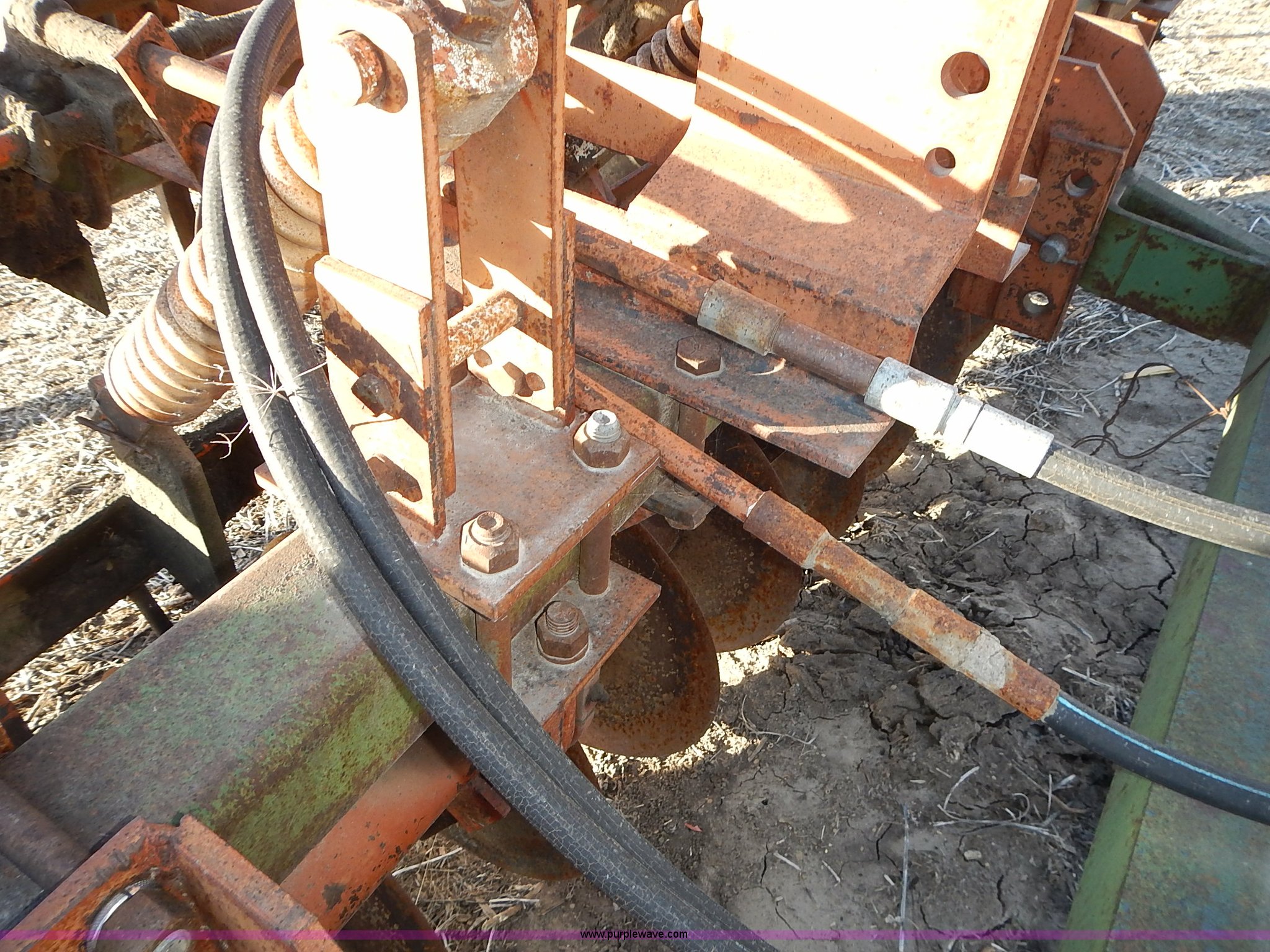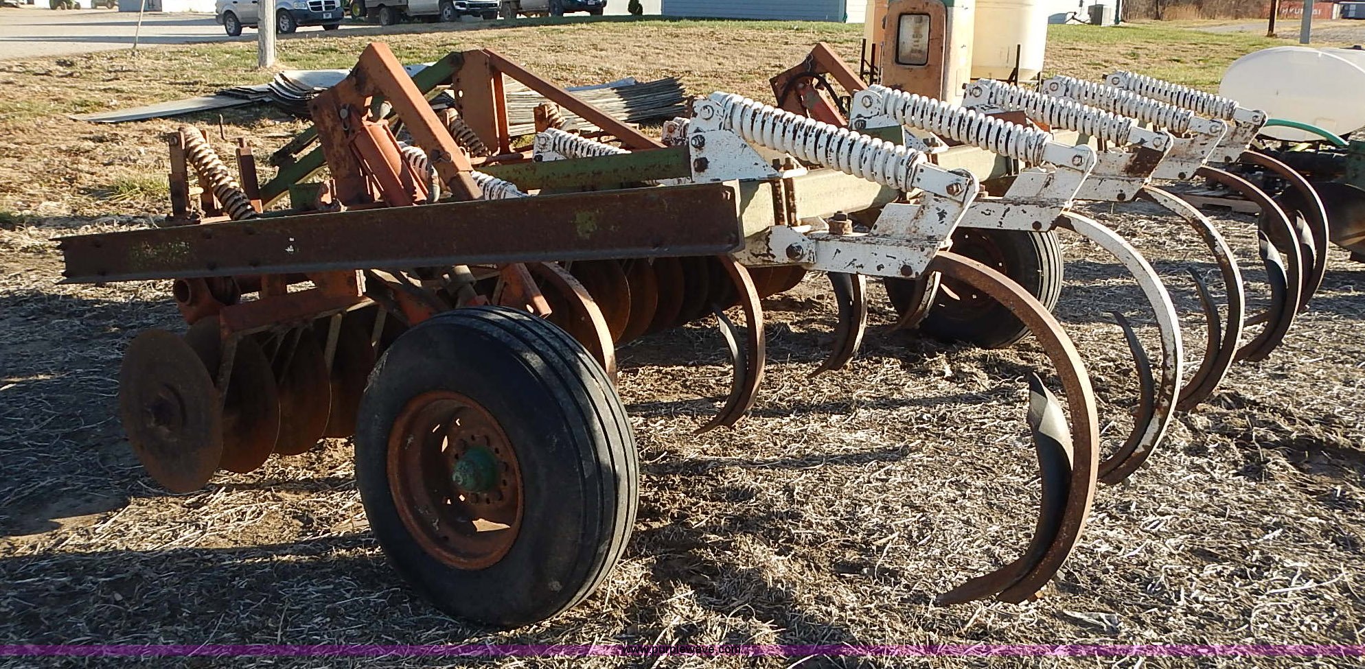 Purple Wave is selling a used Field Cultivator or Sweep Plow in Kansas. This item is a Glencoe soil saver chisel plow with the following: (9) shanks, 18" front disks, 7.5" spacing, Hydraulics, Clevis pin hitch, 11-15 tires