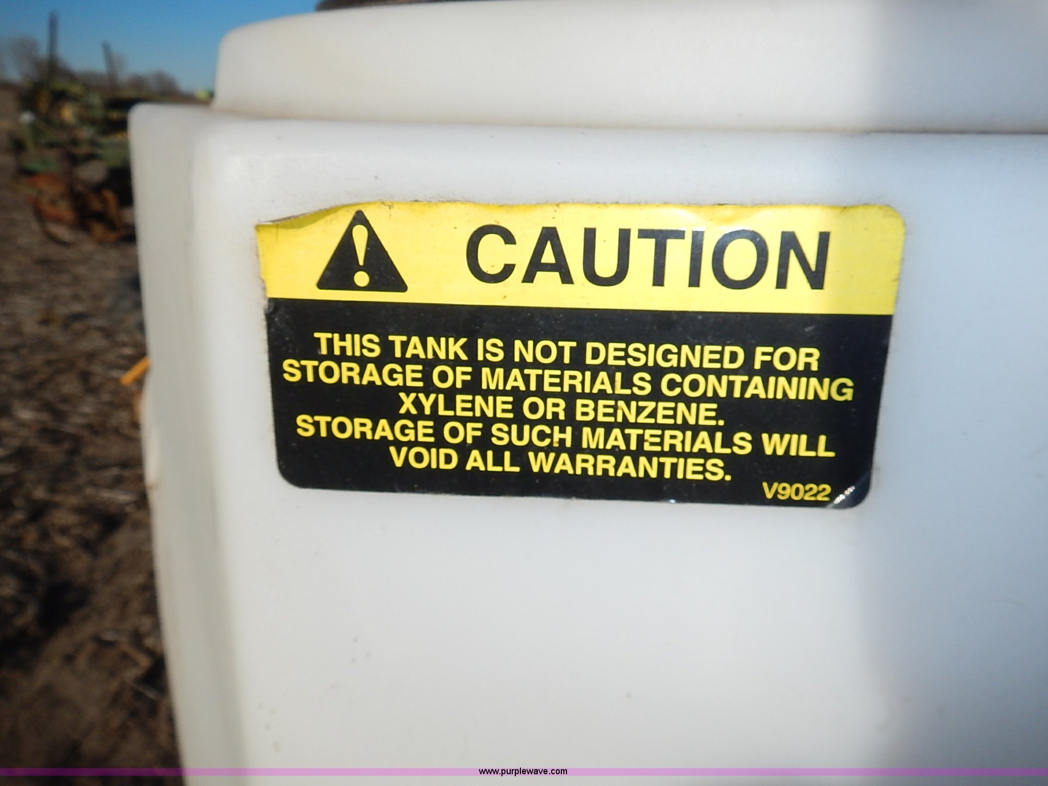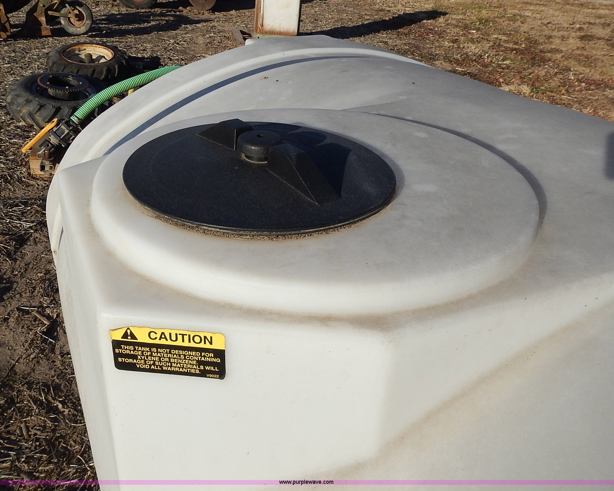 Purple Wave is selling a used Applicator Attach. in Kansas. This item is a Assorted applicator equipment with the following: 500 gallon liquid chemical poly tank, Top fill, Bottom outlet, Stand, Dempster LiquiJector metering pump unit, Model B3, 6-14 tires, Serial 08070547, Banjo line strainer anhydrous metering unit, 75 psi max, 150 degree max, 7-14 tires