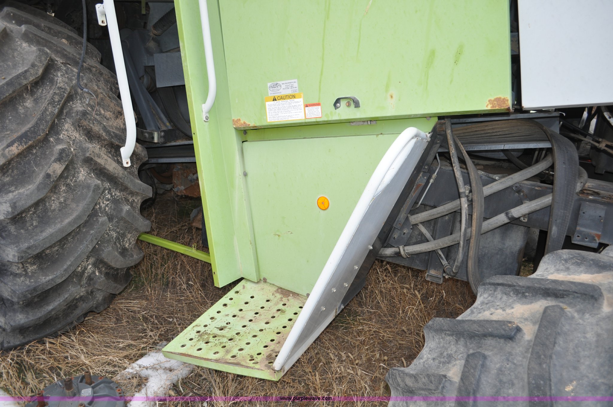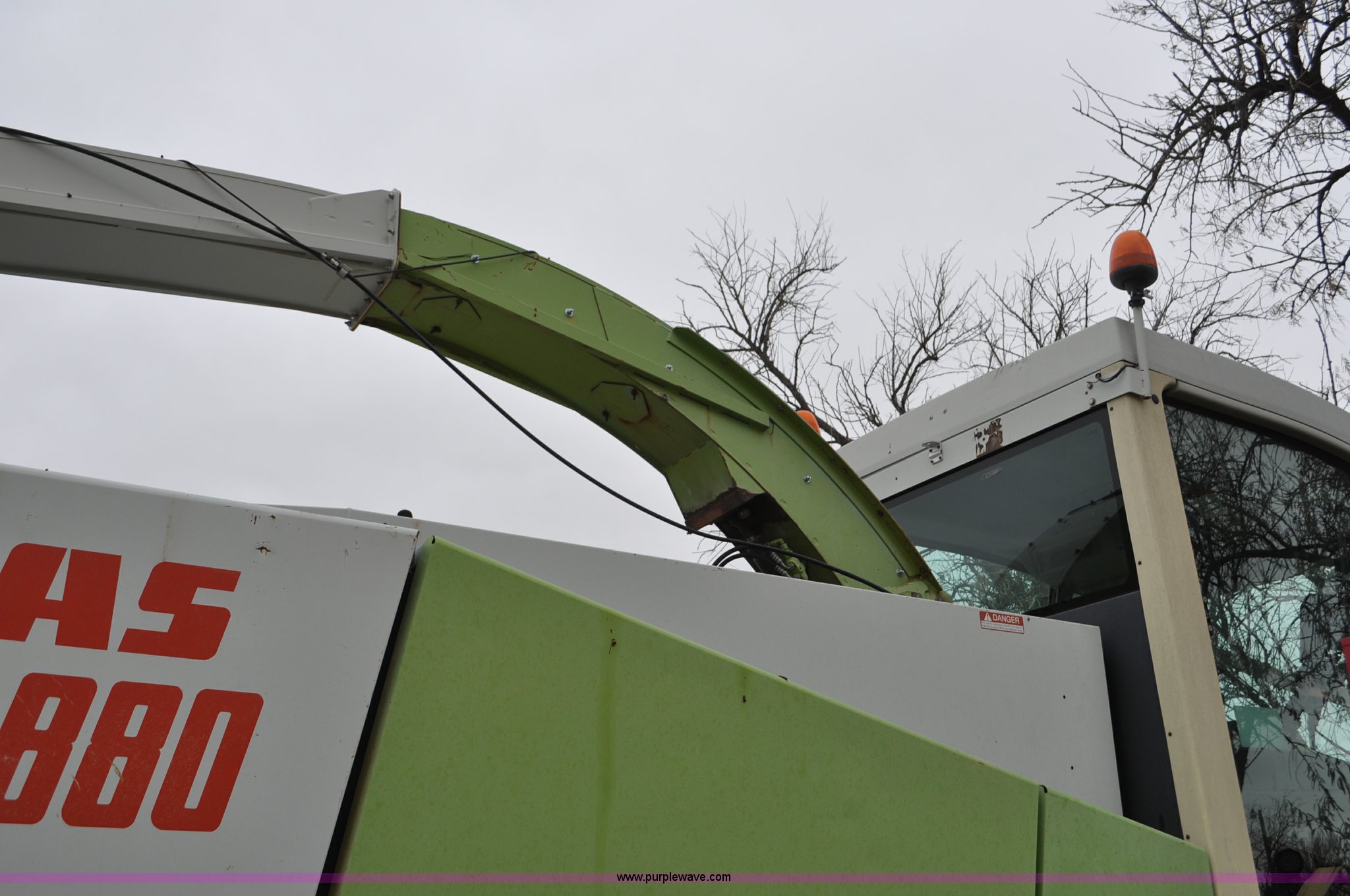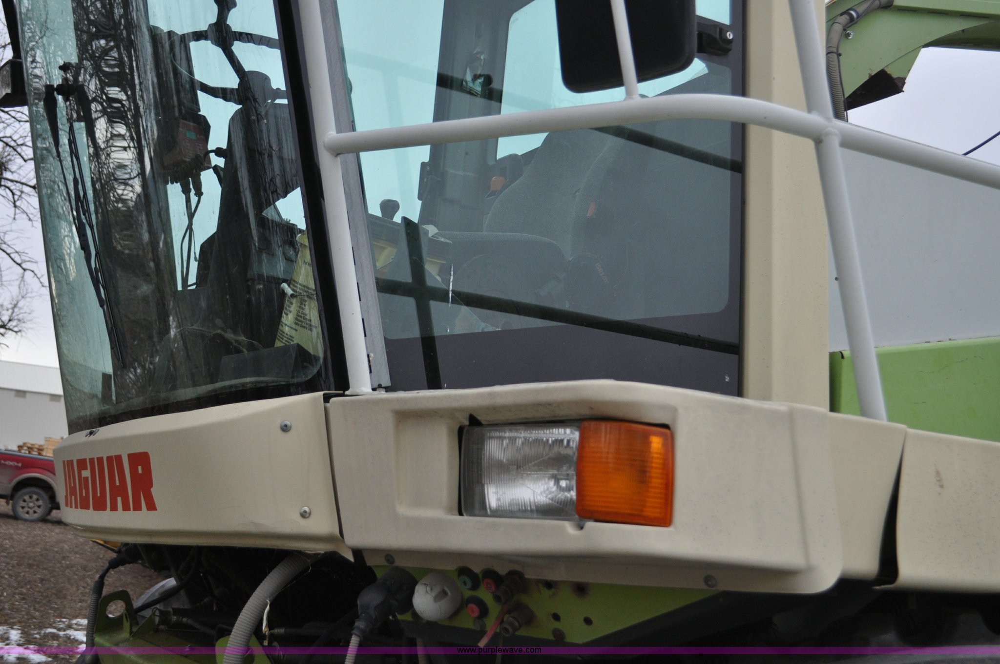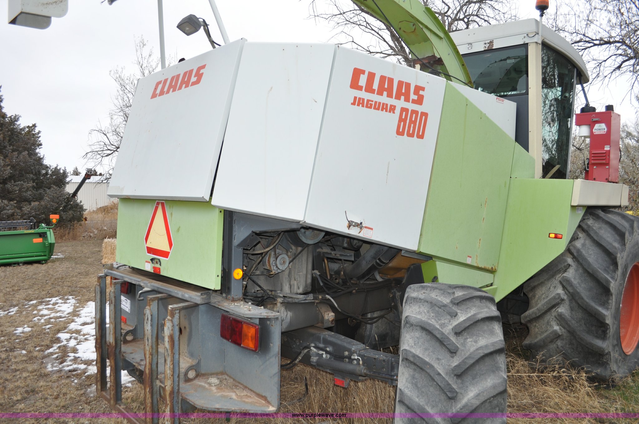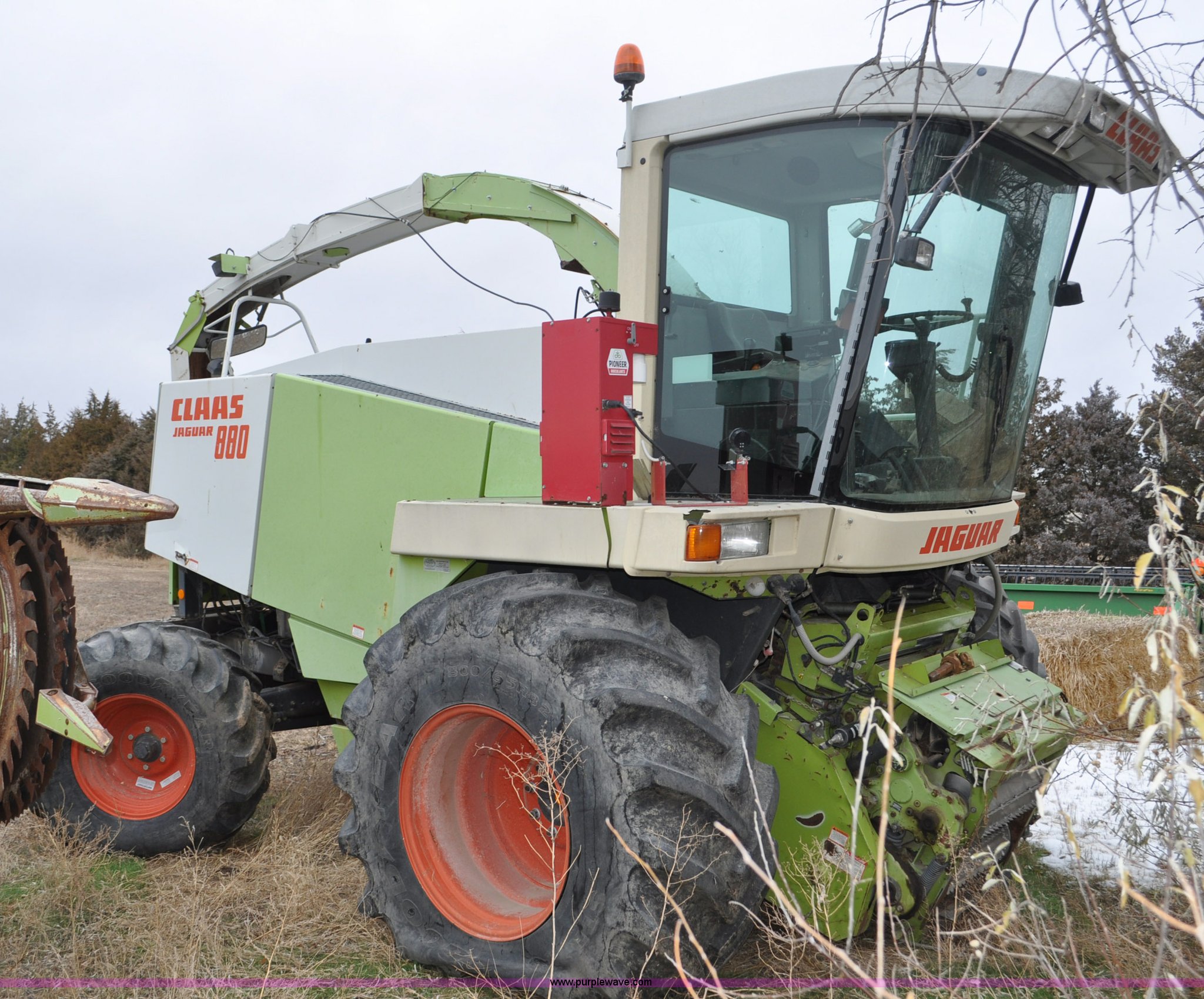 Purple Wave is selling a used Forage Harvester in Colorado. This item is a 2000 Claas Jaguar 880 forage harvester with the following: Unknown hours on meter, Mercedes-Benz OM442 eight cylinder turbo diesel engine, Hydrostatic transmission, AC and heat, Tilt steering wheel, AM/FM, Air suspension seat, Instructor's seat, Pioneer Ap system, Auto lube, Silage additive spray system, Hydraulic adjust spout, 800/65R32 front tires, 540/65R24 rear tires, Some parts may be missing, Machine has been partially disassembled, Unknown operating condition, Serial 491-03431