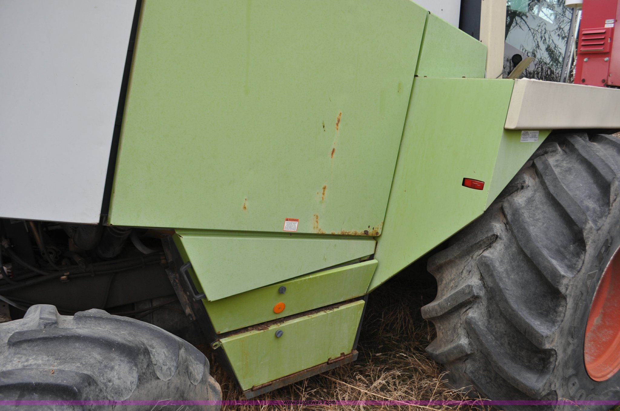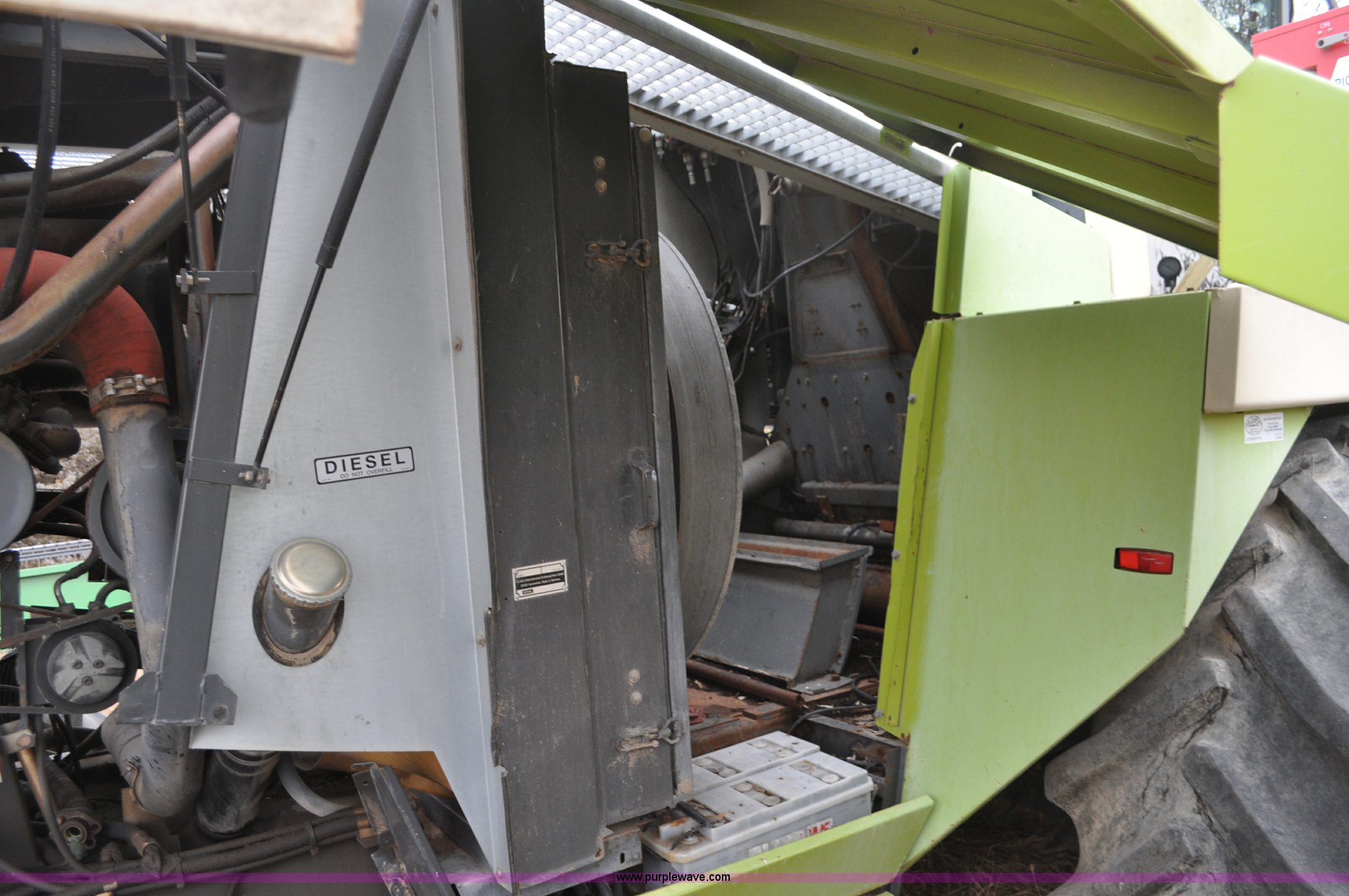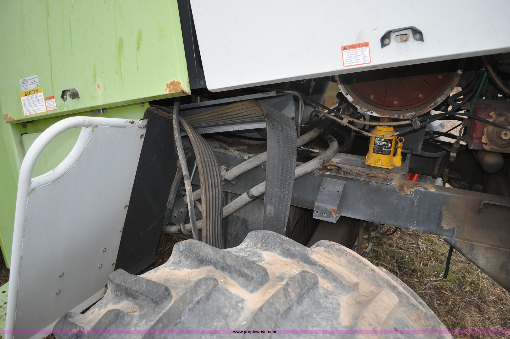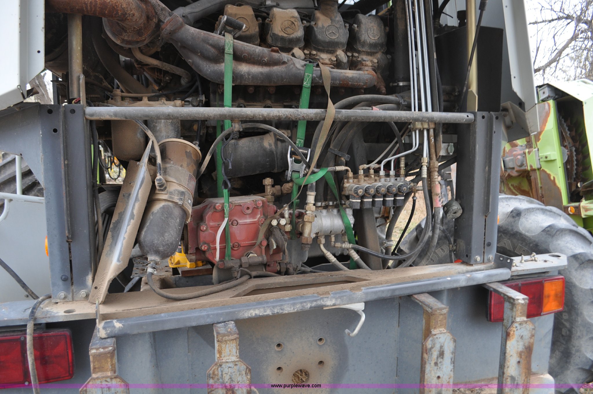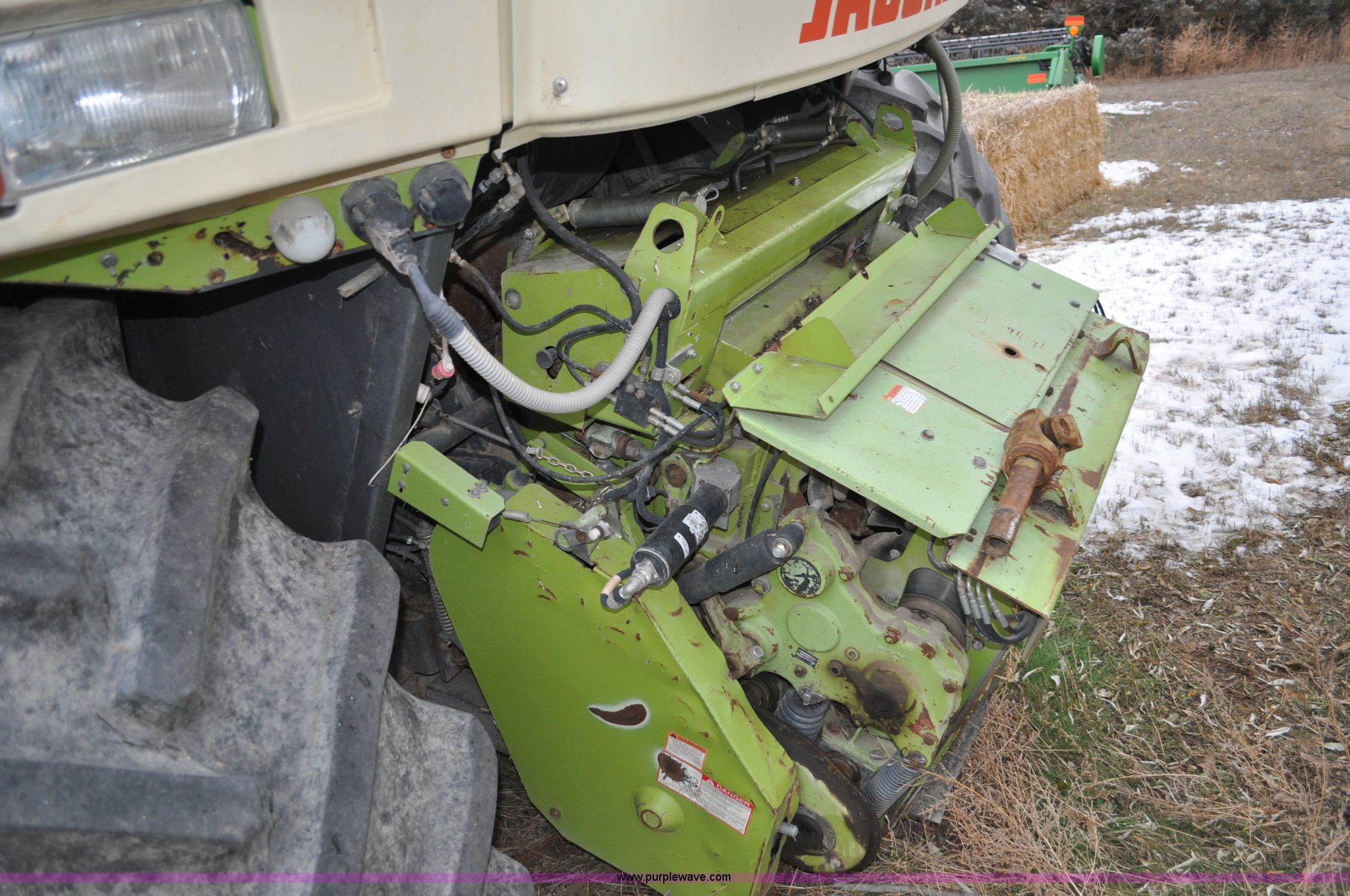 Purple Wave is selling a used Forage Harvester in Colorado. This item is a 2000 Claas Jaguar 880 forage harvester with the following: Unknown hours on meter, Mercedes-Benz OM442 eight cylinder turbo diesel engine, Hydrostatic transmission, AC and heat, Tilt steering wheel, AM/FM, Air suspension seat, Instructor's seat, Pioneer Ap system, Auto lube, Silage additive spray system, Hydraulic adjust spout, 800/65R32 front tires, 540/65R24 rear tires, Some parts may be missing, Machine has been partially disassembled, Unknown operating condition, Serial 491-03431