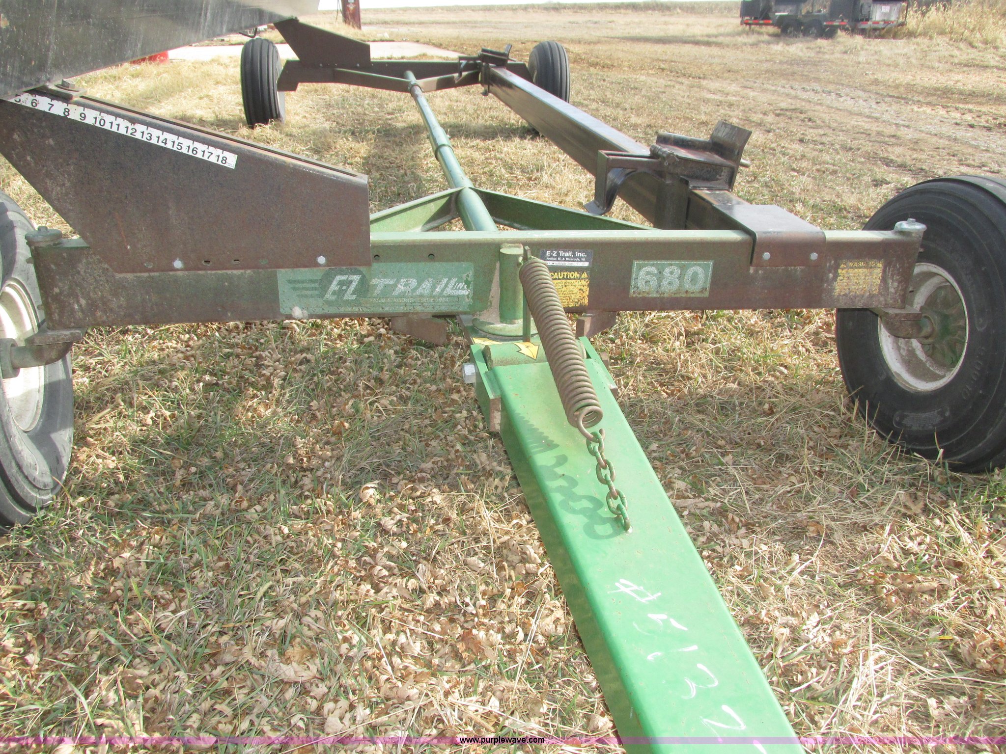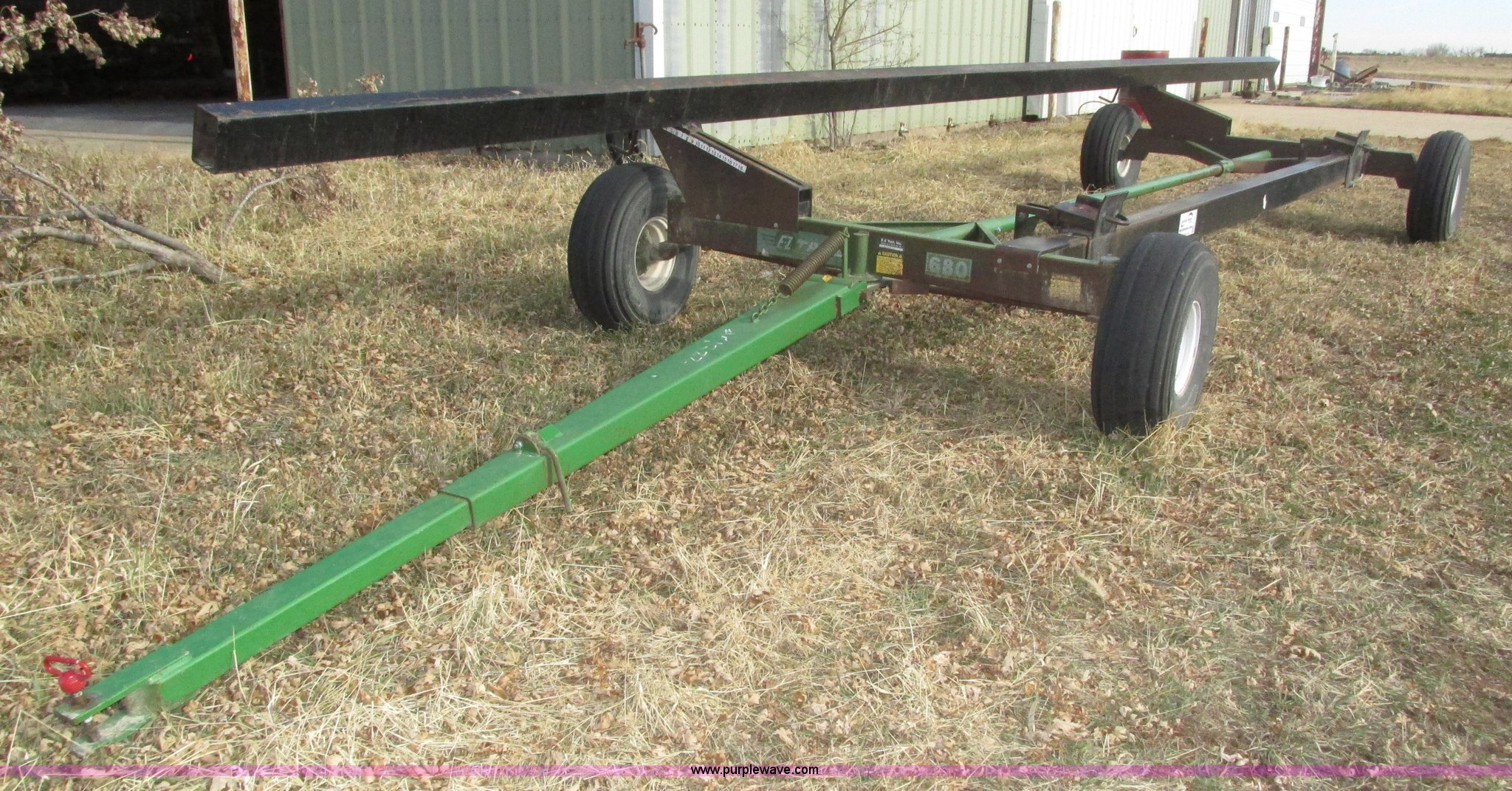 Purple Wave is selling a used Ag Equip. or Header Trailer in Nebraska. This item is a E-Z Trail 680 header trailer with the following: 31'3.5" head support, 4x6 beam, Adjustable header clamps, Spring assist adjustable tongue, Pin hitch, Rear pin hitch, 188" wheelbase, 9.00-10 ribbed tires, Serial 680E1010092039