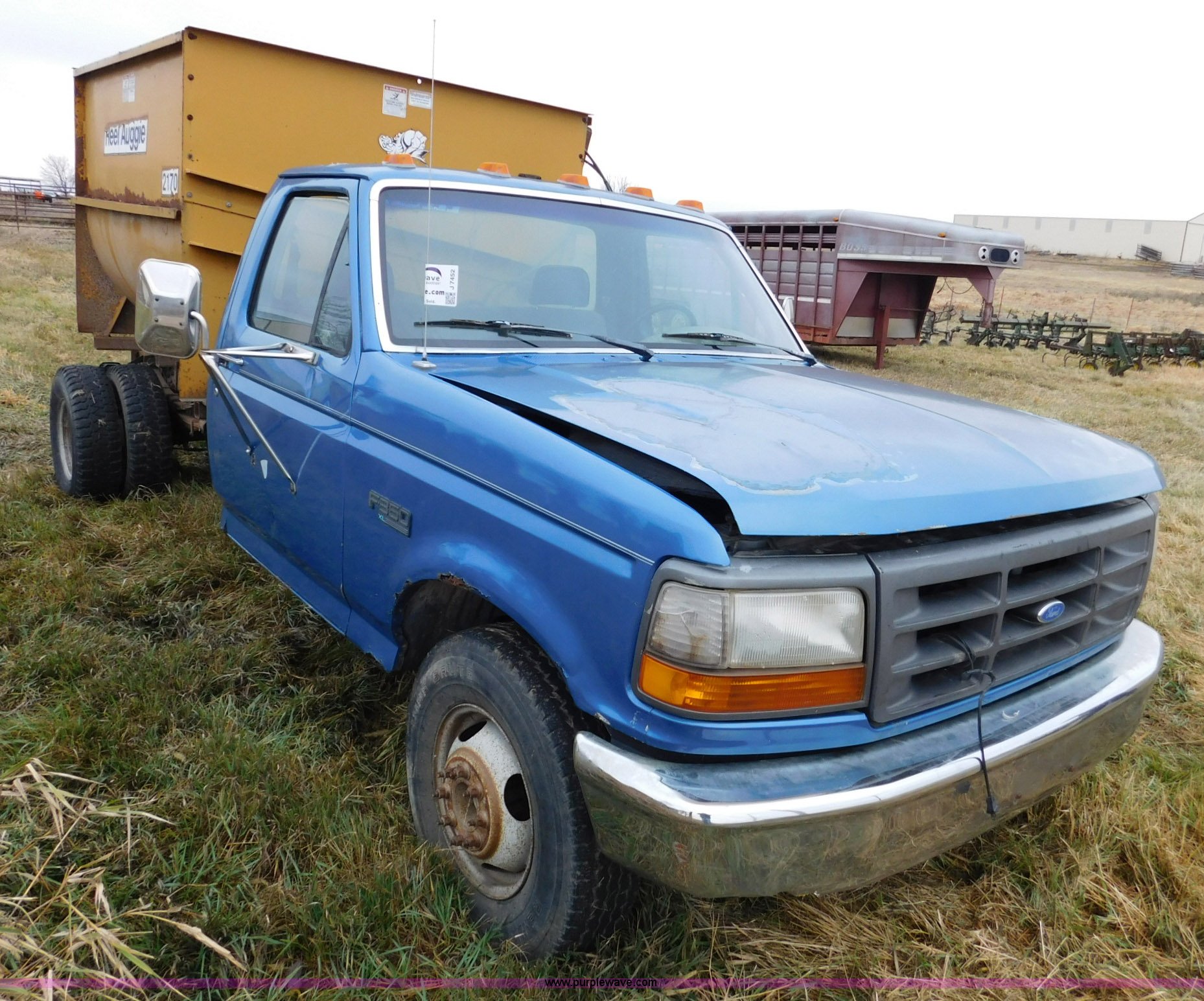 Purple Wave is selling a used 3/4 or 1 Ton Pickup or Van in Kansas. This item is a 1993 Ford F350 feed truck with the following: 137,884 miles on odometer, 7.3L V8 OHV 16V diesel engine, Five speed manual transmission, Heat, Tilt, AM/FM/cassette, Manual windows and locks, Cloth interior, Knight 2170 feed box, 7'L x 6'W, Stationary mixer, Engine drive hydraulics, LT235/85R16 tires, Interior/exterior cosmetic damage, Brakes inoperable
