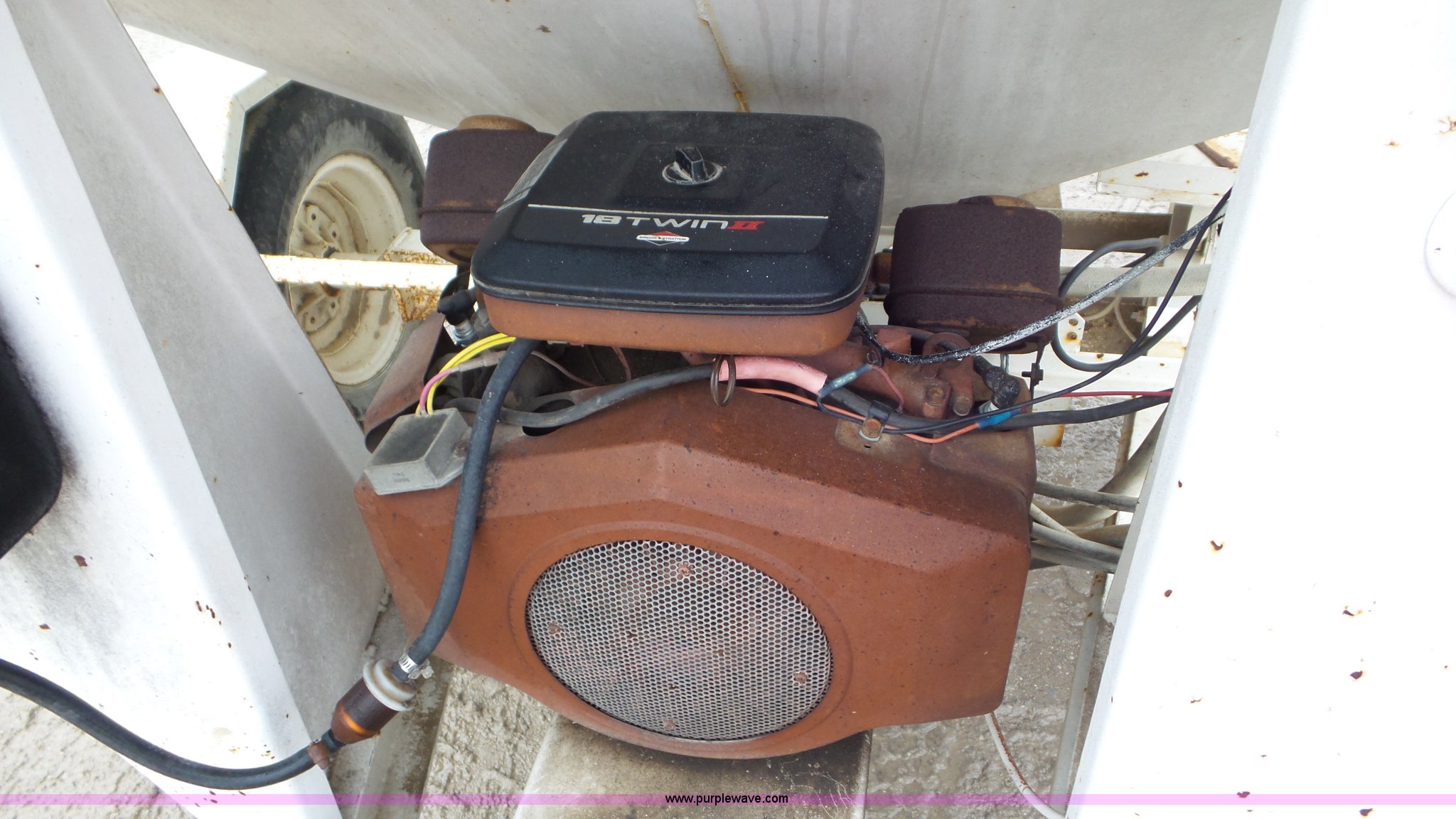 Parker 1500 weigh wagon. Scale monitor, Three valve control, Briggs & Stratton Twin II gas engine 18 HP, Electric start, Tarp, 8" auger, 7.50-16 tires, Serial 90116. Crop Production Services. 450 S West St. Henderson, MI 48841