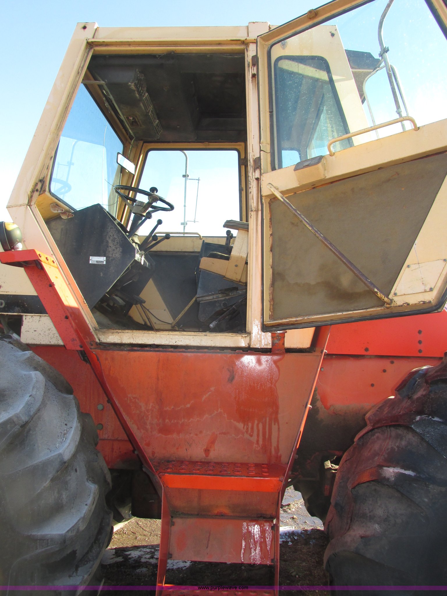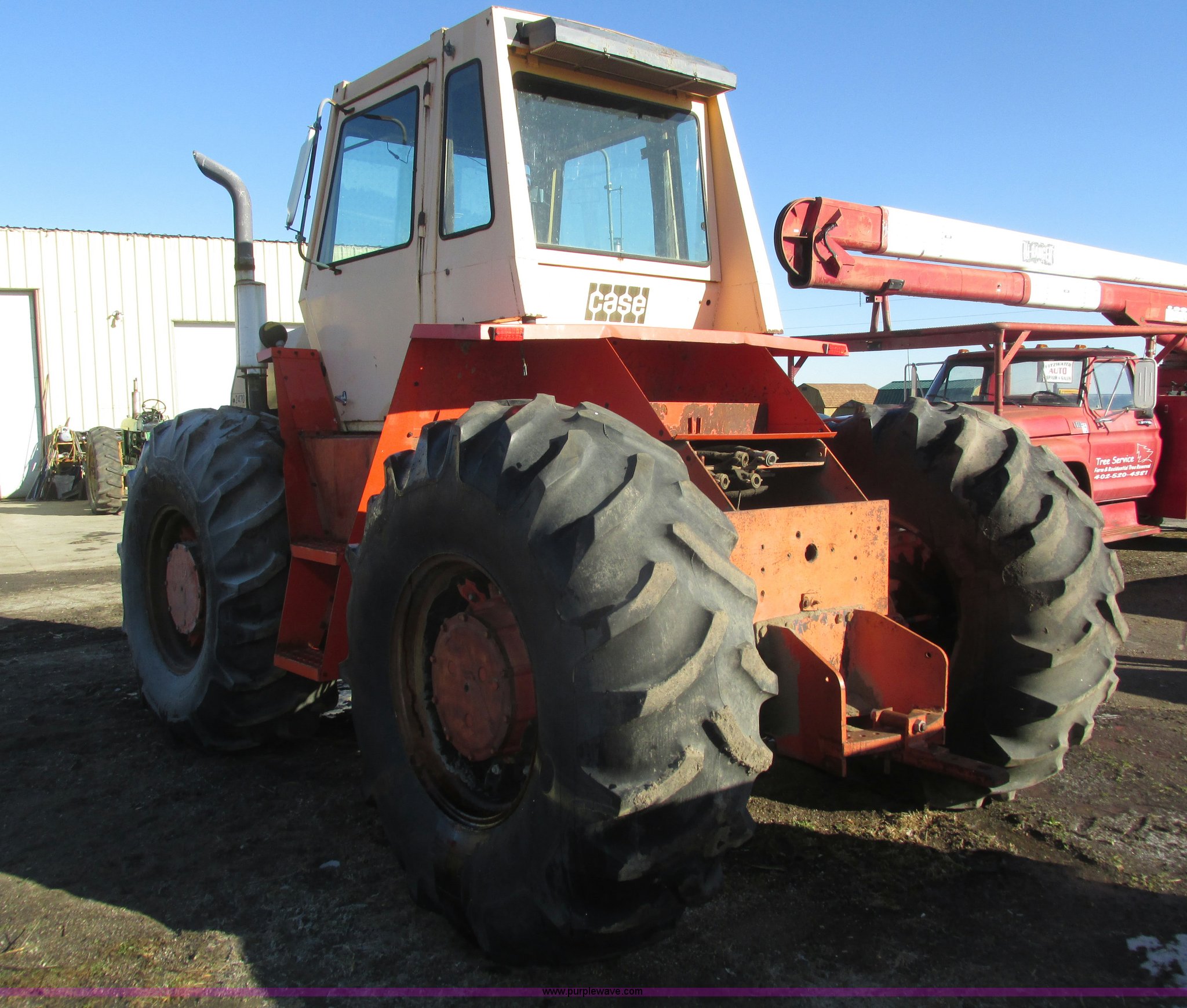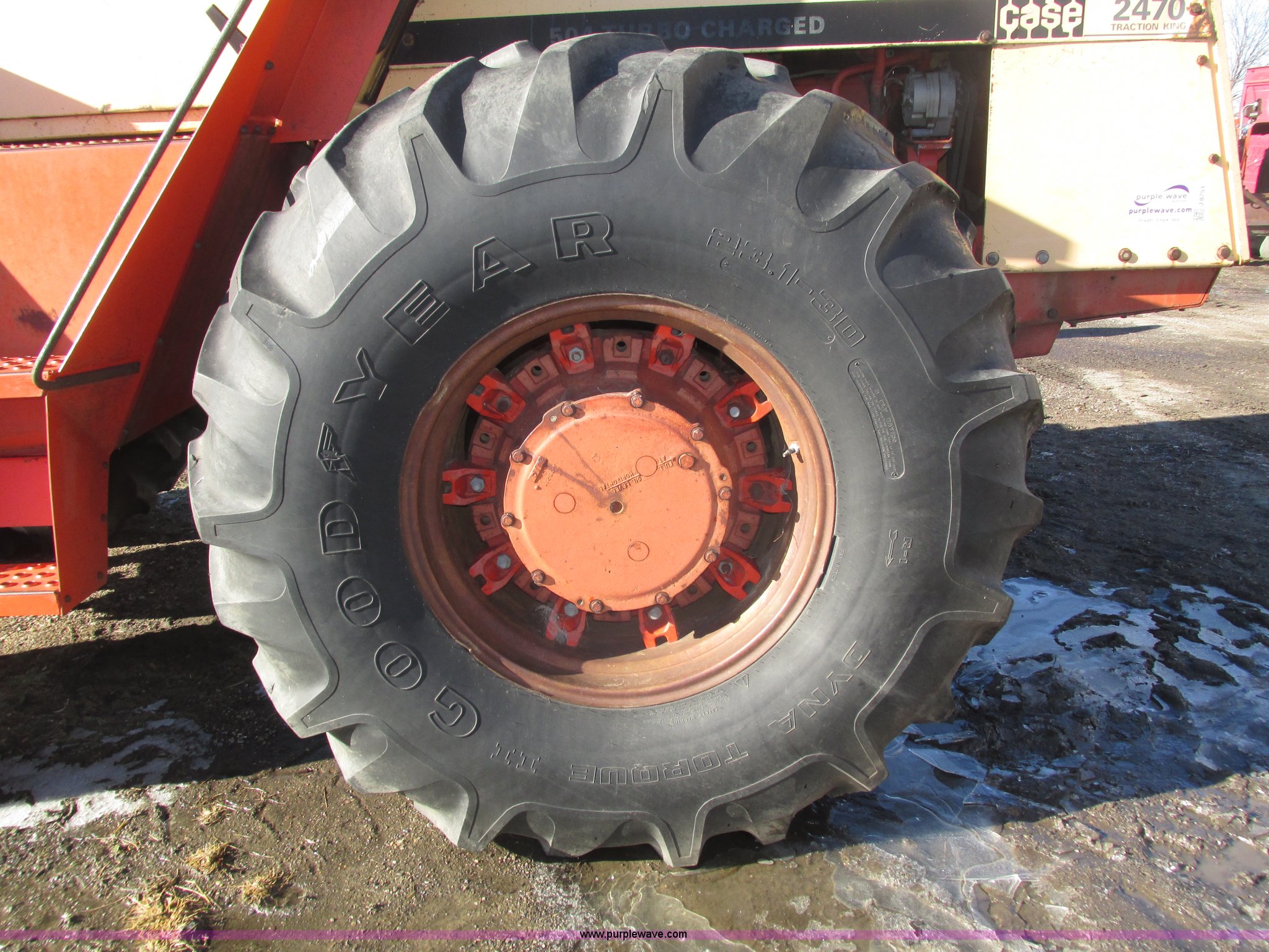 Purple Wave is selling a used Tractor in Nebraska. This item is a 1972 Case 2470 Traction King 4WD tractor with the following: 4,435 hours on meter, J.I. Case 504 8.3L six cylinder turbo diesel engine, Powershift transmission, 12F-2R gears, Four wheel steer, AC and heat, Tilt steering wheel, Suspension seat, Block heater, Glow plugs, Draw bar, (2) rear hydraulic remote sets, 110 gallon fuel capacity, Goodyear 23.1-20 tires, Seat cover missing, Batteries will be installed and hooked up prior to auction, Serial 8692407