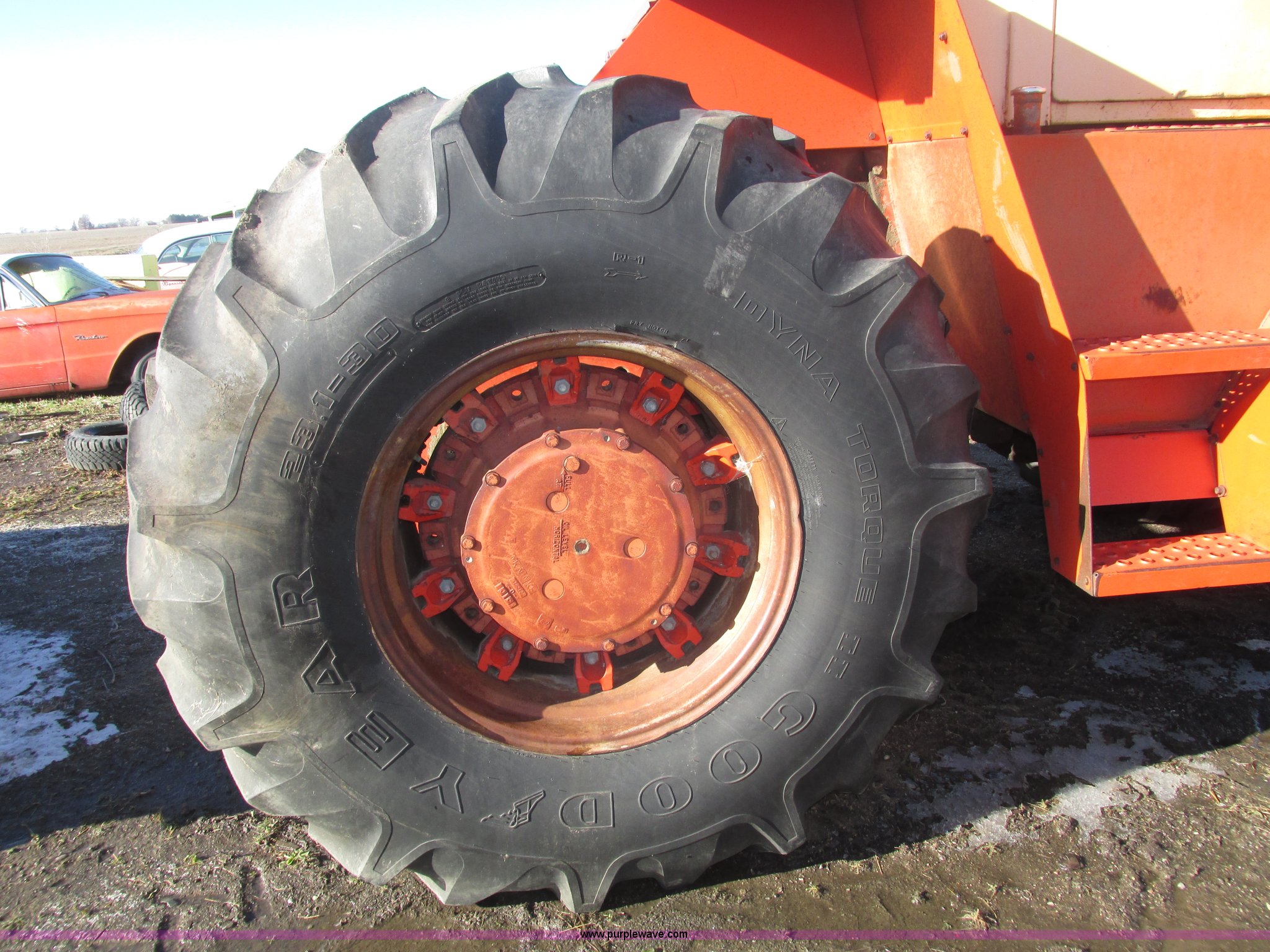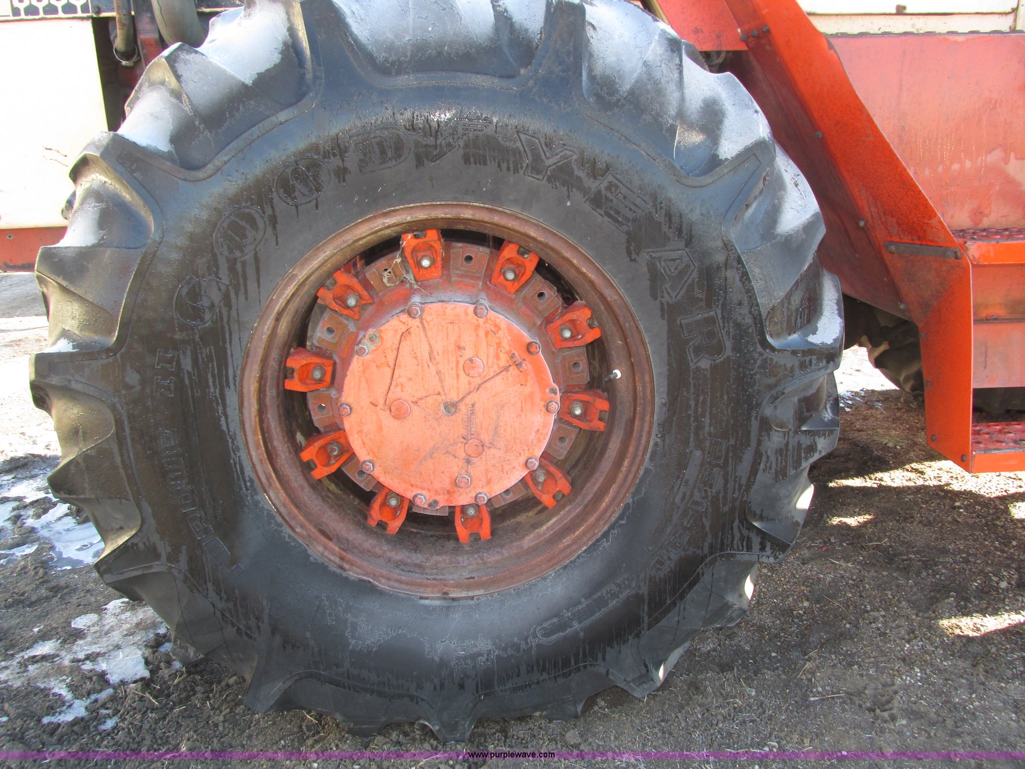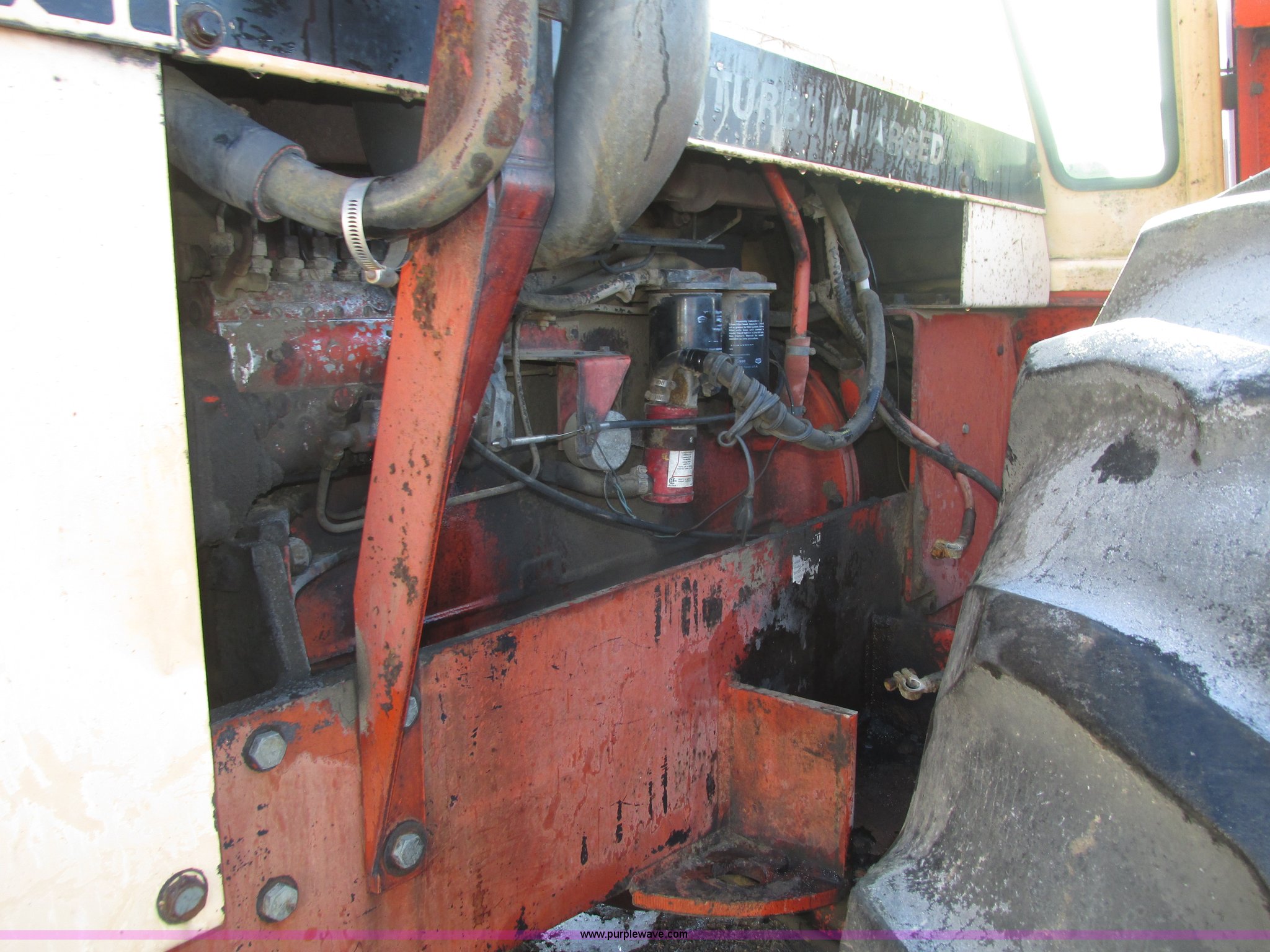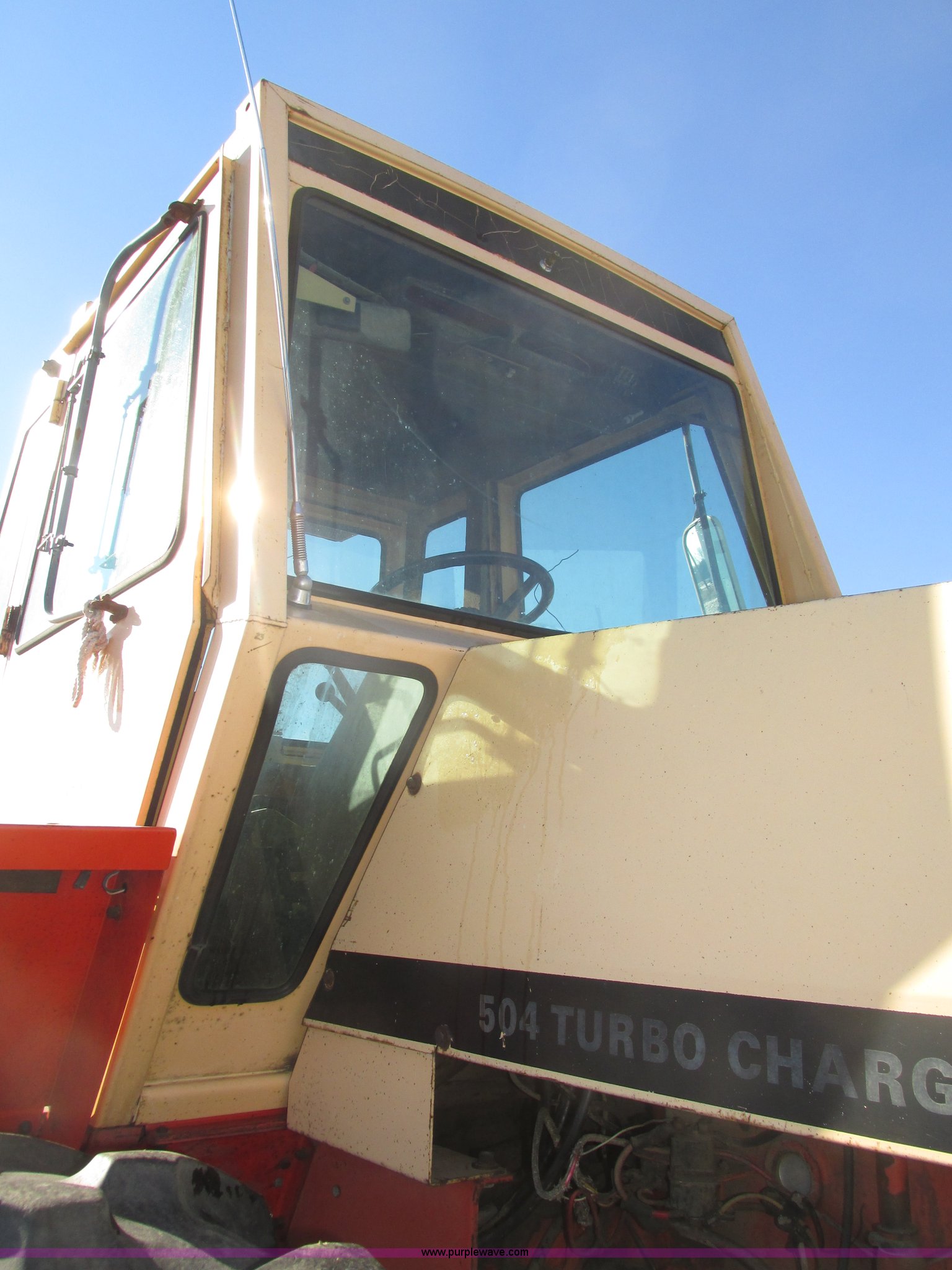 Purple Wave is selling a used Tractor in Nebraska. This item is a 1972 Case 2470 Traction King 4WD tractor with the following: 4,435 hours on meter, J.I. Case 504 8.3L six cylinder turbo diesel engine, Powershift transmission, 12F-2R gears, Four wheel steer, AC and heat, Tilt steering wheel, Suspension seat, Block heater, Glow plugs, Draw bar, (2) rear hydraulic remote sets, 110 gallon fuel capacity, Goodyear 23.1-20 tires, Seat cover missing, Batteries will be installed and hooked up prior to auction, Serial 8692407