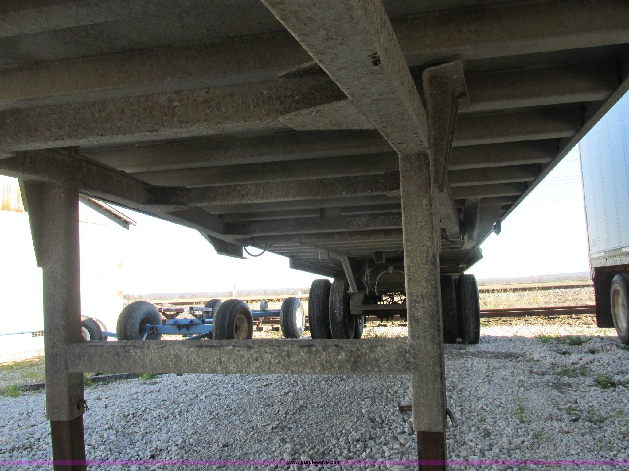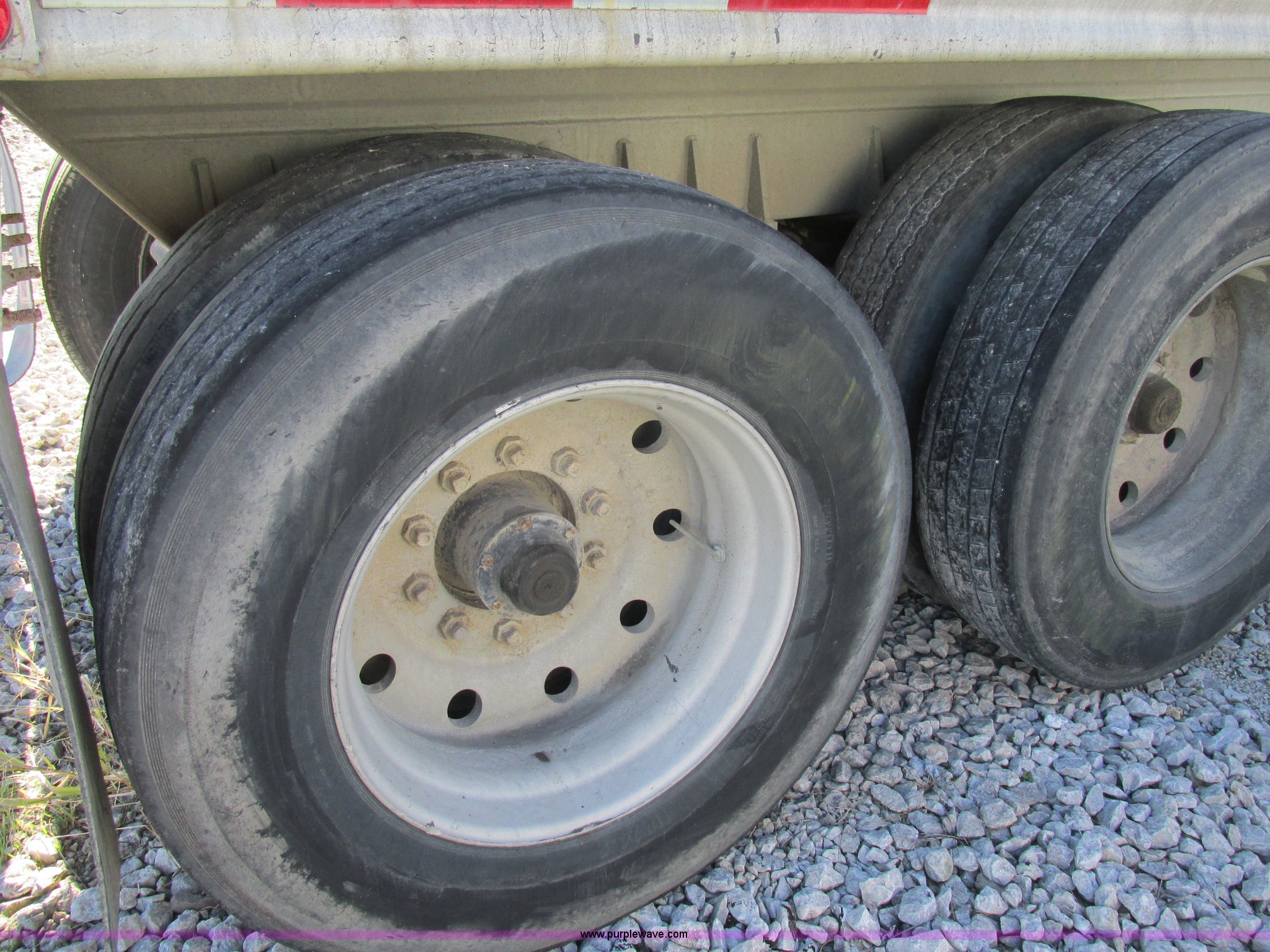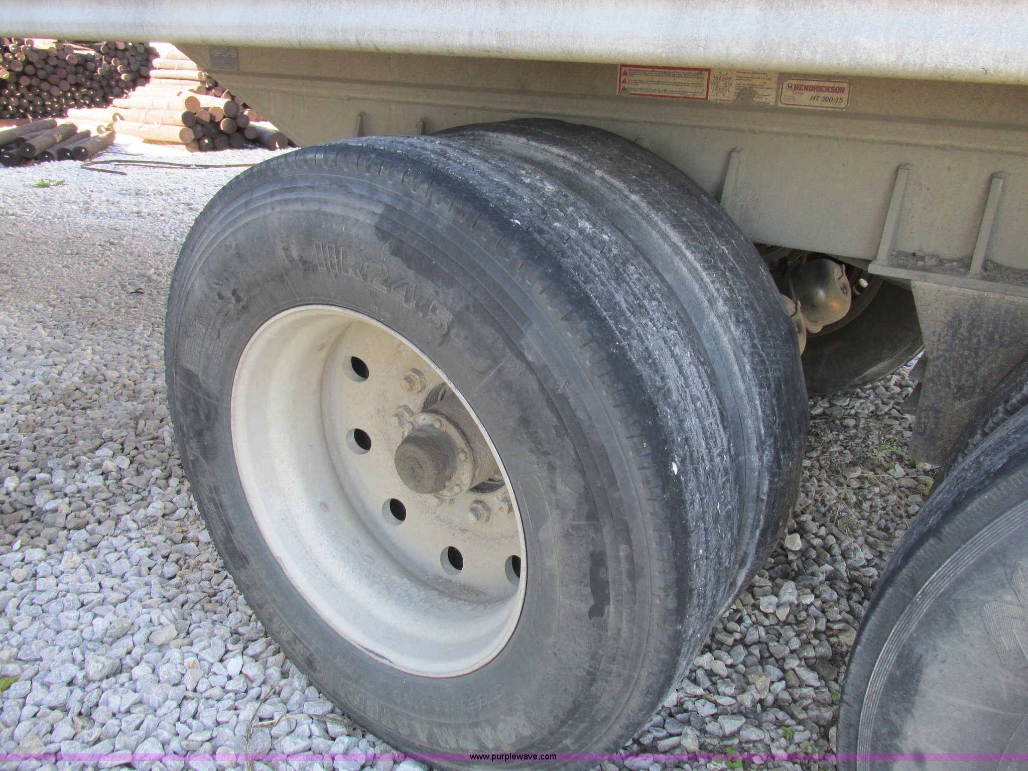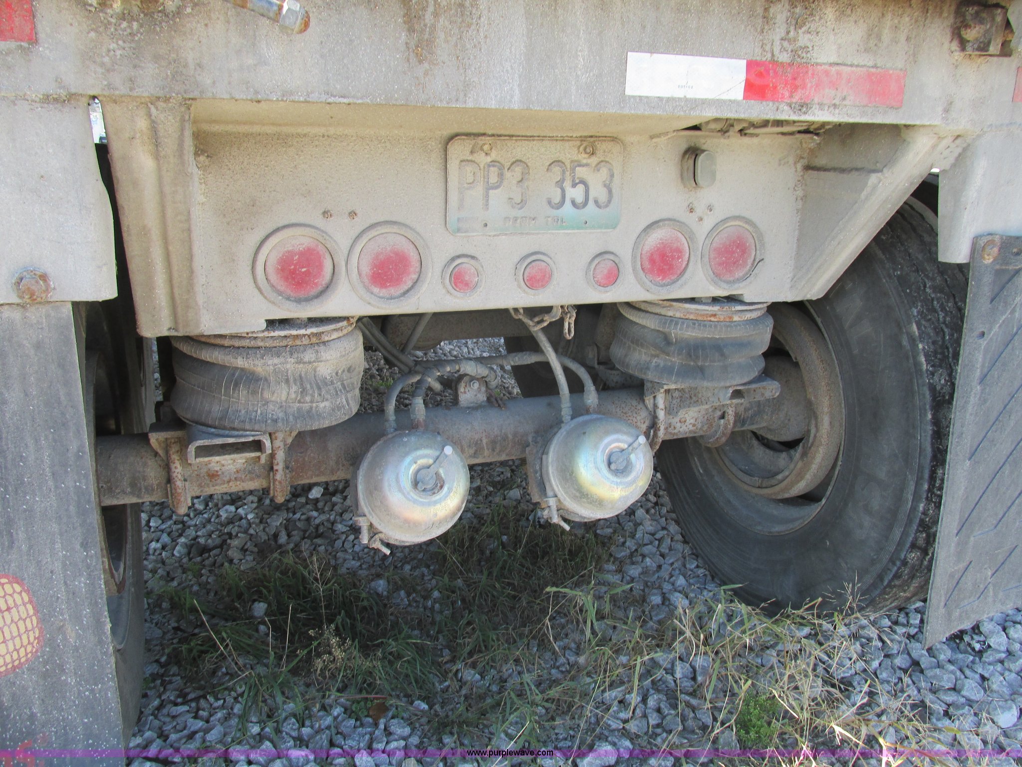 Purple Wave is selling a used End Dump Rock Trailer in Missouri. This item is a 1993 Mate end dump trailer with the following: Aluminum construction, Grain door, End gate, Rollover tarp, Trailer hitch sub frame, Dual leg landing gear, Air leaf suspension, Air brakes, Fifth wheel plate, Tandem axle, Aluminum outer wheels, 11R24.5 tires, GVWR 34,000 lbs, Bent