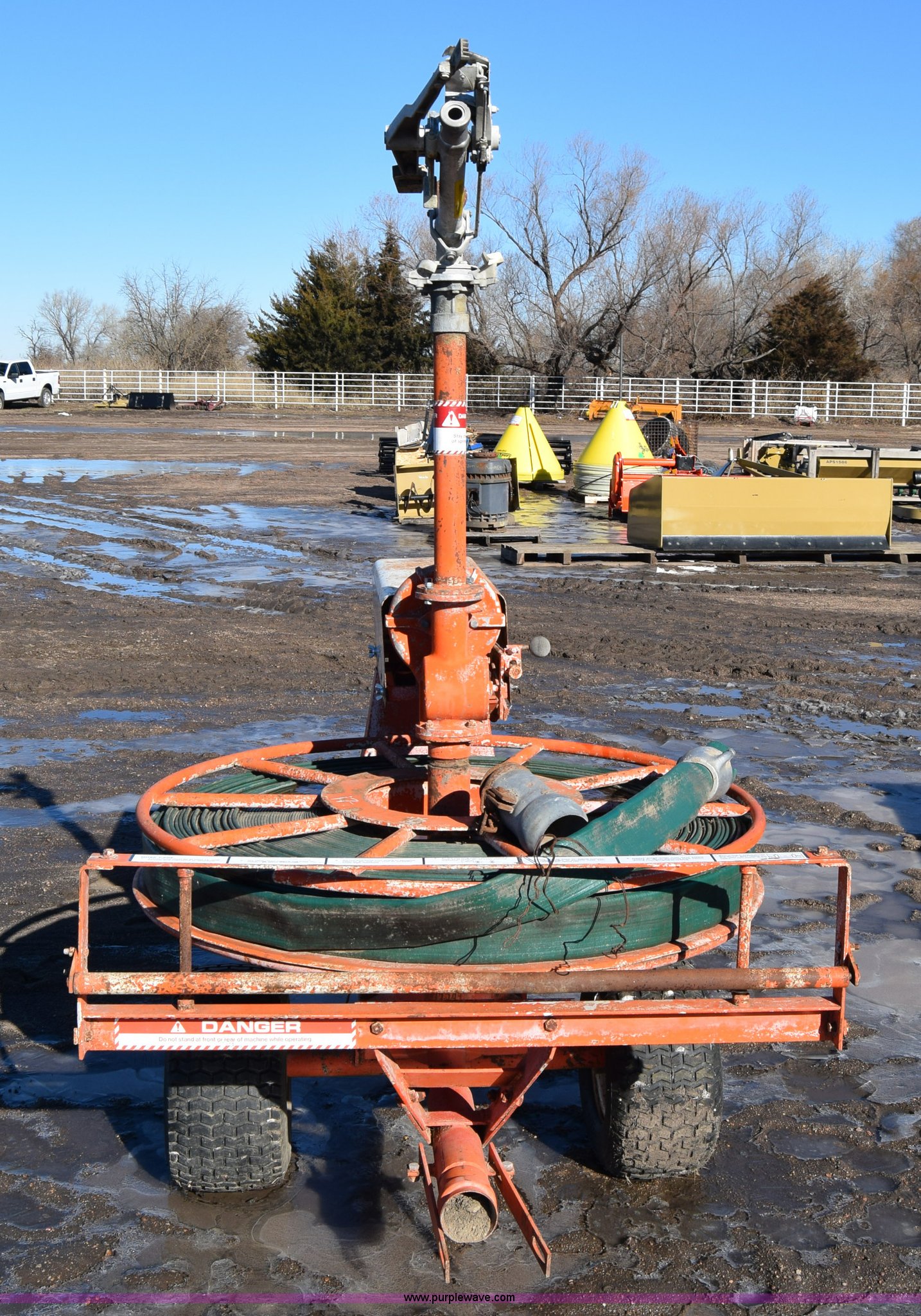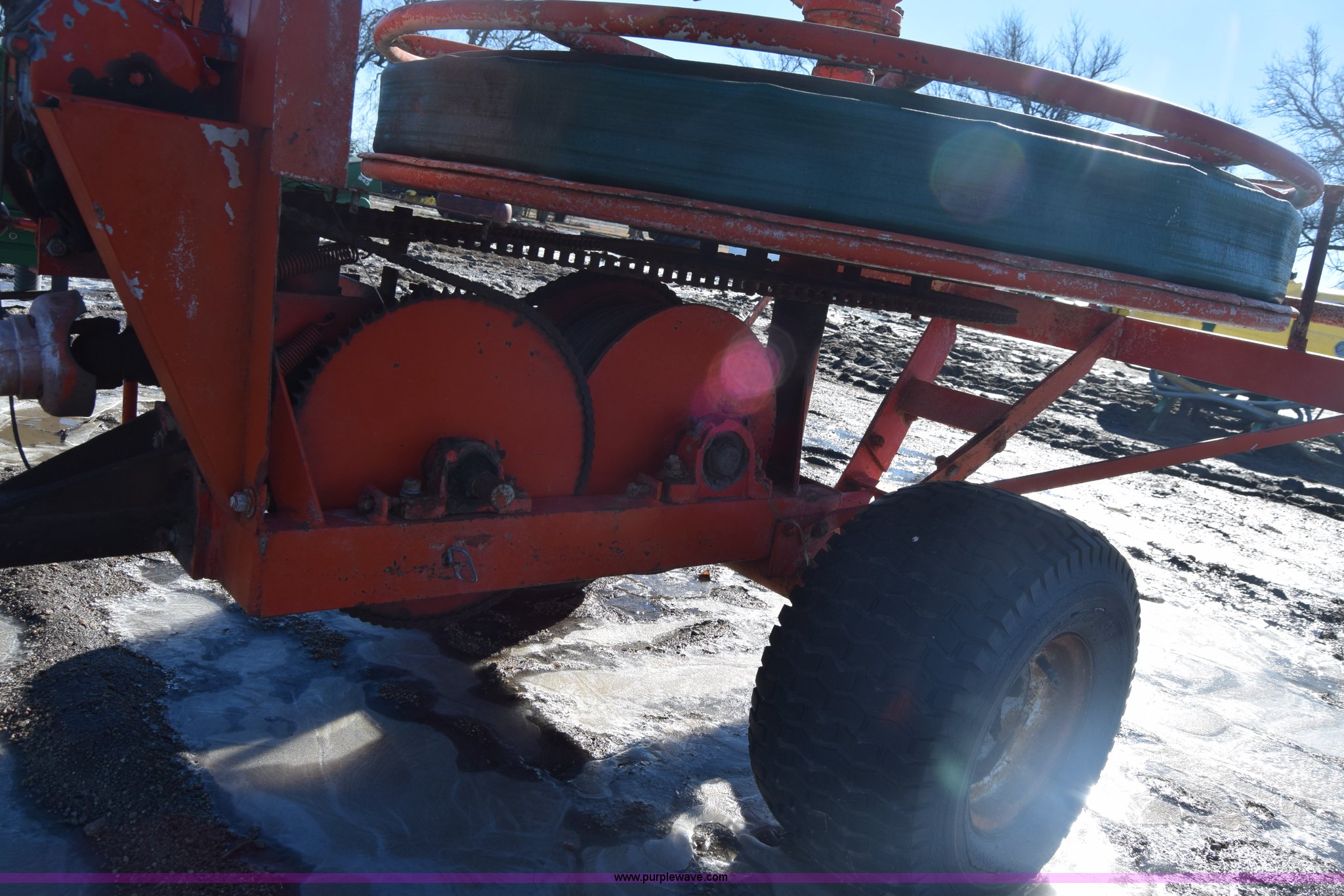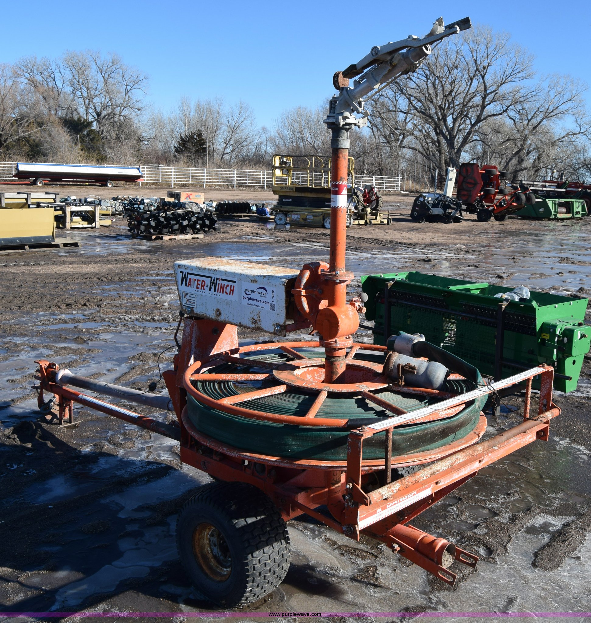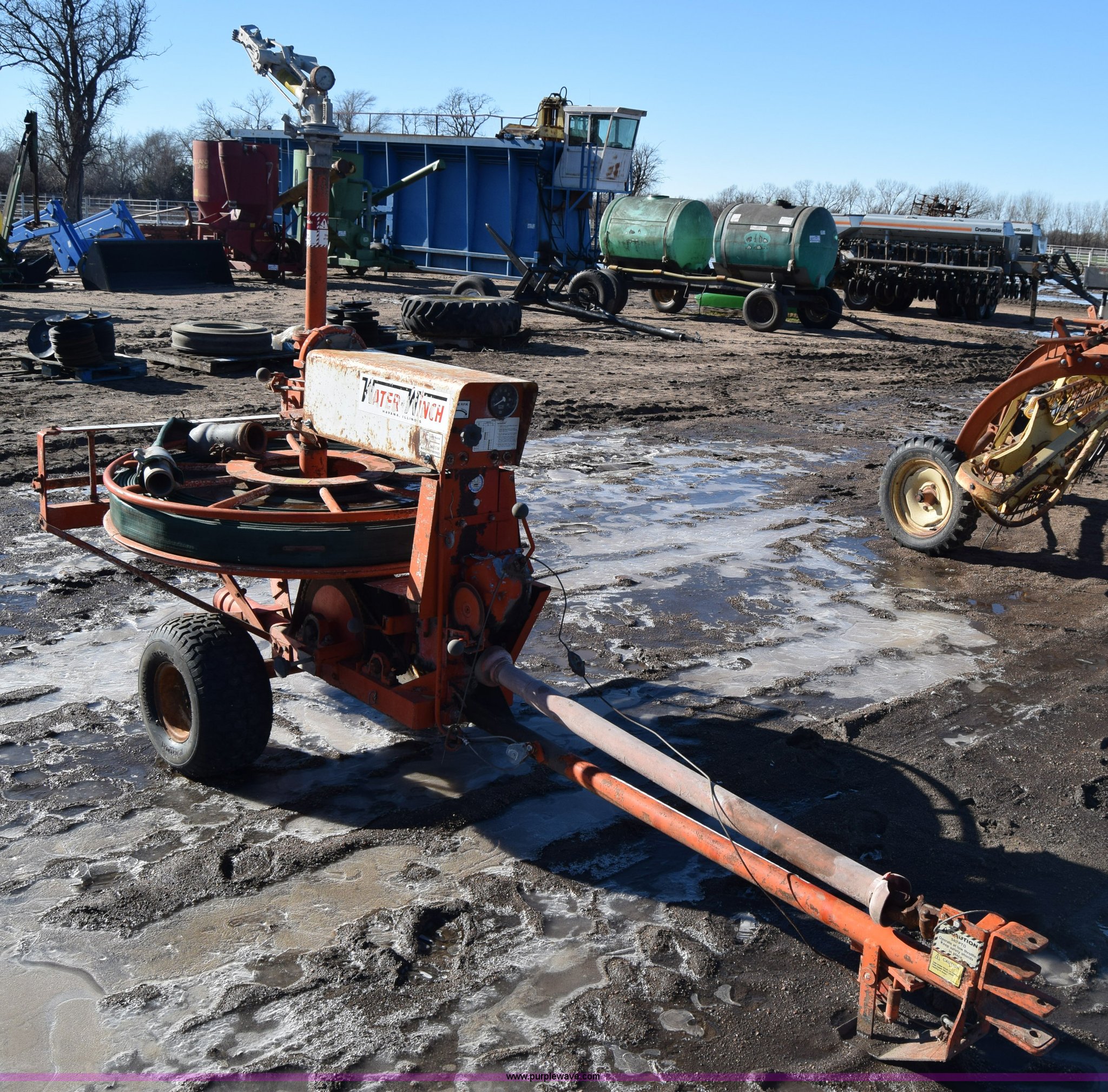Purple Wave is selling a used Irrigation Equip. Attach. in Kansas. This item is a Water Winch 1400M traveling irrigator with the following: Turbine powered, Pin hitch, 18x9.50-8 tires, Serial 0127
