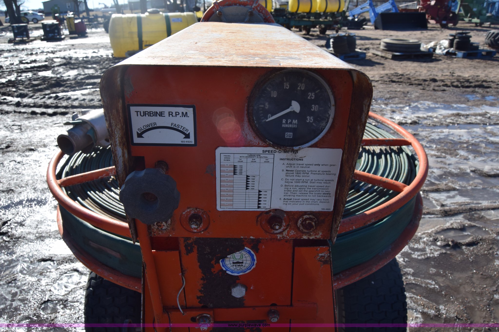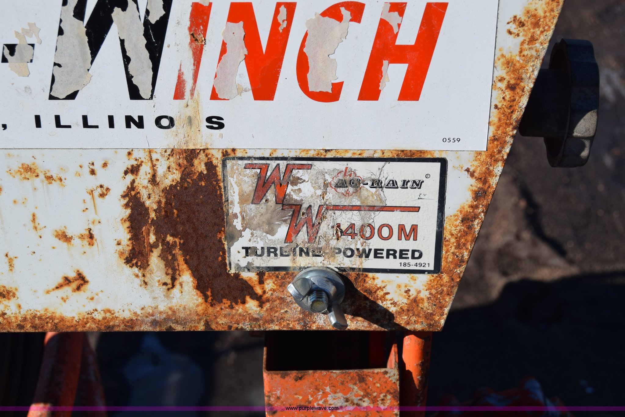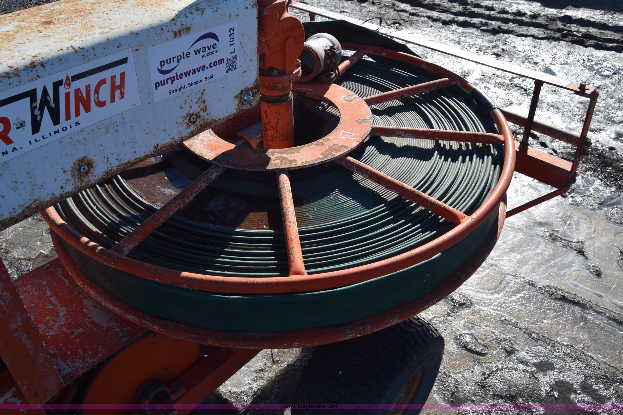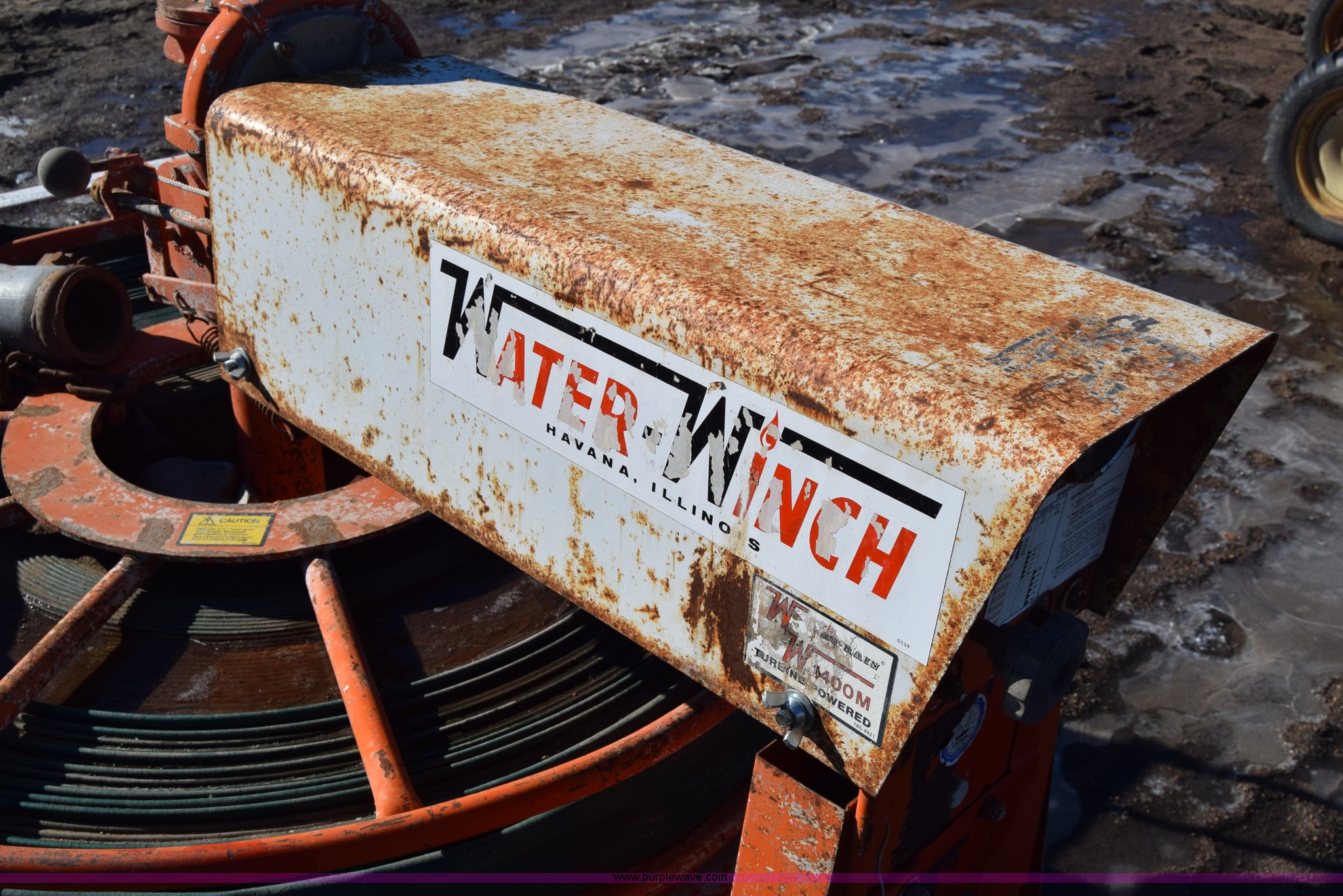 Purple Wave is selling a used Irrigation Equip. Attach. in Kansas. This item is a Water Winch 1400M traveling irrigator with the following: Turbine powered, Pin hitch, 18x9.50-8 tires, Serial 0127