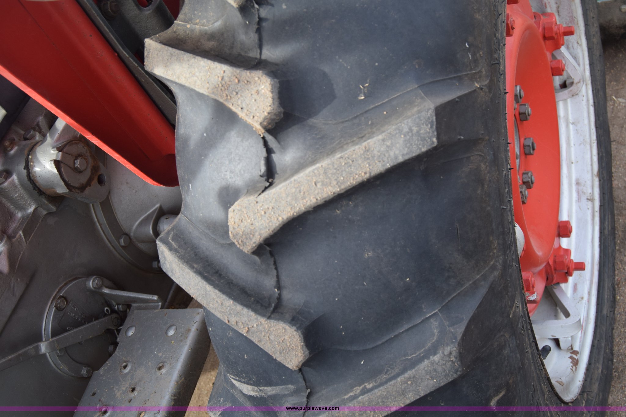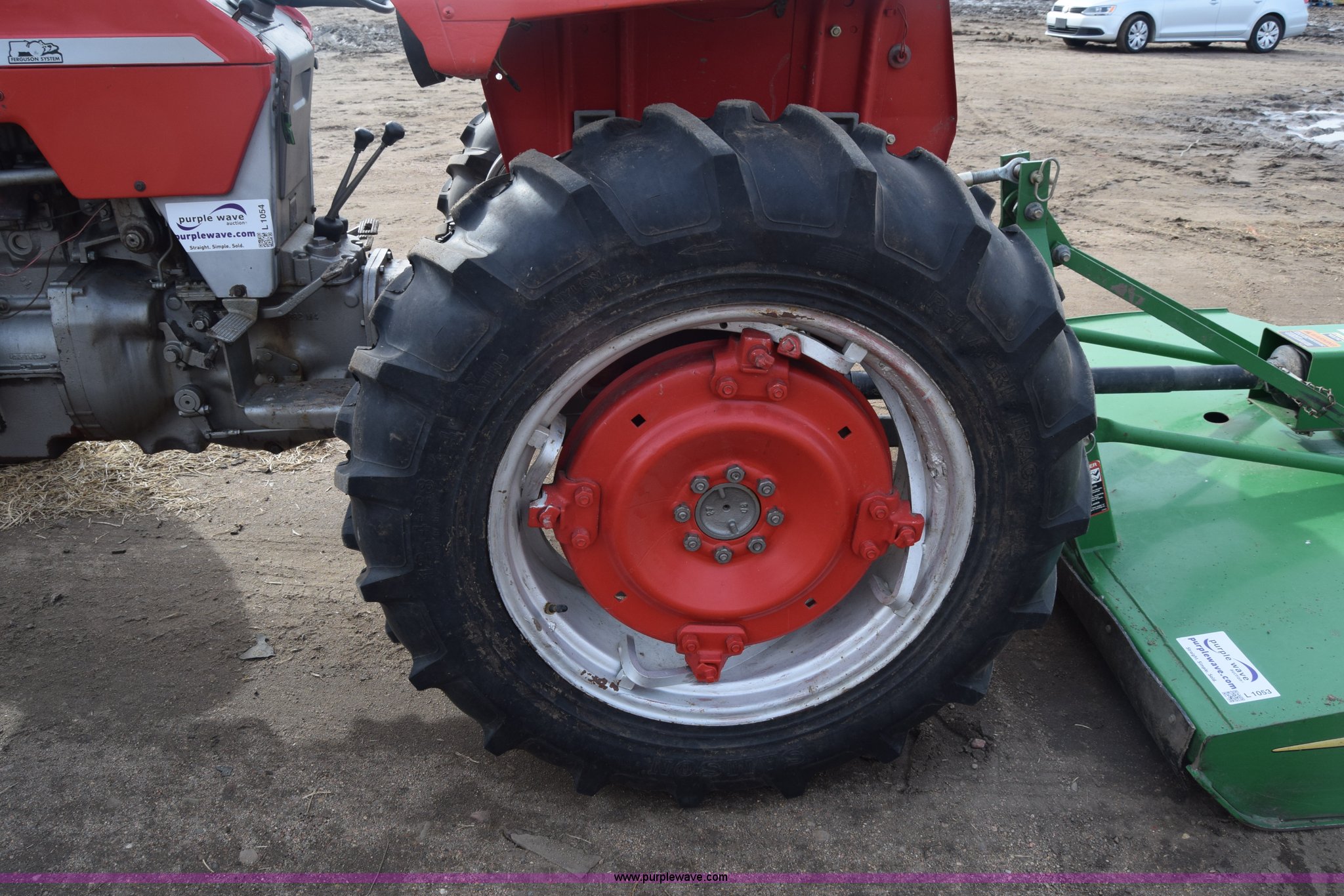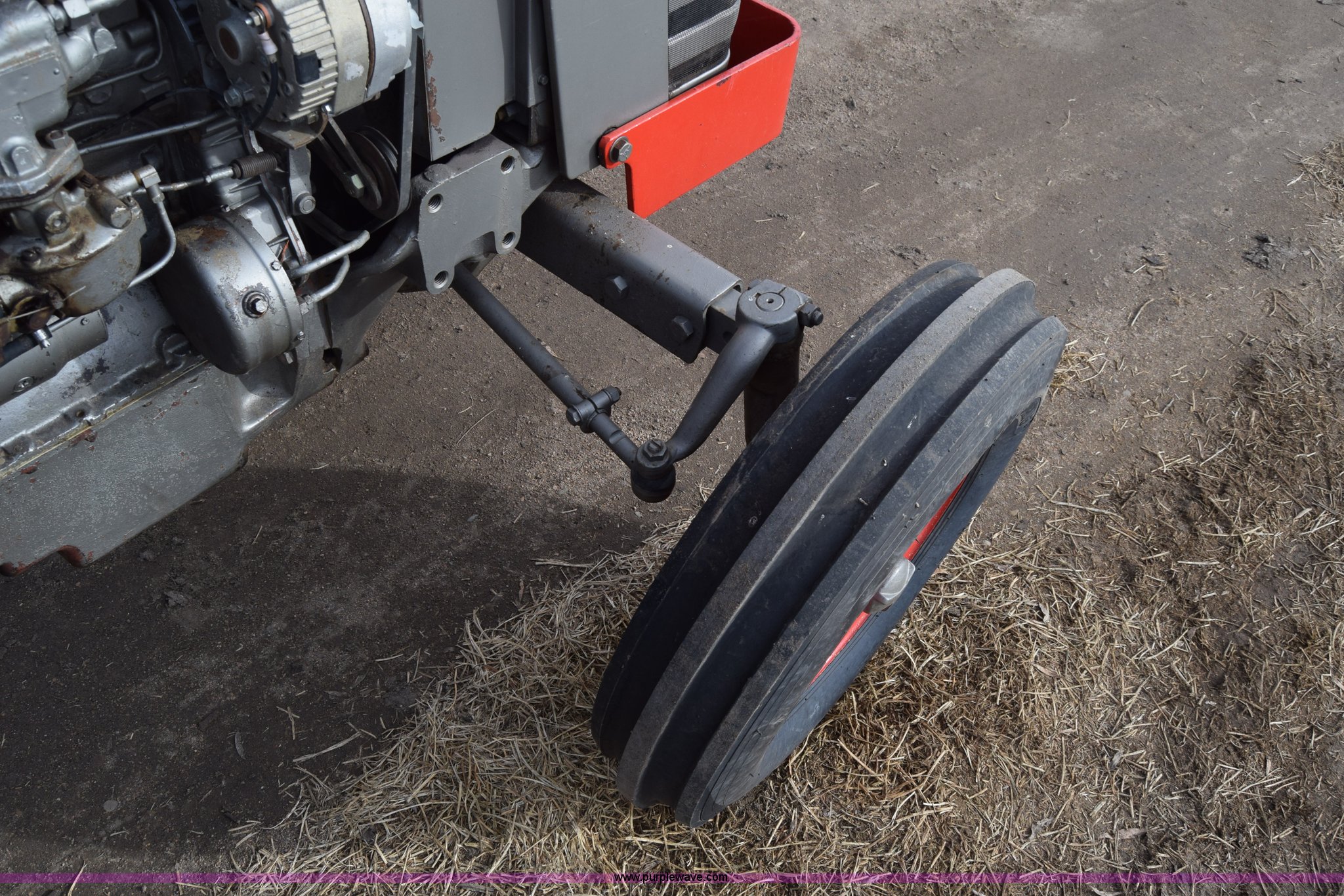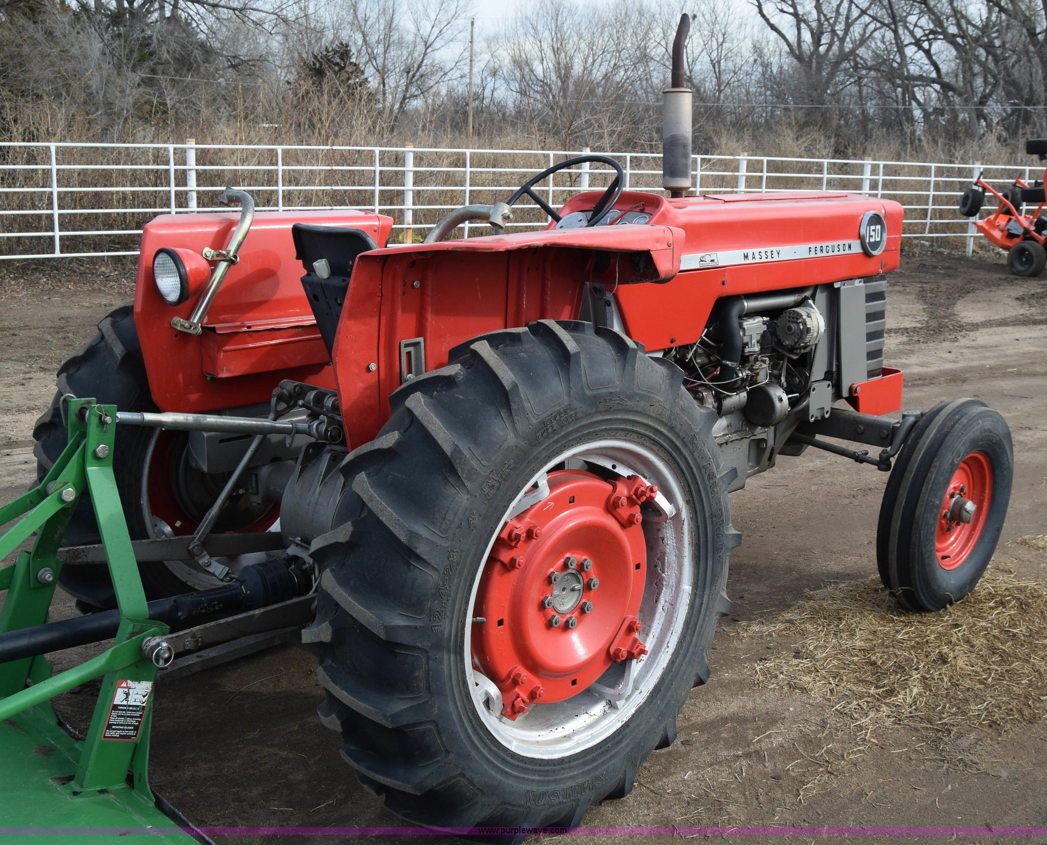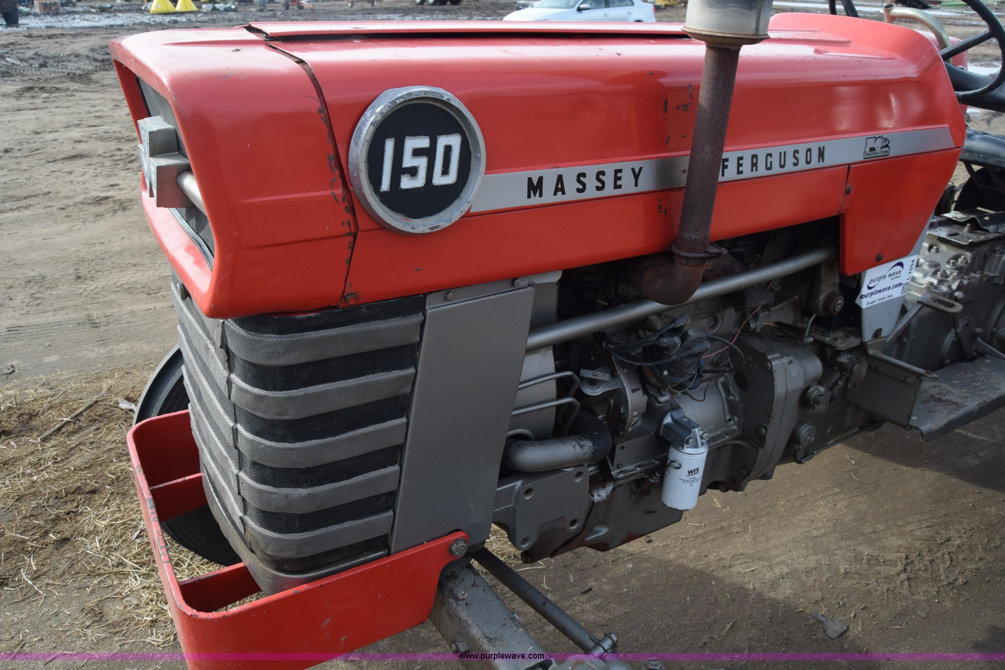 Purple Wave is selling a used Tractor in Kansas. This item is a Massey-Ferguson 150 tractor with the following: 9,292 hours on meter, Continental 2.4L four cylinder gas engine, 45 HP, Manual transmission, 8F-2R gears, Suspension seat, Work lights, Three point, 540 PTO, 18.5 gallon fuel tank, 81" wheelbase, 7.50-16 front tires, 12.4-28 rear tires, Rotary mower not included