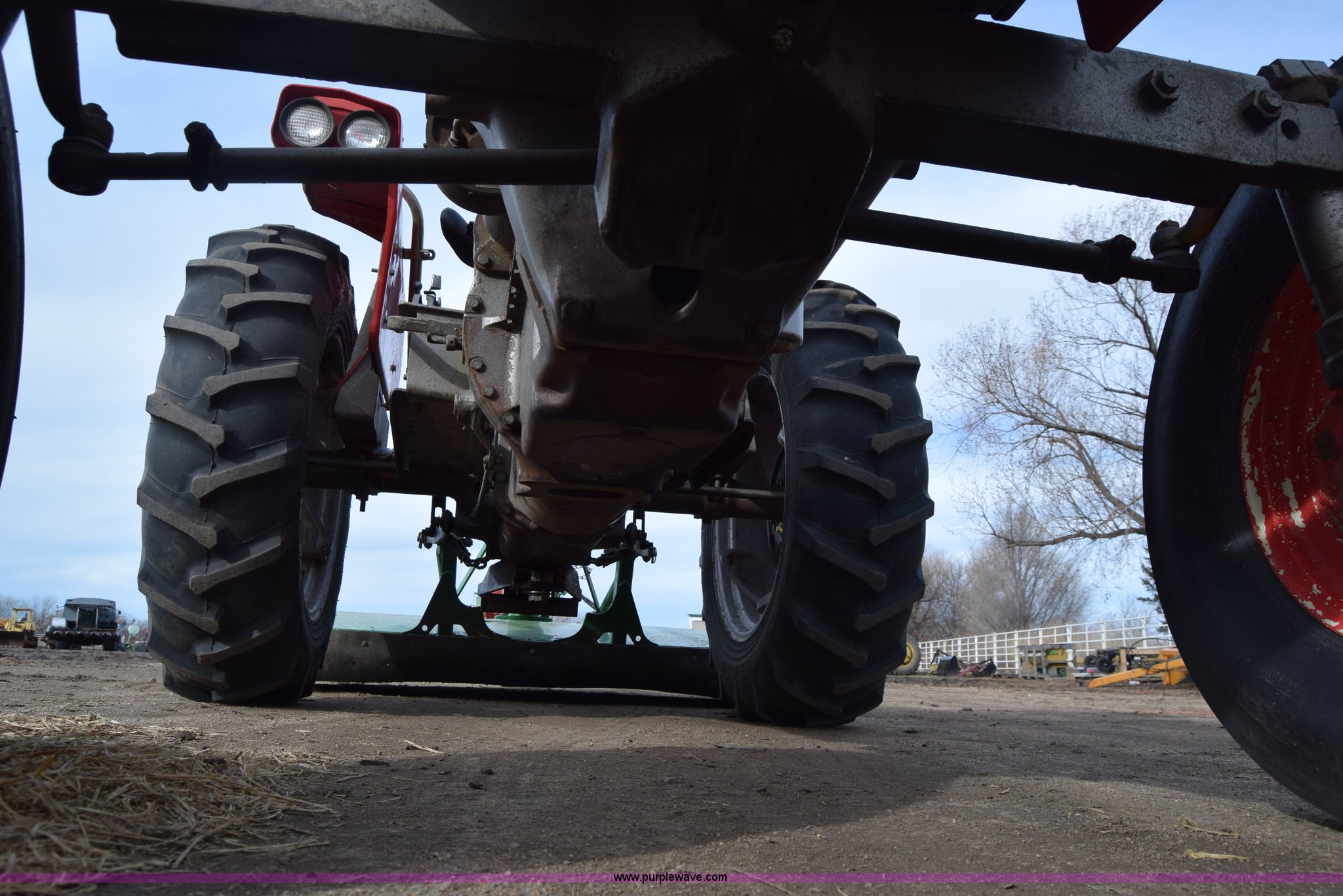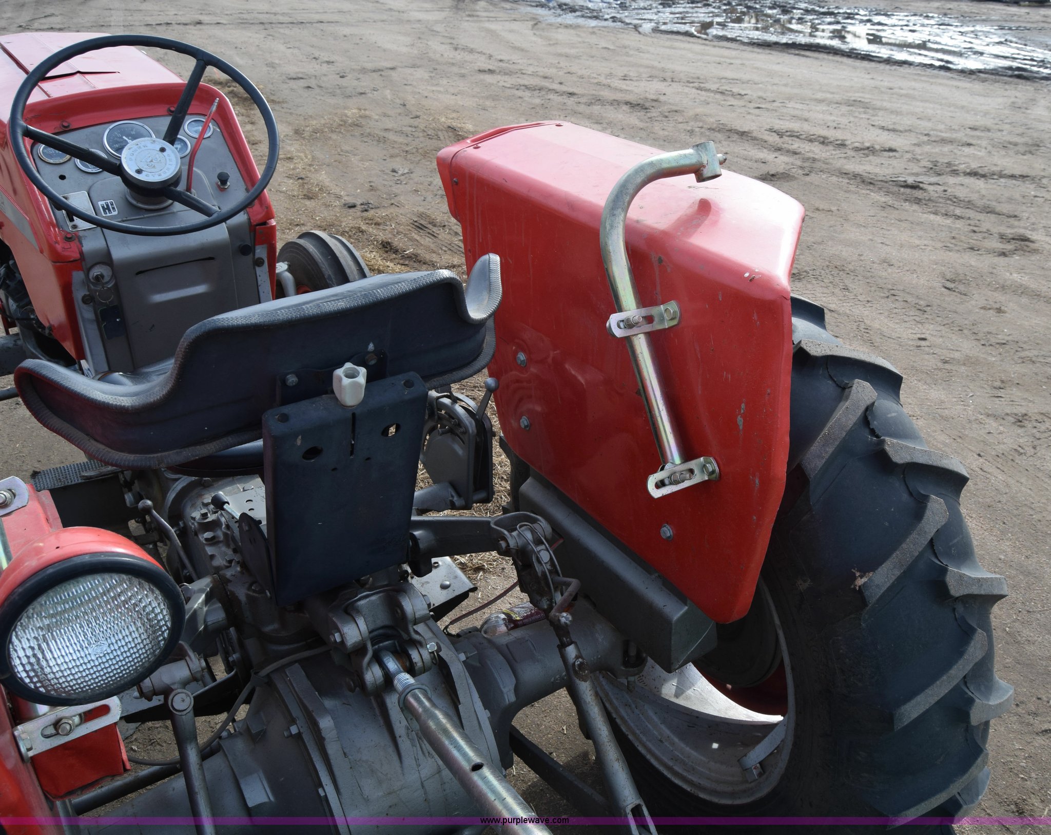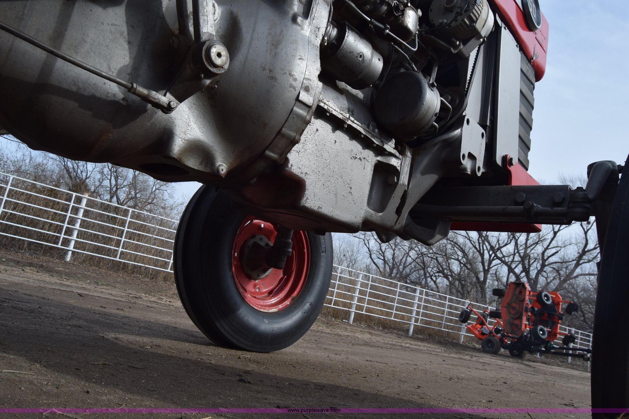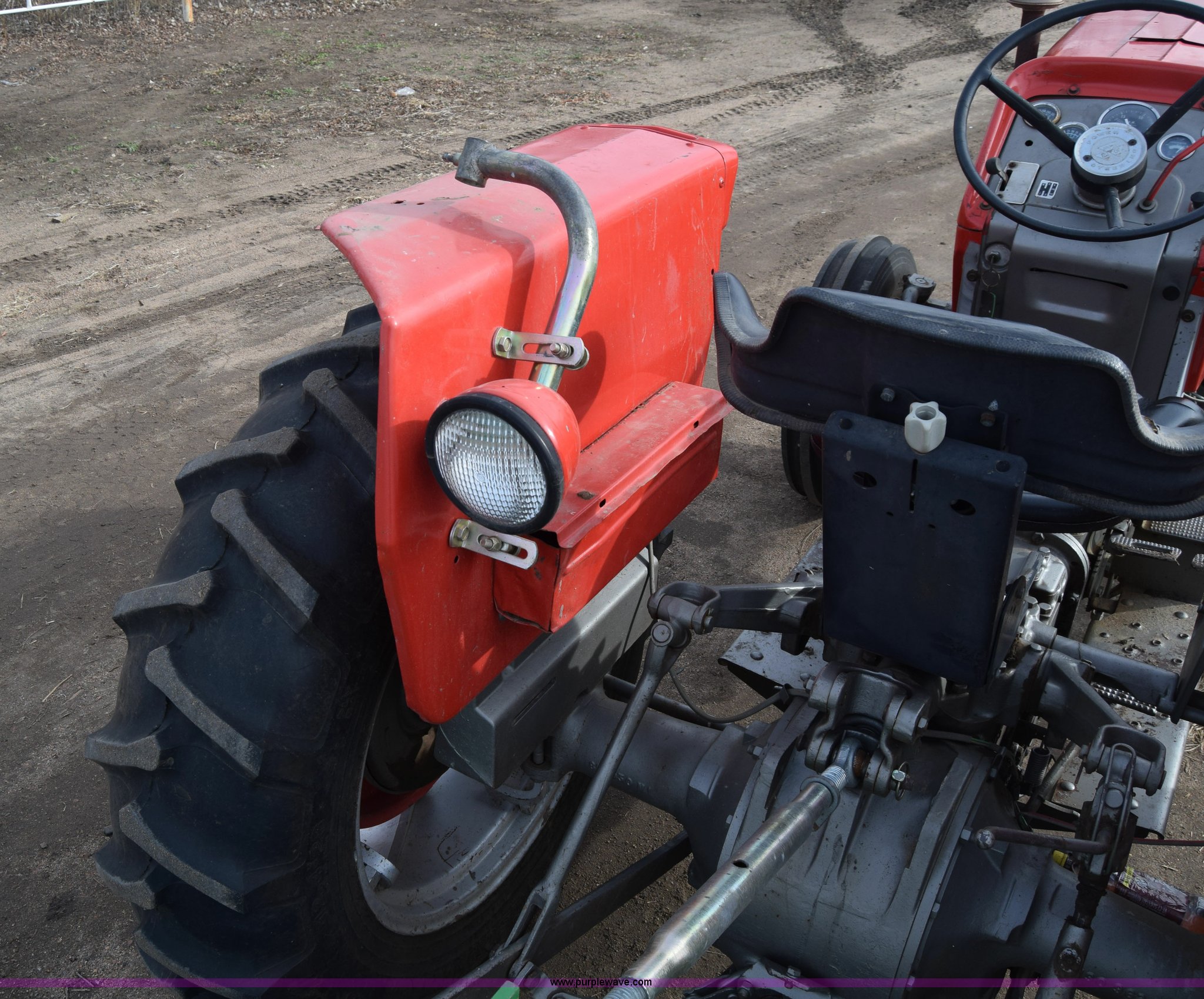 Purple Wave is selling a used Tractor in Kansas. This item is a Massey-Ferguson 150 tractor with the following: 9,292 hours on meter, Continental 2.4L four cylinder gas engine, 45 HP, Manual transmission, 8F-2R gears, Suspension seat, Work lights, Three point, 540 PTO, 18.5 gallon fuel tank, 81" wheelbase, 7.50-16 front tires, 12.4-28 rear tires, Rotary mower not included