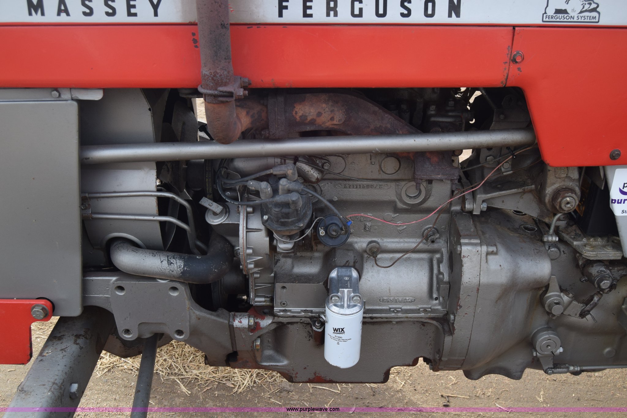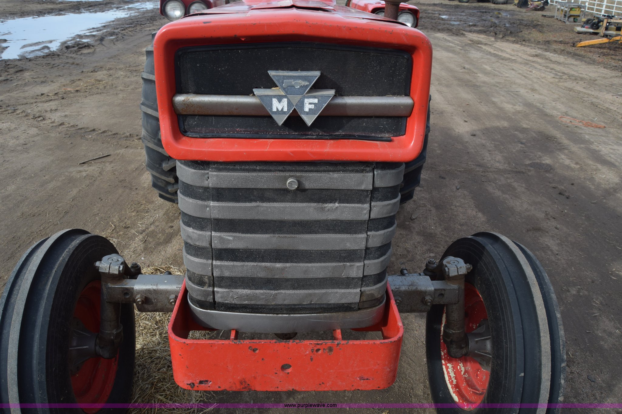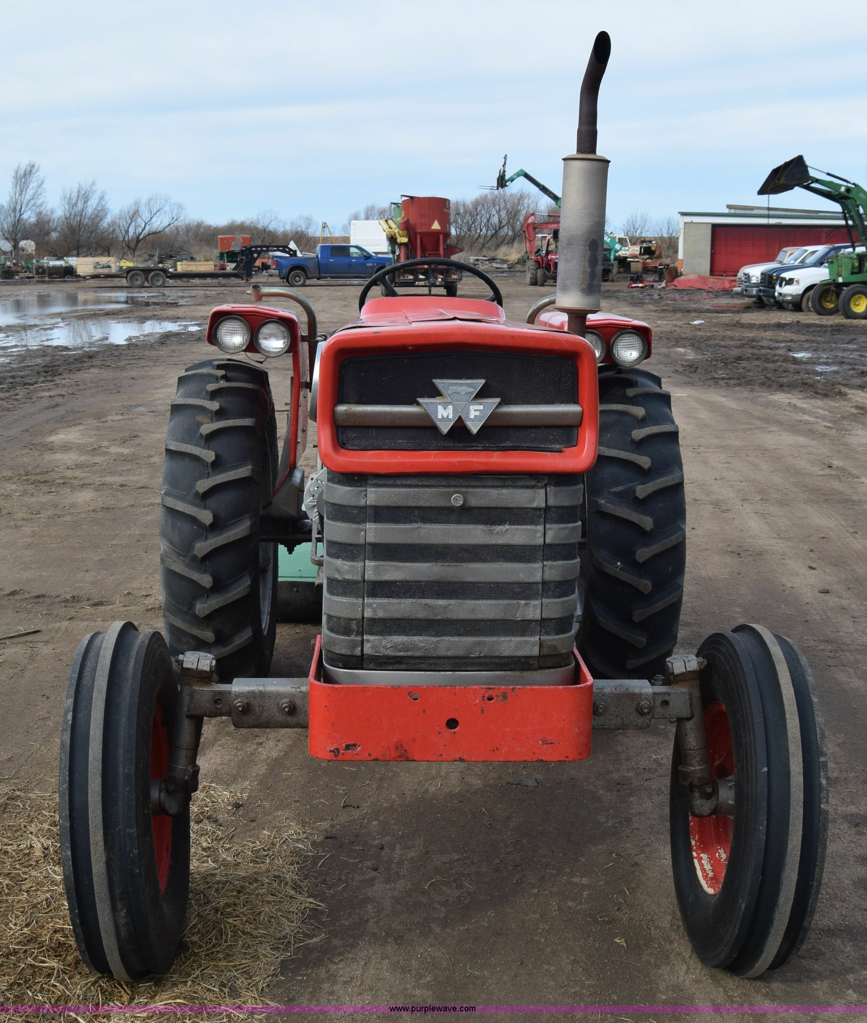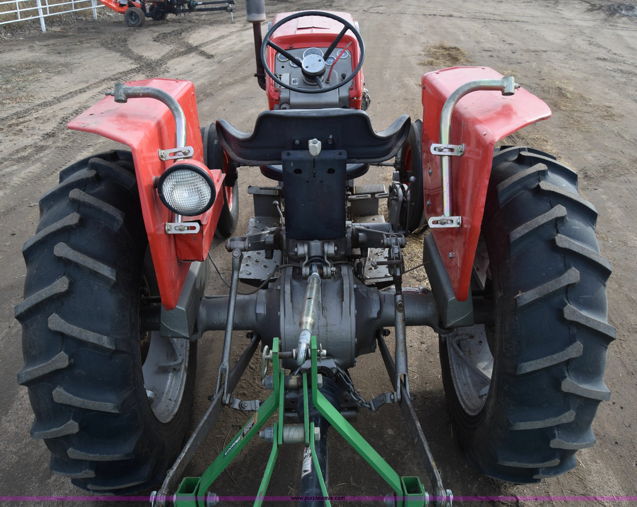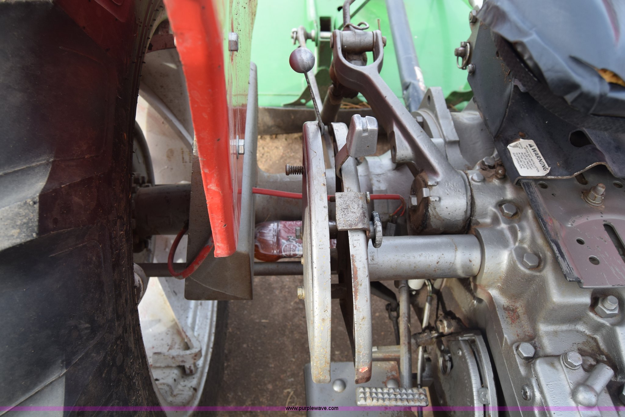 Purple Wave is selling a used Tractor in Kansas. This item is a Massey-Ferguson 150 tractor with the following: 9,292 hours on meter, Continental 2.4L four cylinder gas engine, 45 HP, Manual transmission, 8F-2R gears, Suspension seat, Work lights, Three point, 540 PTO, 18.5 gallon fuel tank, 81" wheelbase, 7.50-16 front tires, 12.4-28 rear tires, Rotary mower not included