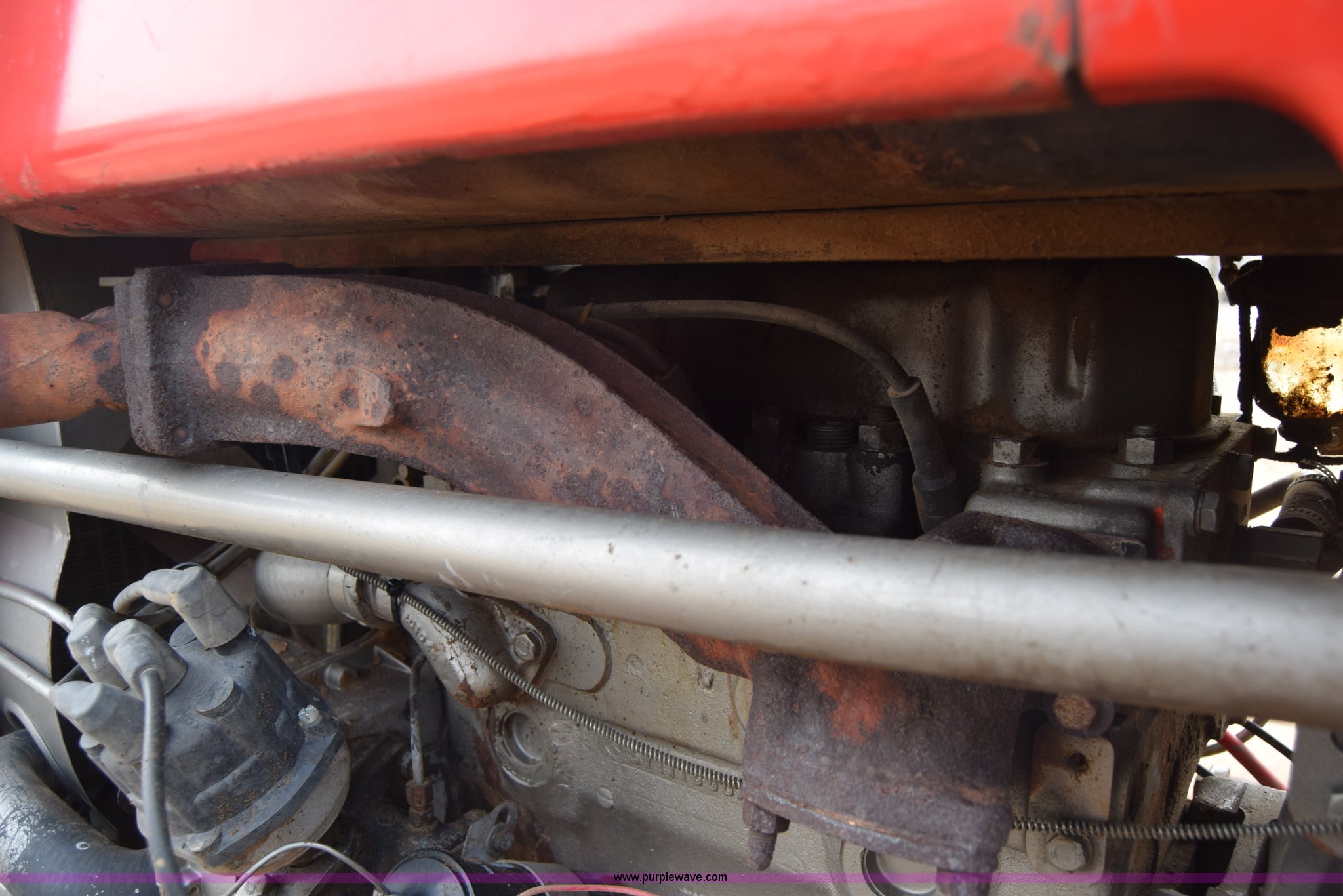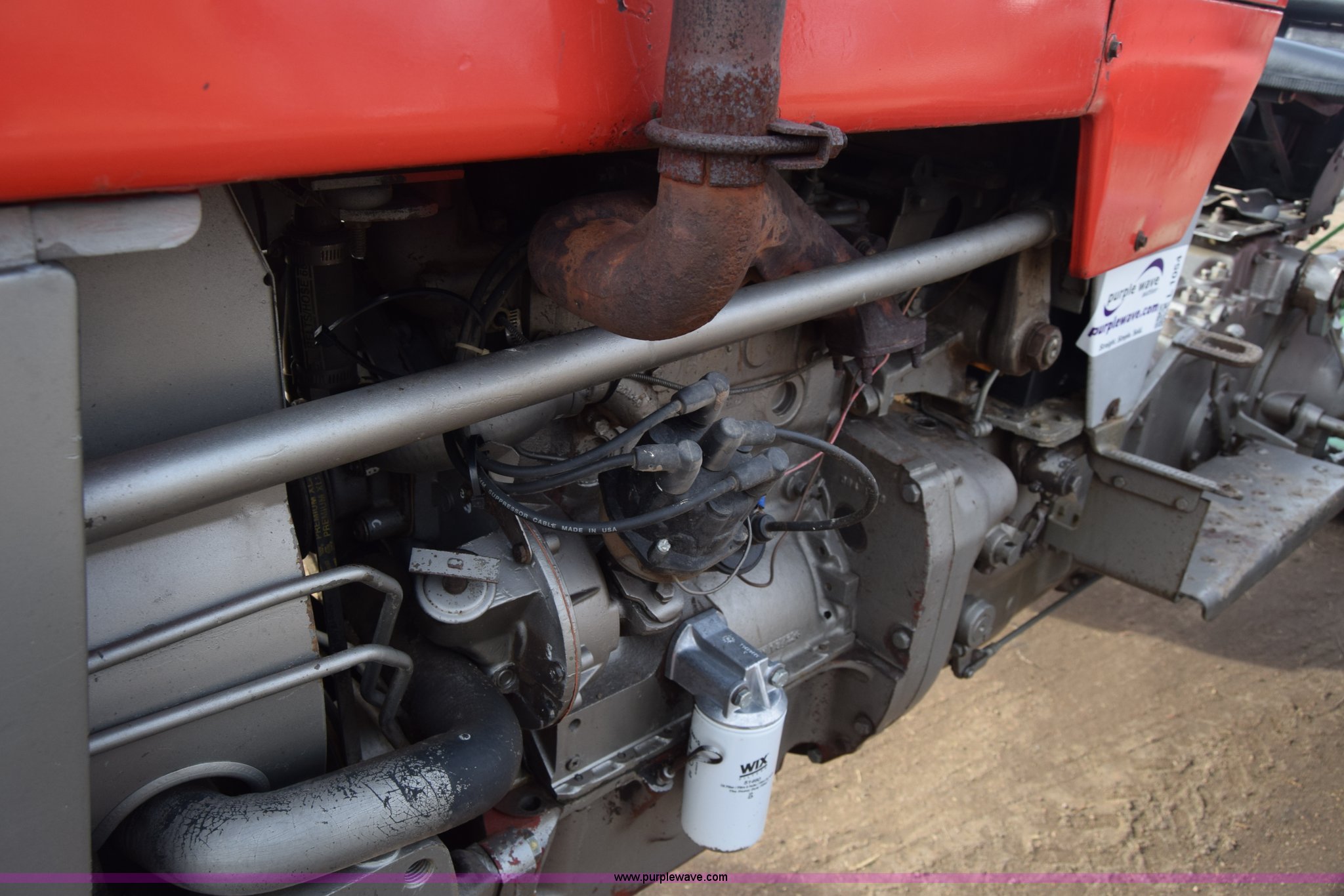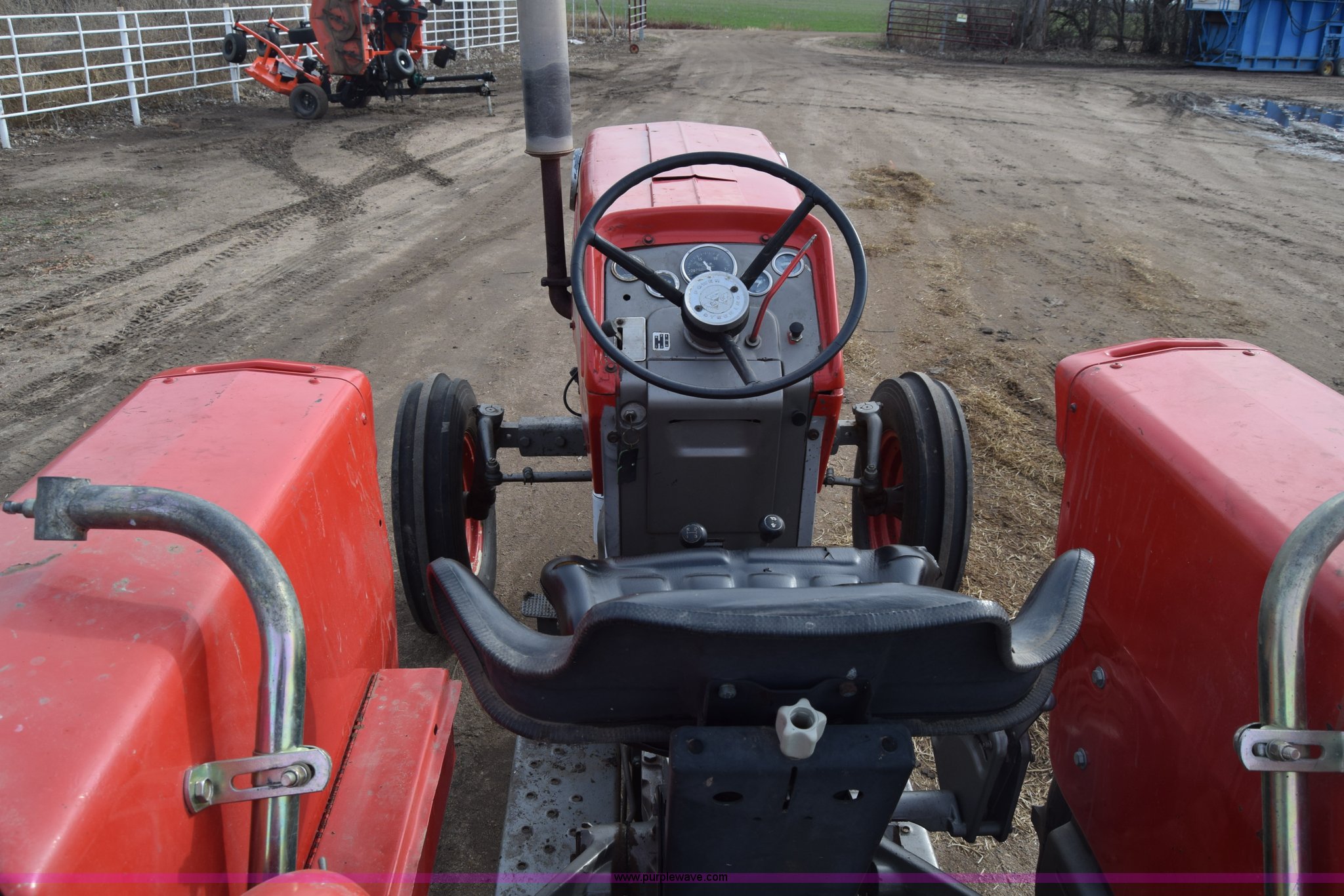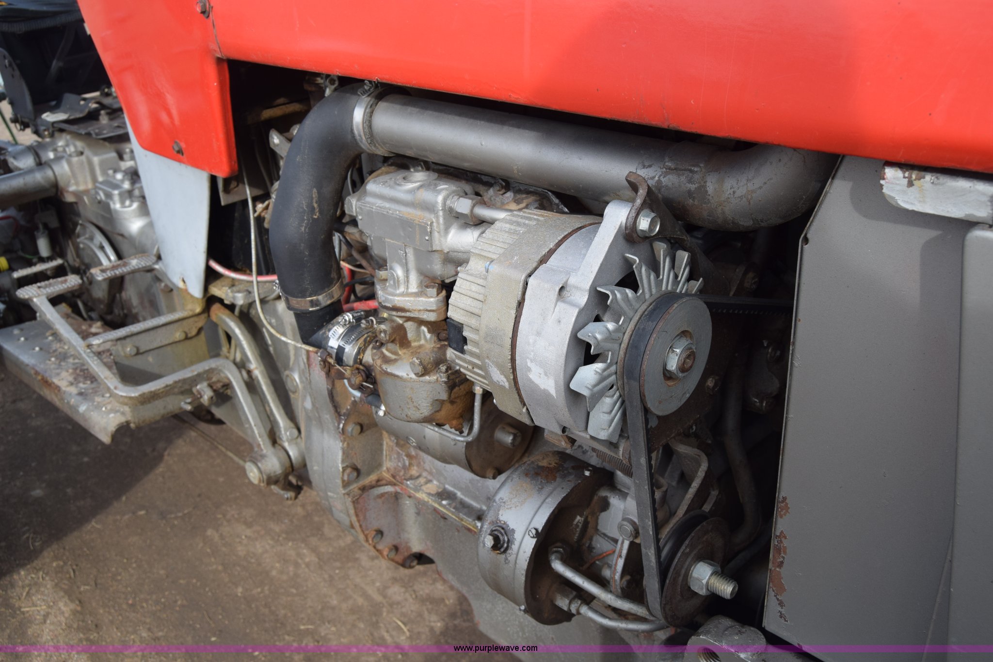 Purple Wave is selling a used Tractor in Kansas. This item is a Massey-Ferguson 150 tractor with the following: 9,292 hours on meter, Continental 2.4L four cylinder gas engine, 45 HP, Manual transmission, 8F-2R gears, Suspension seat, Work lights, Three point, 540 PTO, 18.5 gallon fuel tank, 81" wheelbase, 7.50-16 front tires, 12.4-28 rear tires, Rotary mower not included