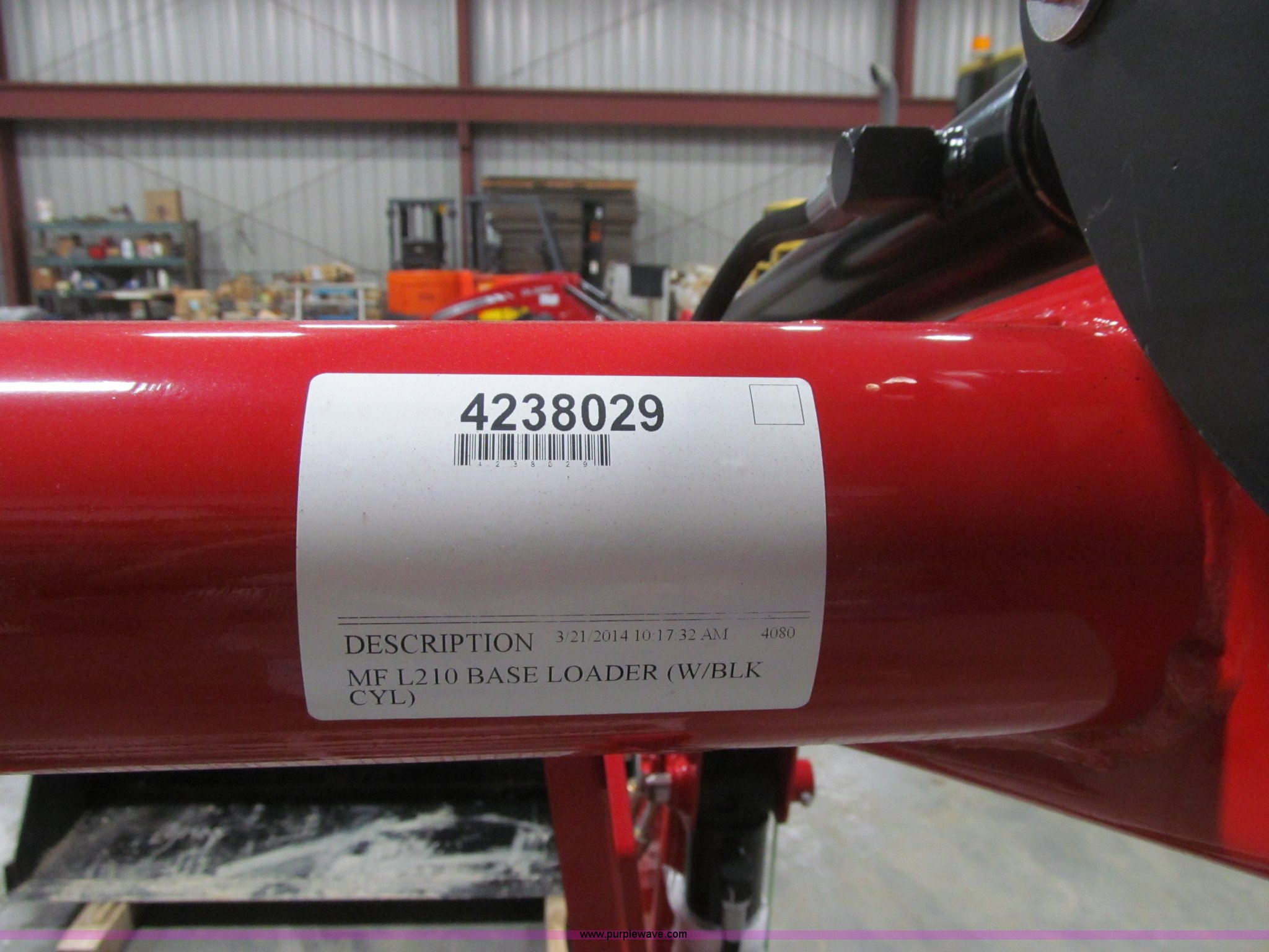 Purple Wave is selling a used Ag Tractor Loader or Attach. in Iowa. This item is a Massey-Ferguson L210 loader assembly with the following: Boom assembly, Part No. 4238029, Mounting assembly, Part No. 4238208B, Control valve and joystick, 60"W bucket, Weld-on cutting edge, Unused