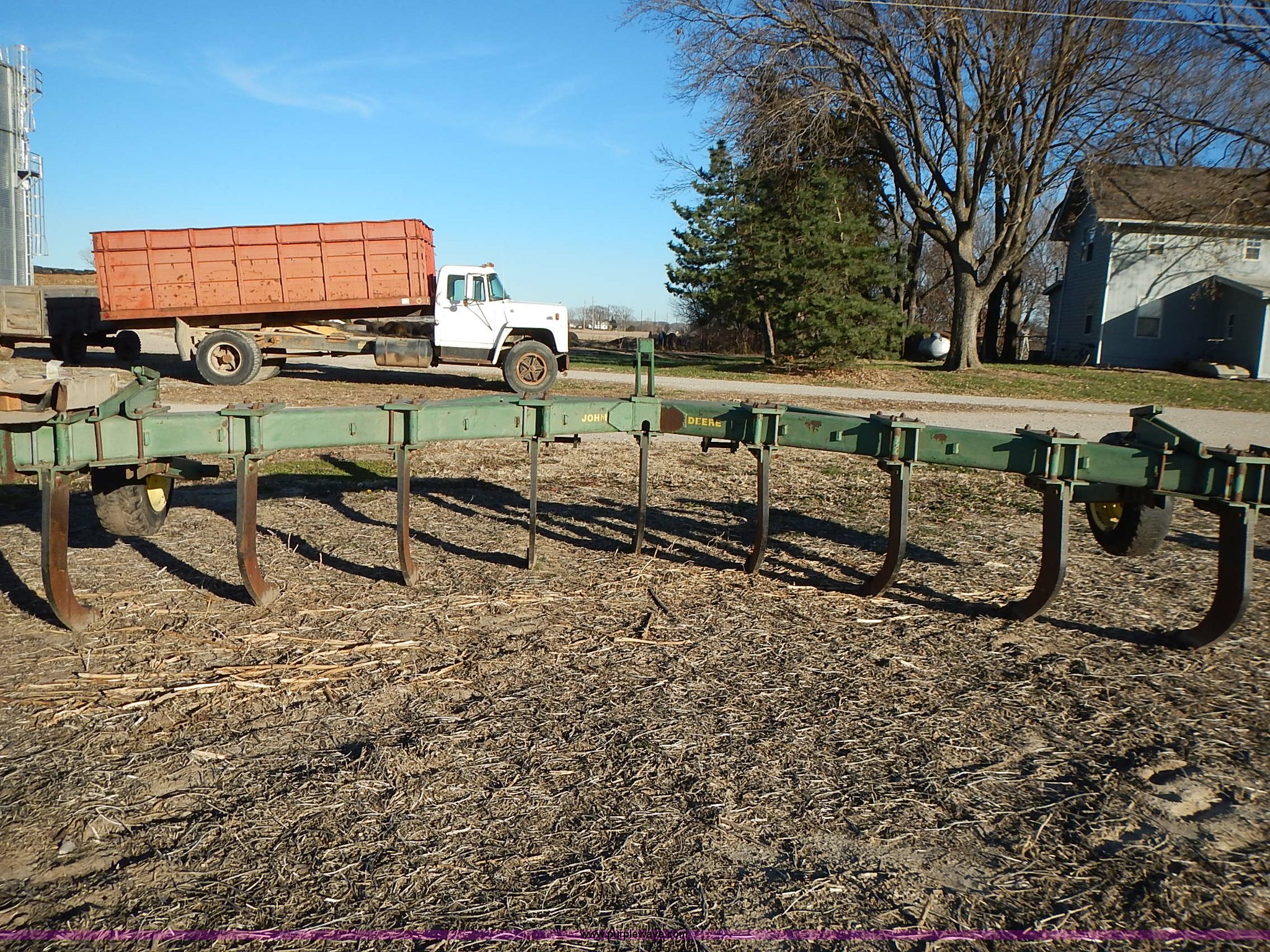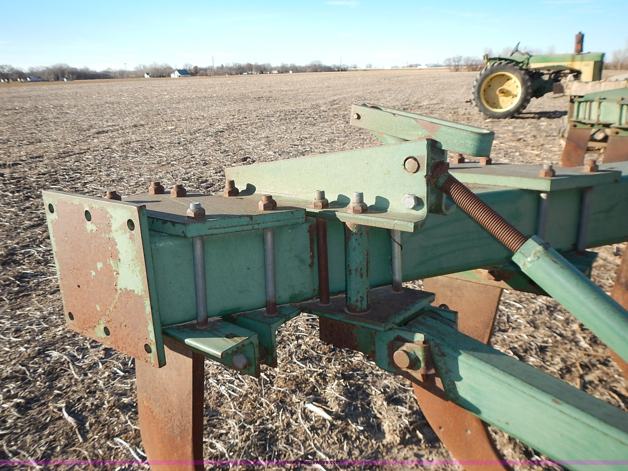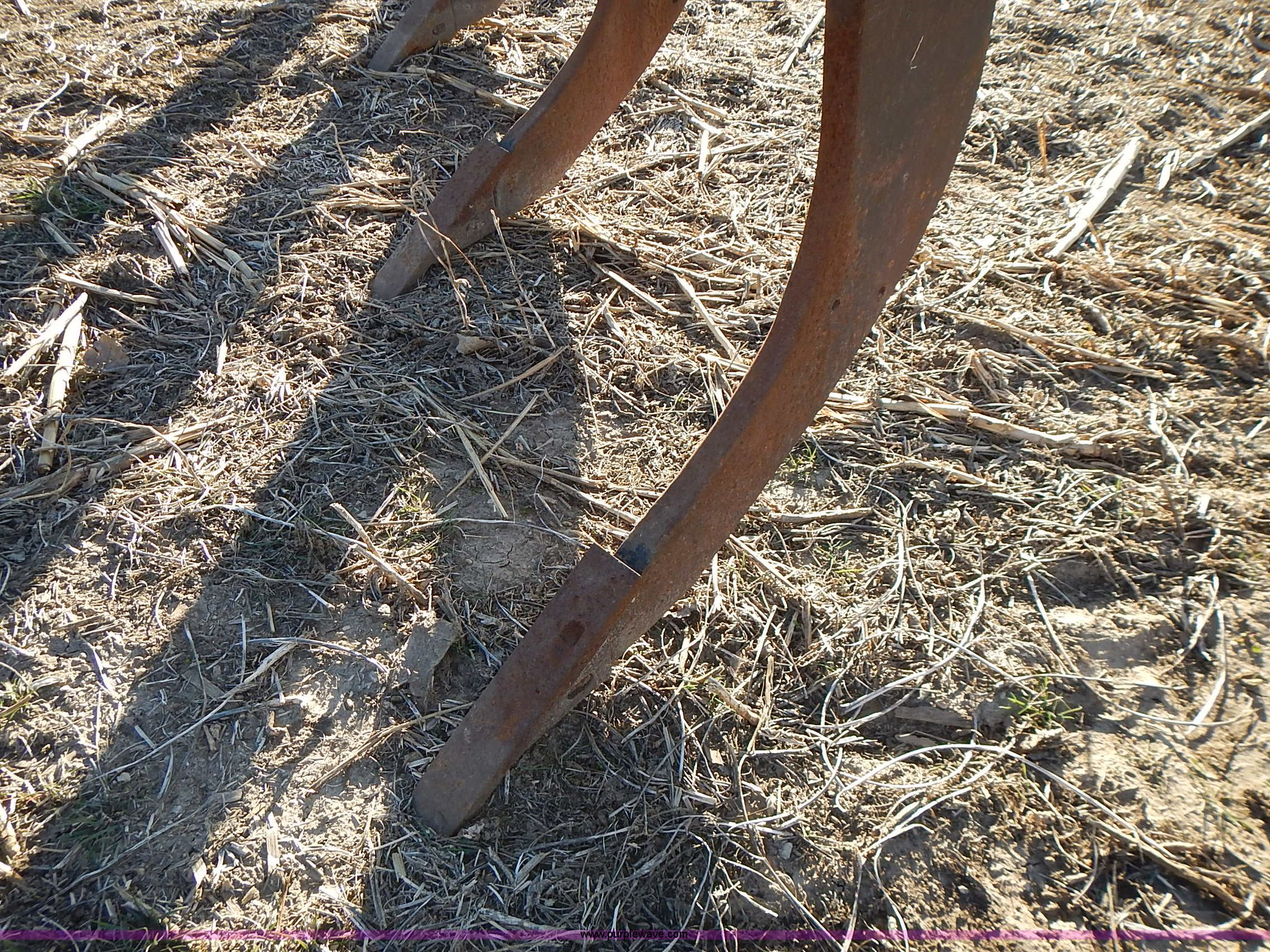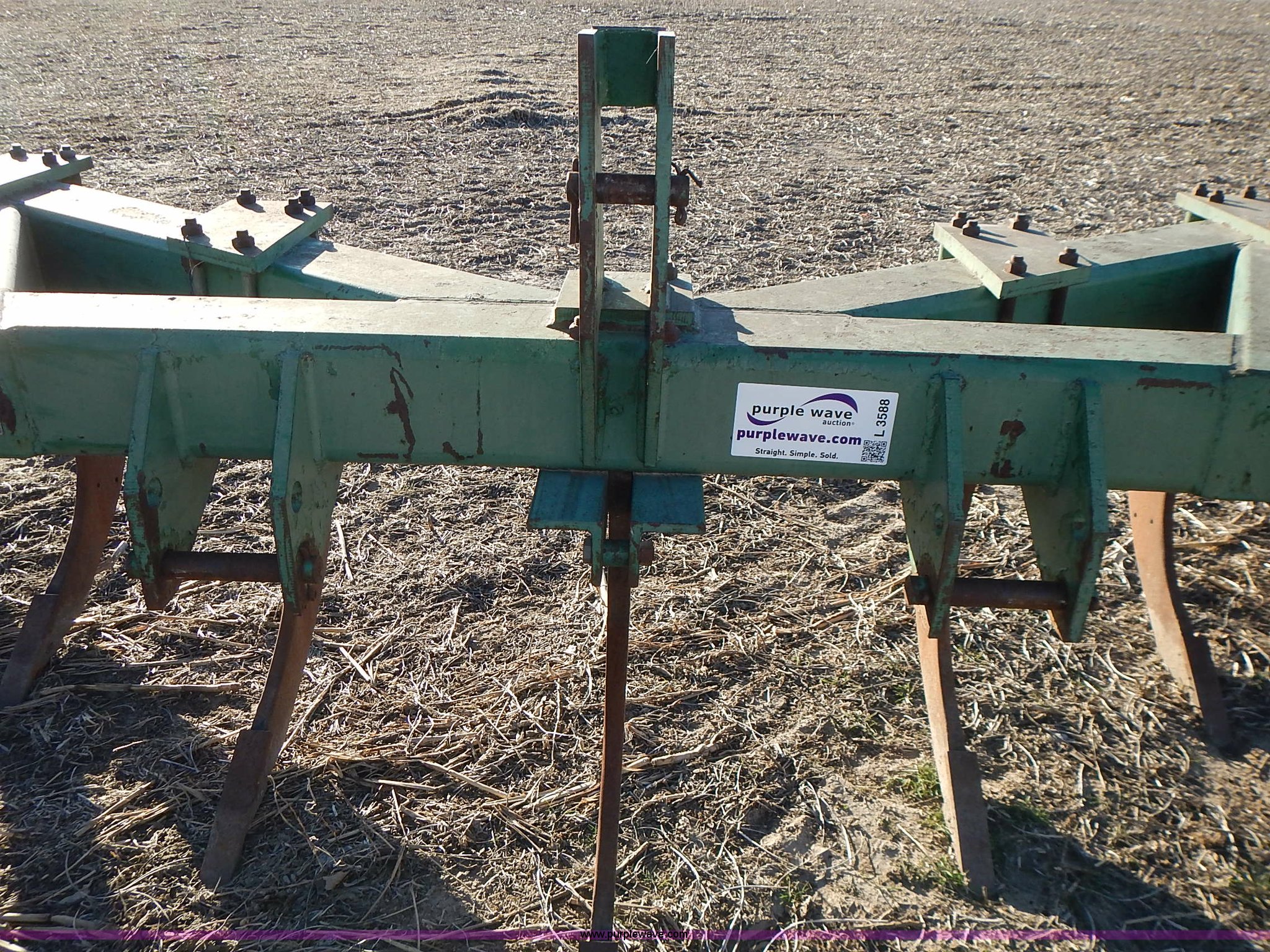 Purple Wave is selling a used Ripper in Kansas. This item is a John Deere 915 V ripper with the following: 17.5'W, (9) shanks, 24" spacing, Three point, Tires worn, Serial N00915X000424