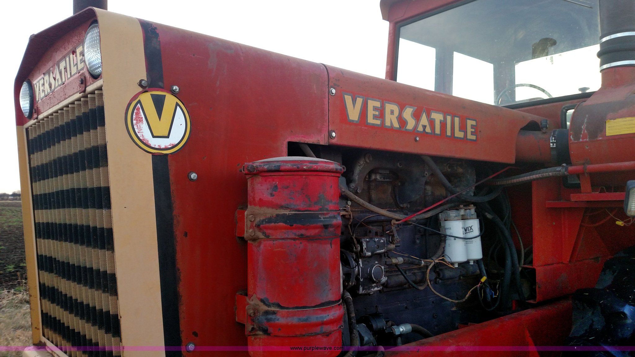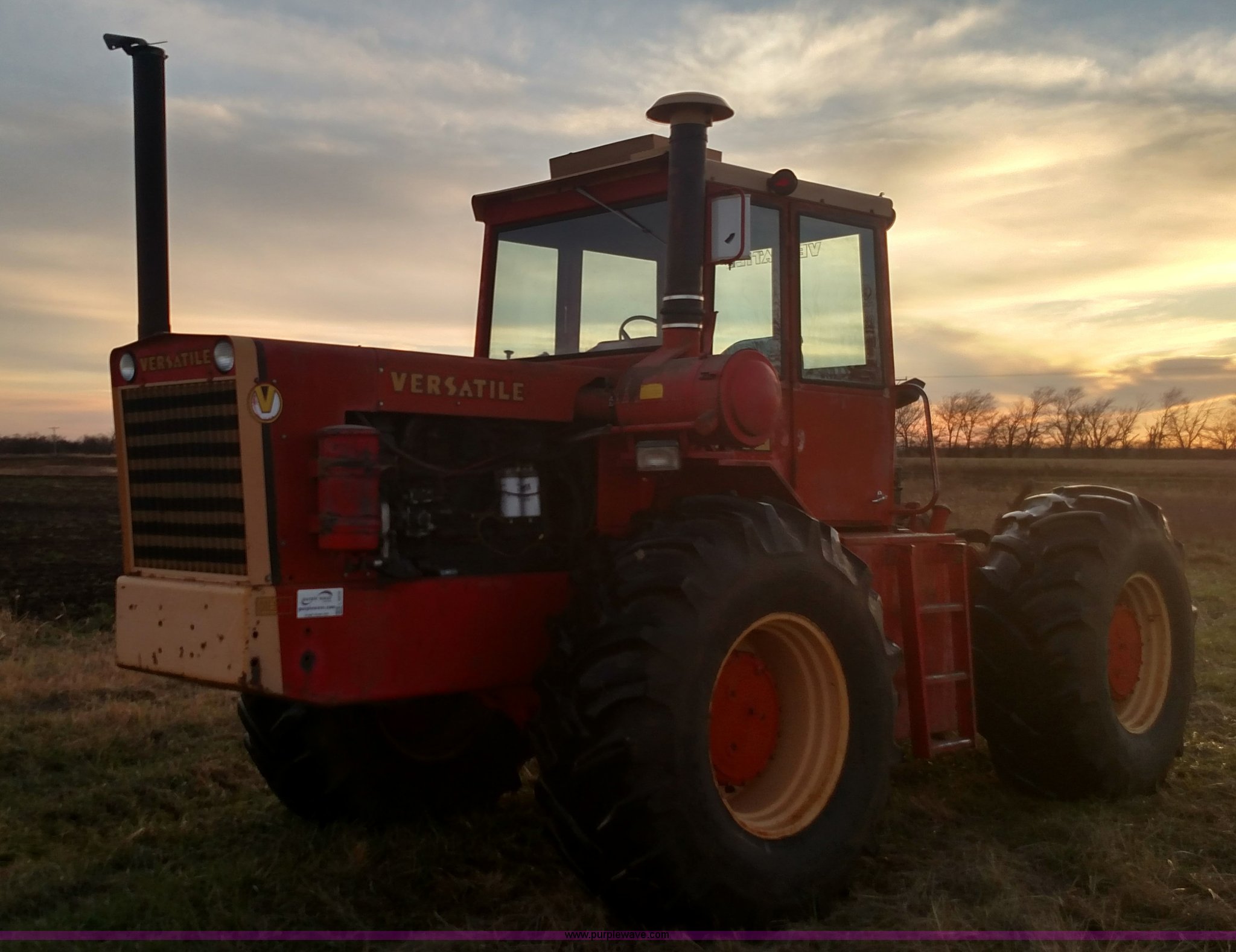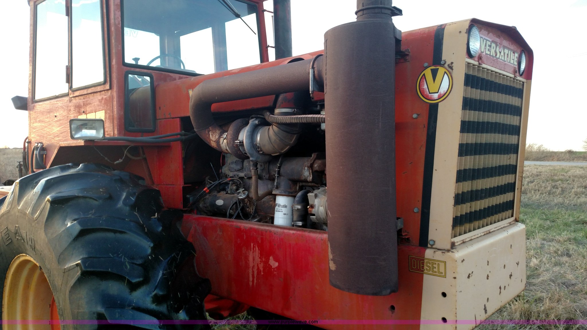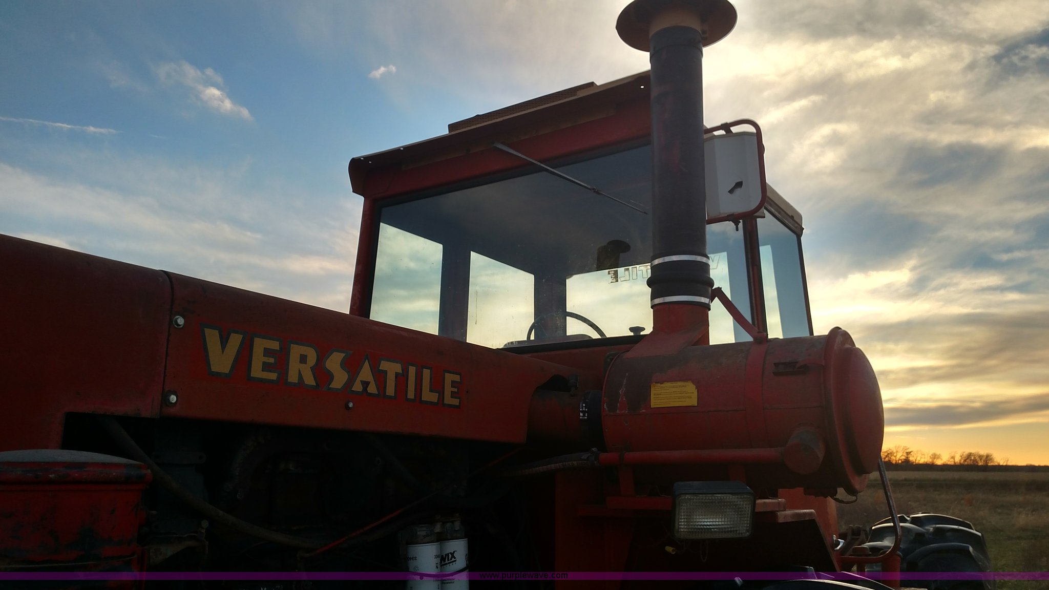 Purple Wave is selling a used Articulated 4-Wheel Drive Tractor in Kansas. This item is a 1975 Versatile 800 4WD tractor with the following: 5,357 hours on meter, Actual hours unknown, Cummins 855 turbo diesel engine, 12F-4R gears, AC and heat, Unknown operating condition of AC, Spring suspension seat, Three point, Top link, Draw bar, (3) rear hydraulic remotes, 24.5-32 tires, Serial 8003031003