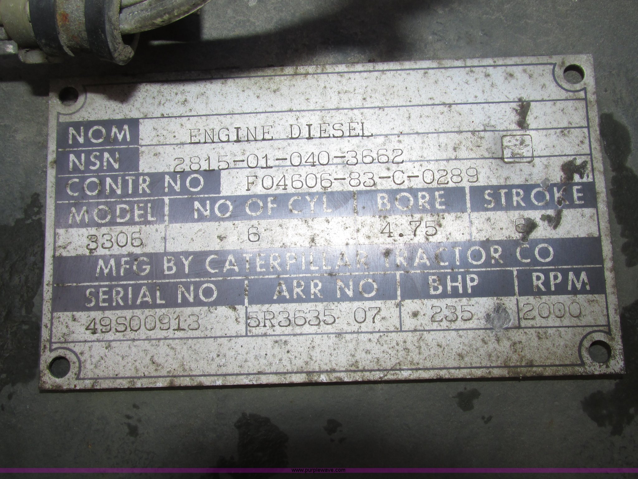 Purple Wave is selling a used Engine in Nebraska. This item is a 1984 Caterpillar 3306 turbo diesel engine with the following: 3 hours on meter, Six cylinder, 4.75 x 6 bore and stroke, Unit will be removed from a generator prior to auction, Serial 49S00913