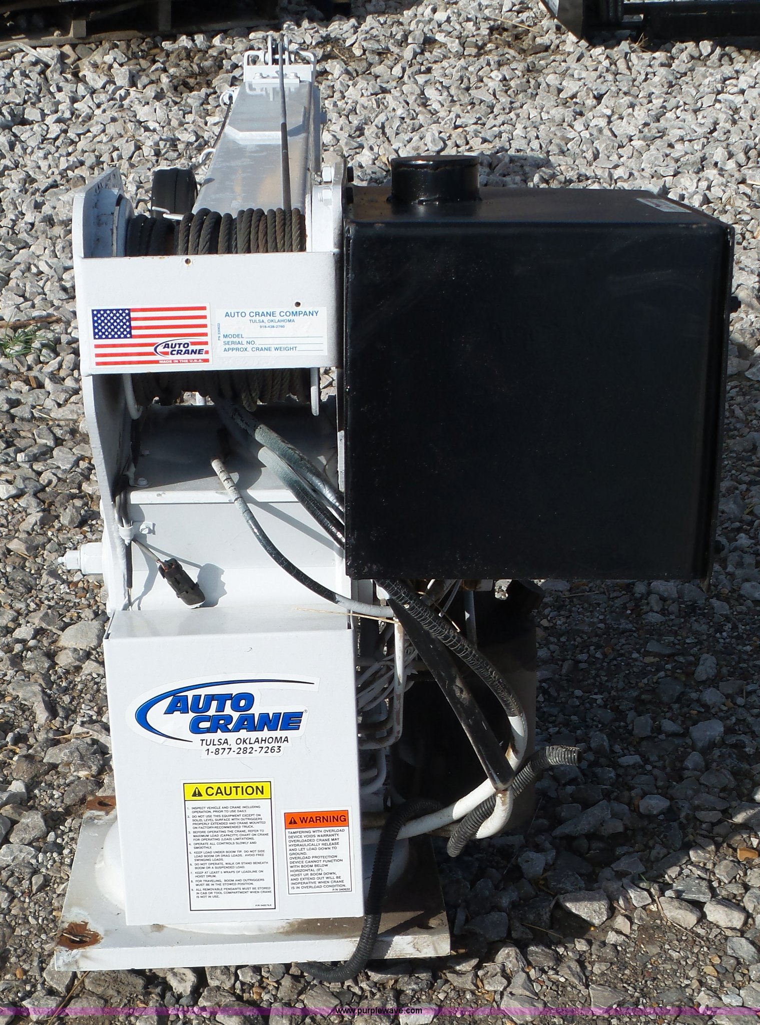 Purple Wave is selling a used Truck Part and Attach. in Kansas. This item is a Auto Crane 4004 EH crane with the following: 4,000 lbs maximum lift capacity, 16' maximum reach, Remote