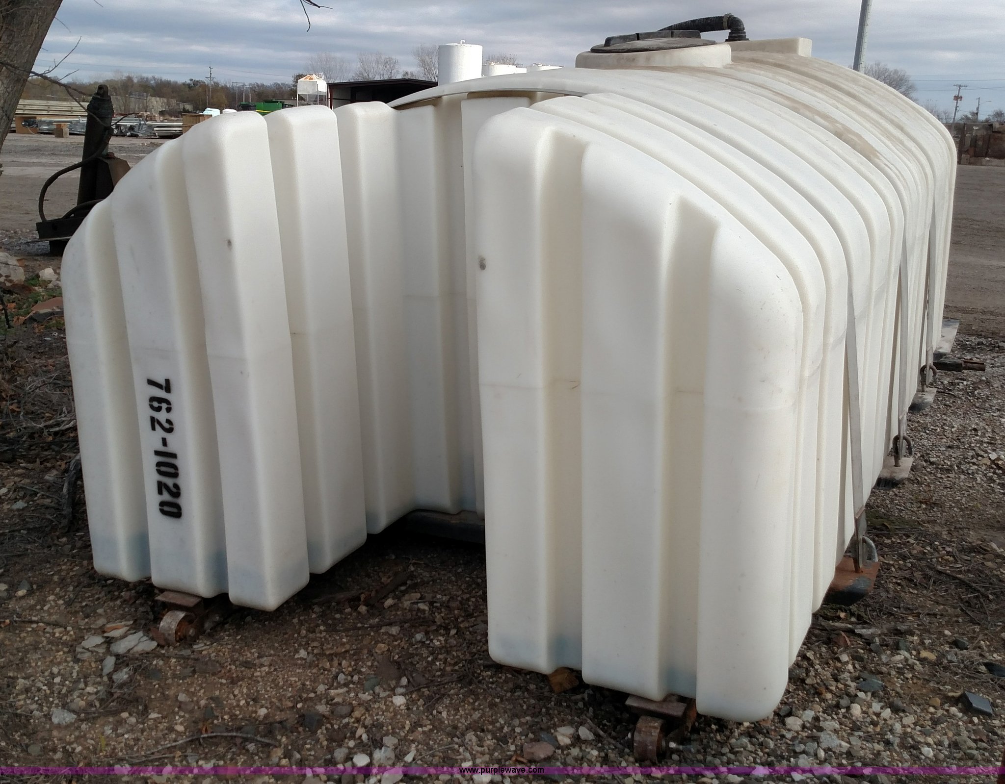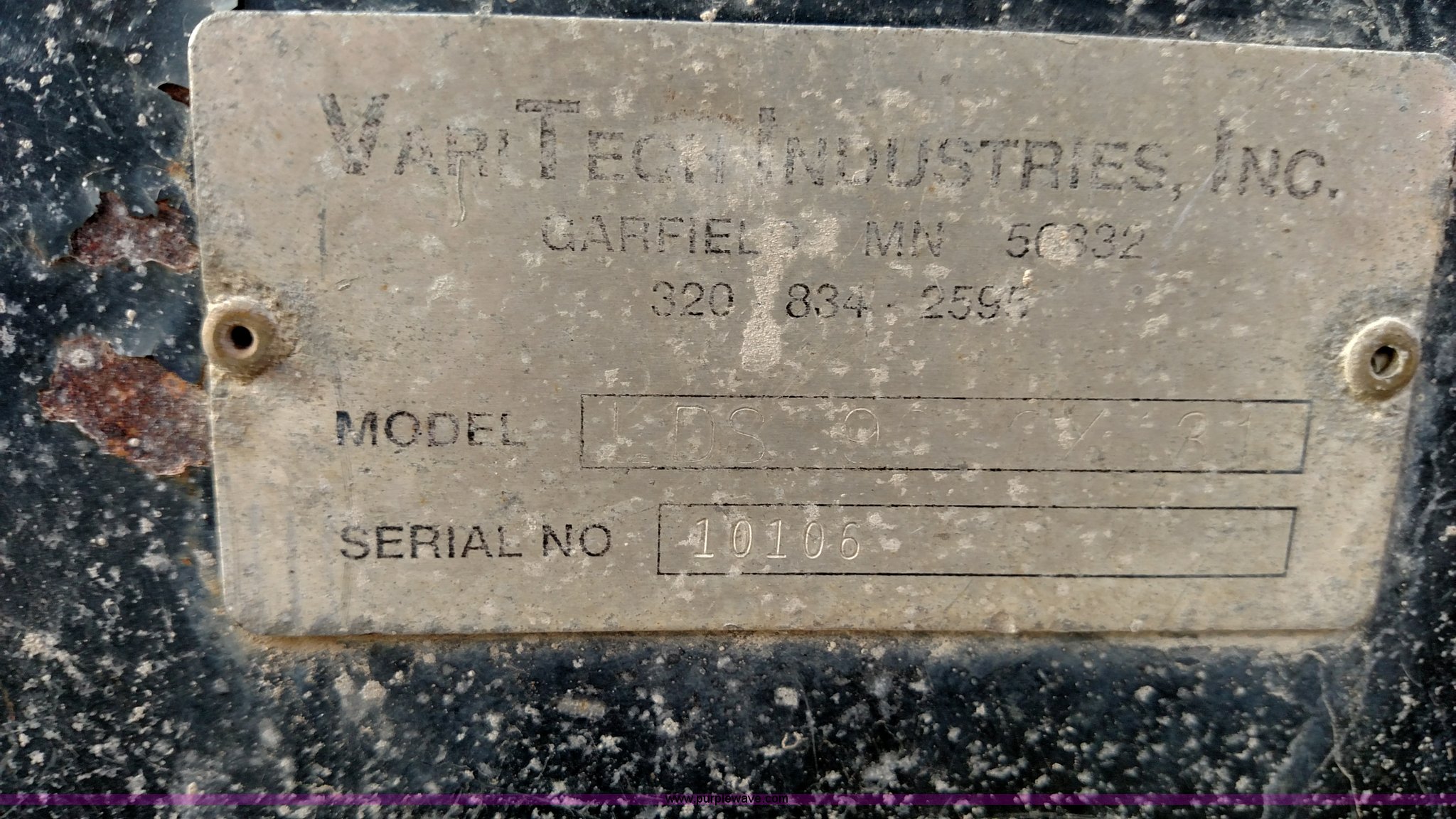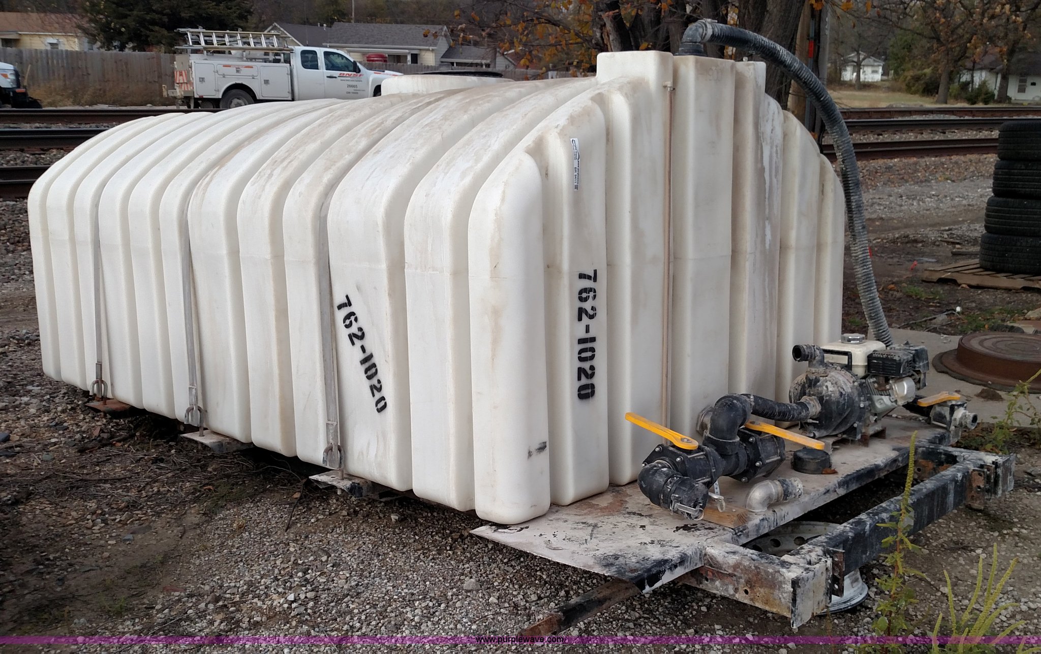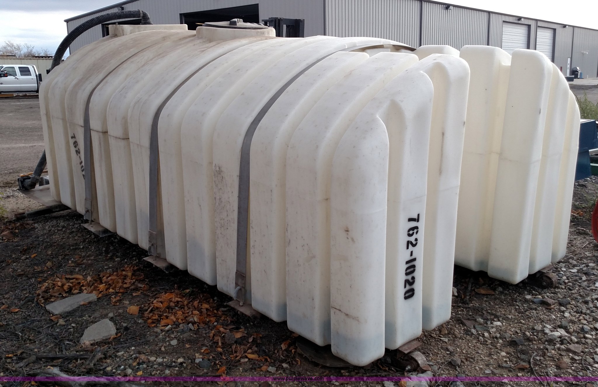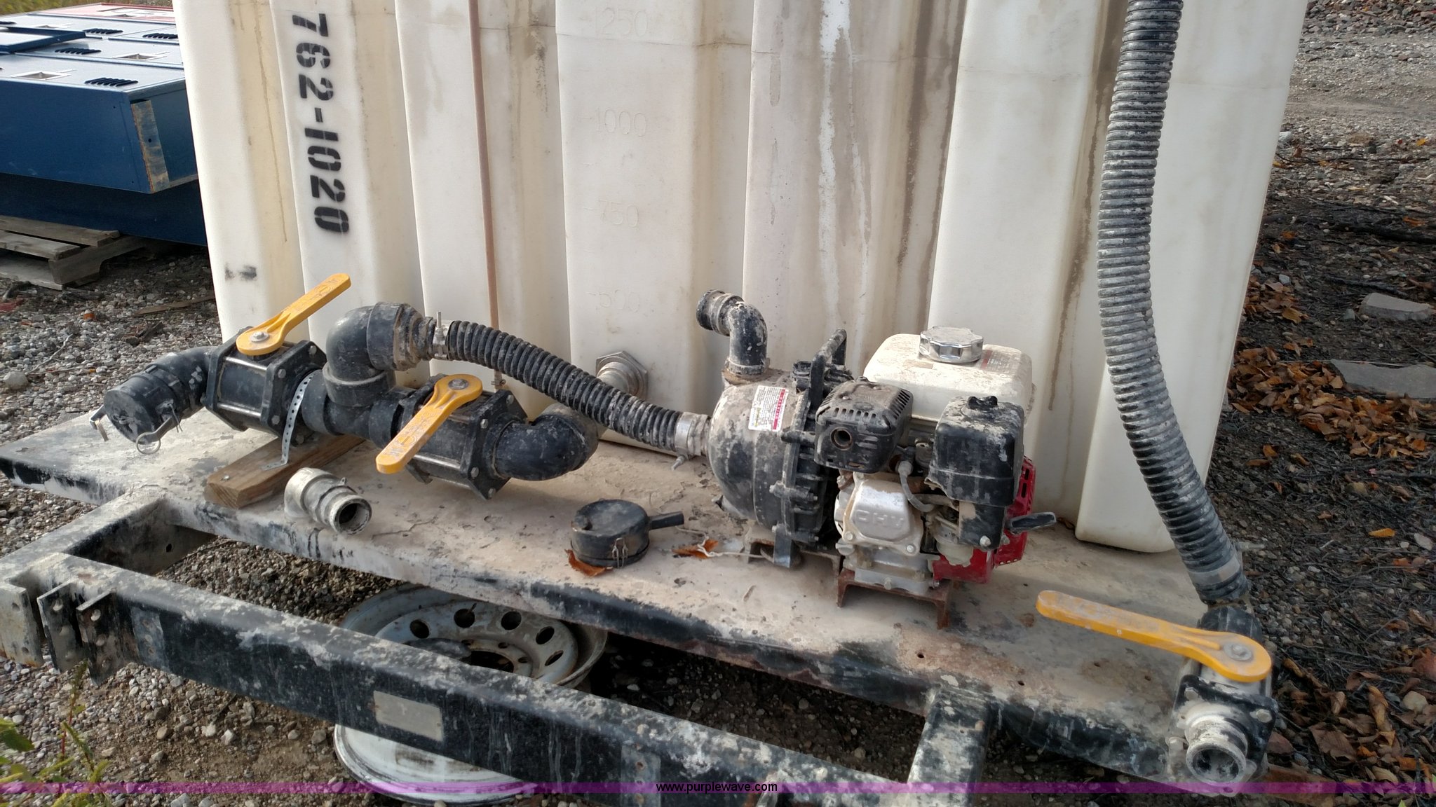 Purple Wave is selling a used Tanks in Kansas. This item is a Varitech Industries DS-9 skid mounted tank with the following: Honda GX160 gas engine, 2" pump, 2" and 4" plumbing, 1,900 gallon capacity, 12.5'L x 80"W, Serial 10106