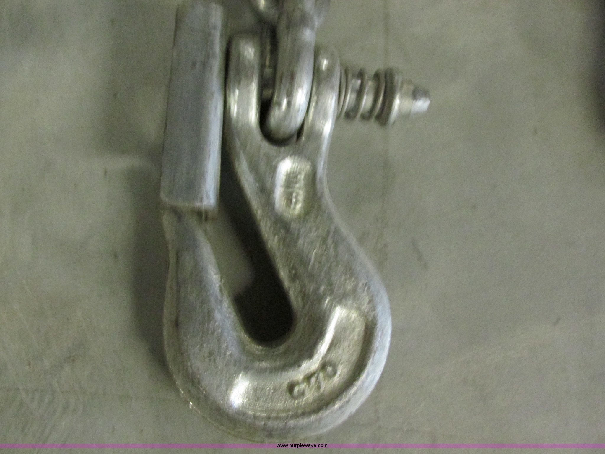Purple Wave is selling a used Tools in Missouri. This item is a (4) safety chains with the following: 5'L x 3/8", Safety hooks, Loops