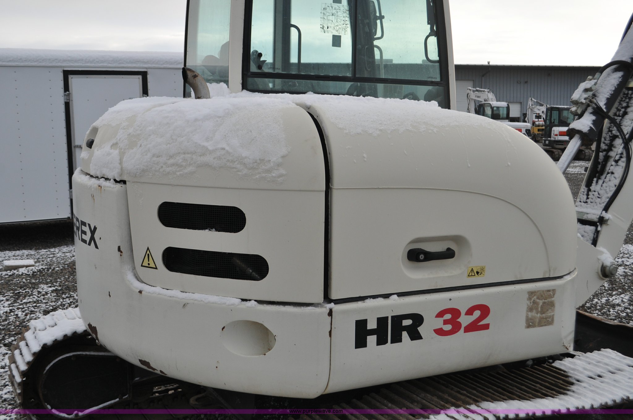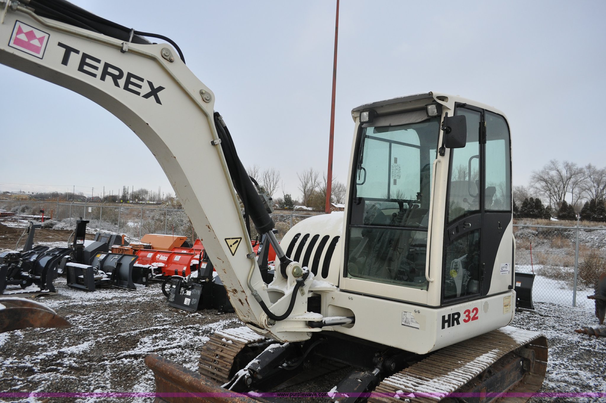 Purple Wave is selling a used Mini Excavator in Colorado. This item is a 2006 Terex HR32 compact excavator with the following: 1,619 hours on meter, Deutz 3.2L diesel engine, 72 HP, Serial 47415C013, Hydrostatic transmission, EROPS, Suspension seat, Wipers, Front and rear work lights, Knuckle boom, 6.5' stick length, 24"W bucket, (4) bolt-on teeth, Hydraulic thumb, One way auxiliary hydraulics, 92"W backfill blade, 18"W steel triple gourser track pads, Serial 3302644, Unit# 1095568