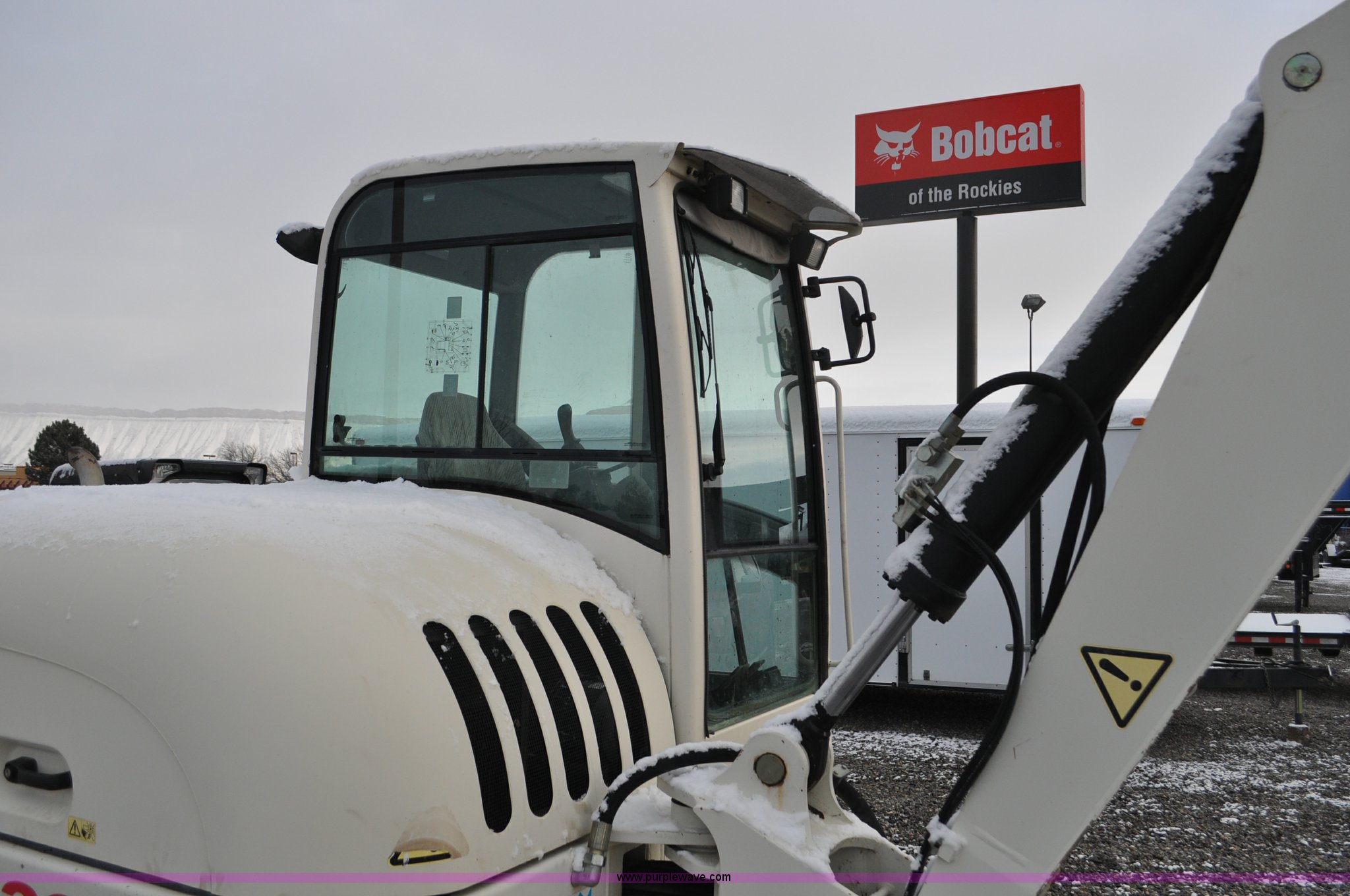 2006 Terex HR32 compact excavator. 1,619 hours on meter, Deutz 3.2L diesel engine 72 HP, Serial 47415C013, Hydrostatic transmission, EROPS, Suspension seat, Wipers, Front and rear work lights, Knuckle boom, 6.5' stick length, 24"W bucket (4) bolt-on teeth, Hydraulic thumb, One way auxiliary hydraulics, 92"W backfill blade, 18"W steel triple gourser track pads, Serial 3302644, Unit# 1095568. View equipment video. Bobcat of the Rockies. 3184 Hall Avenue. Grand Junction, CO 81504