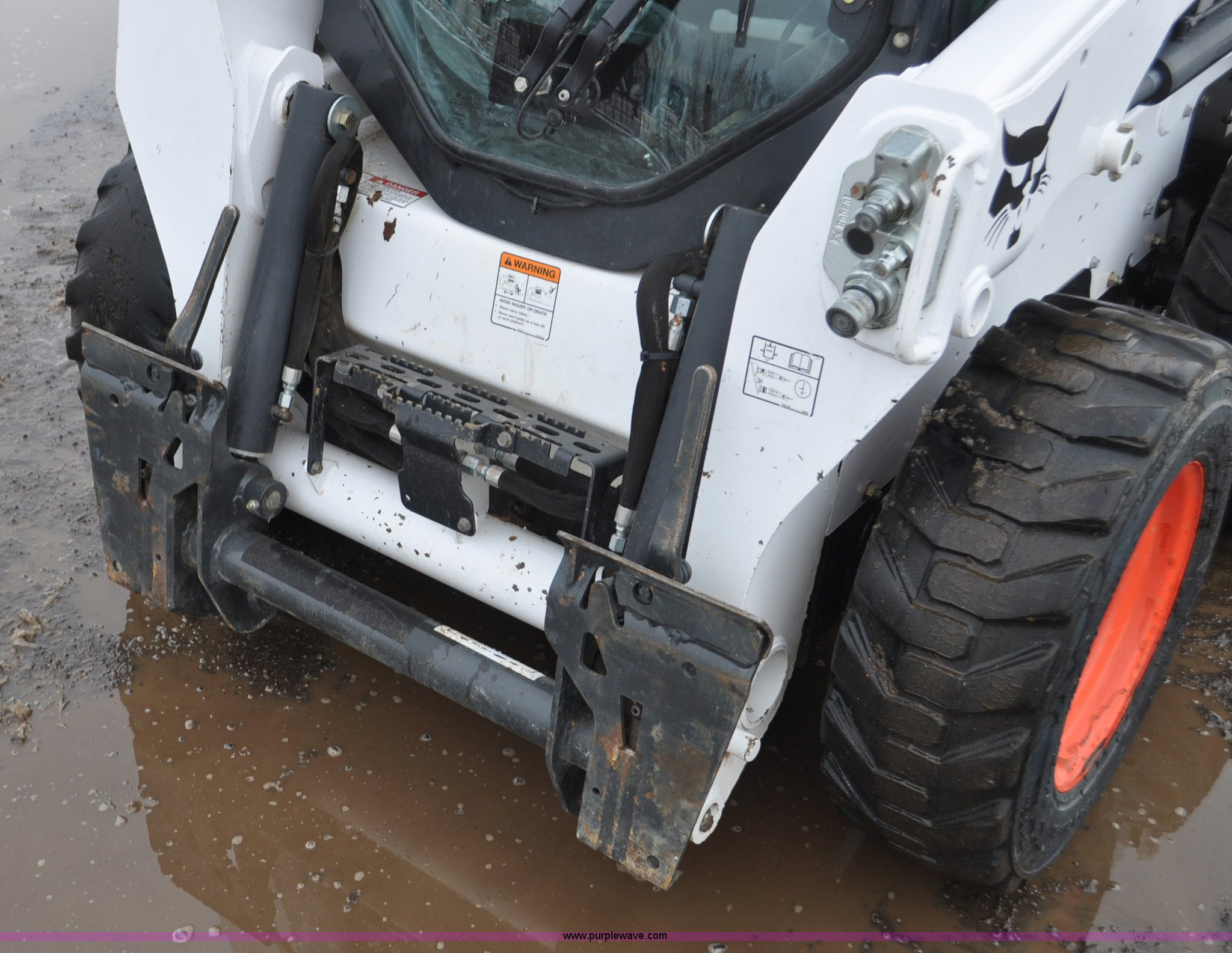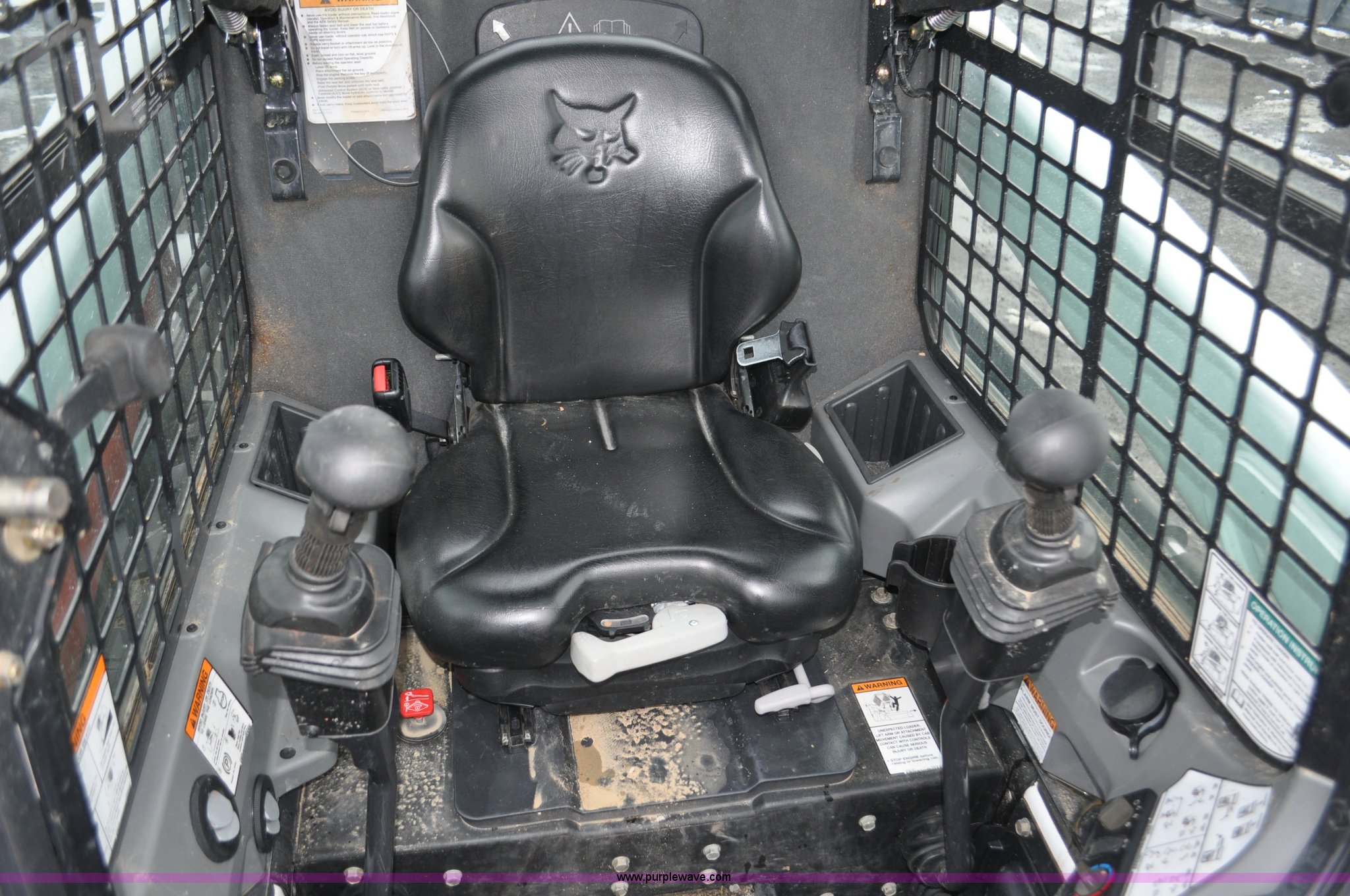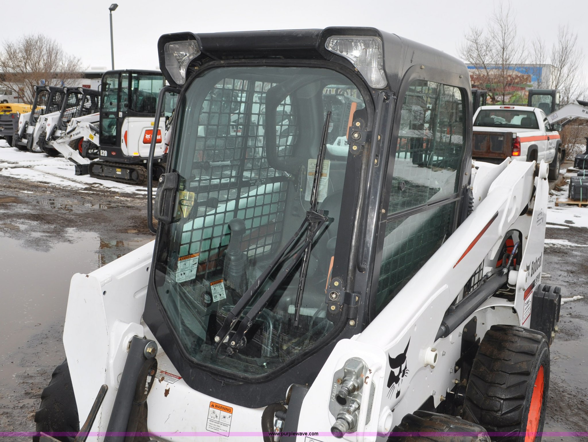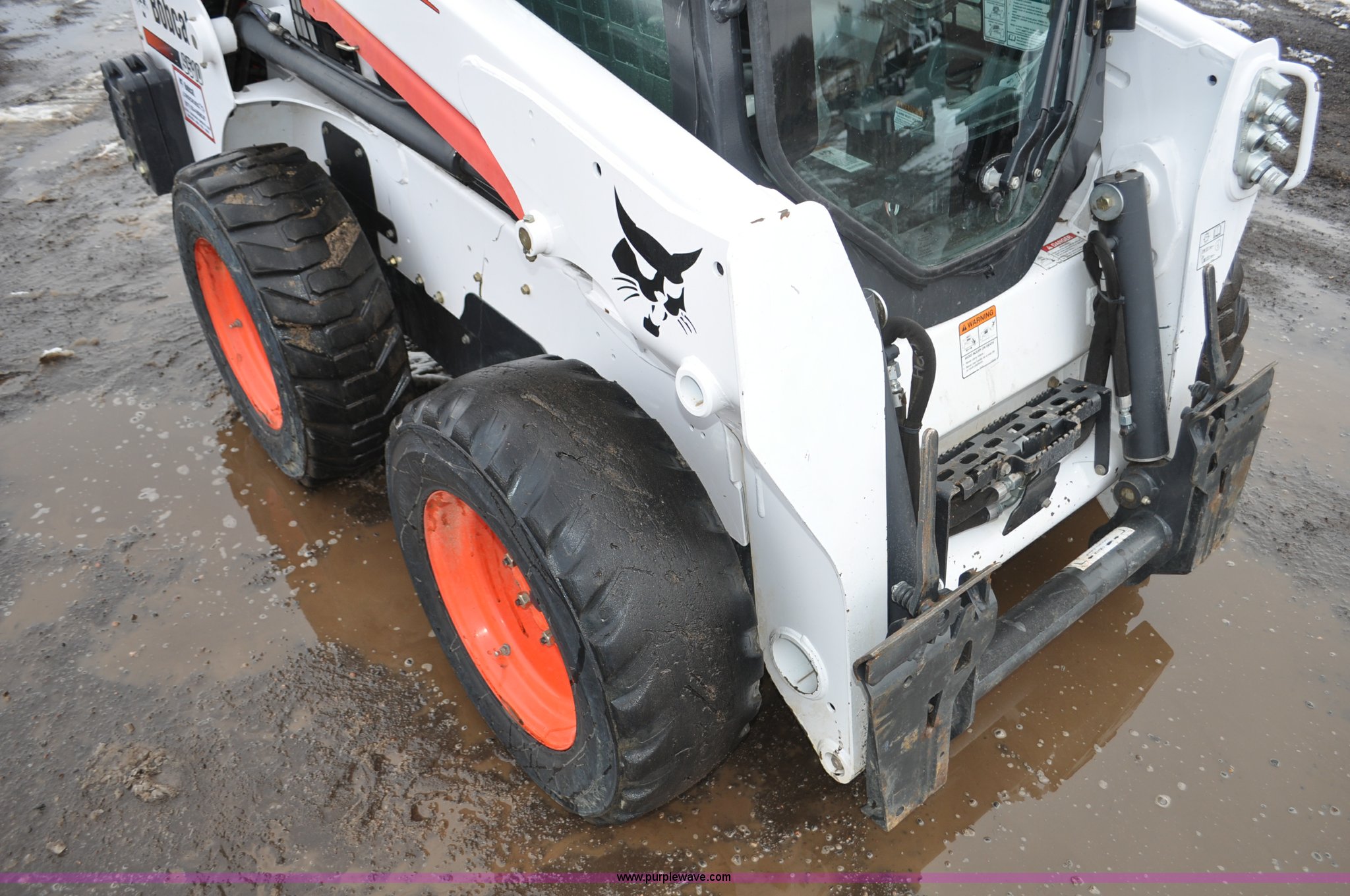 Purple Wave is selling a used Skid Steer Loader in Colorado. This item is a 2013 Bobcat S510 skid steer with the following: 558 hours on meter, Kubota 2.4L four cylinder turbo diesel engine, Hydrostatic transmission, Enclosed cab, Heat, Hand and foot controls, Spring suspension seat, Wipers, Front and rear work lights, Manual quick coupler, Auxiliary hydraulics, Counter weights, Bobcat 10-16.5 tires, Serial A3NJ11553, Unit# 1072457