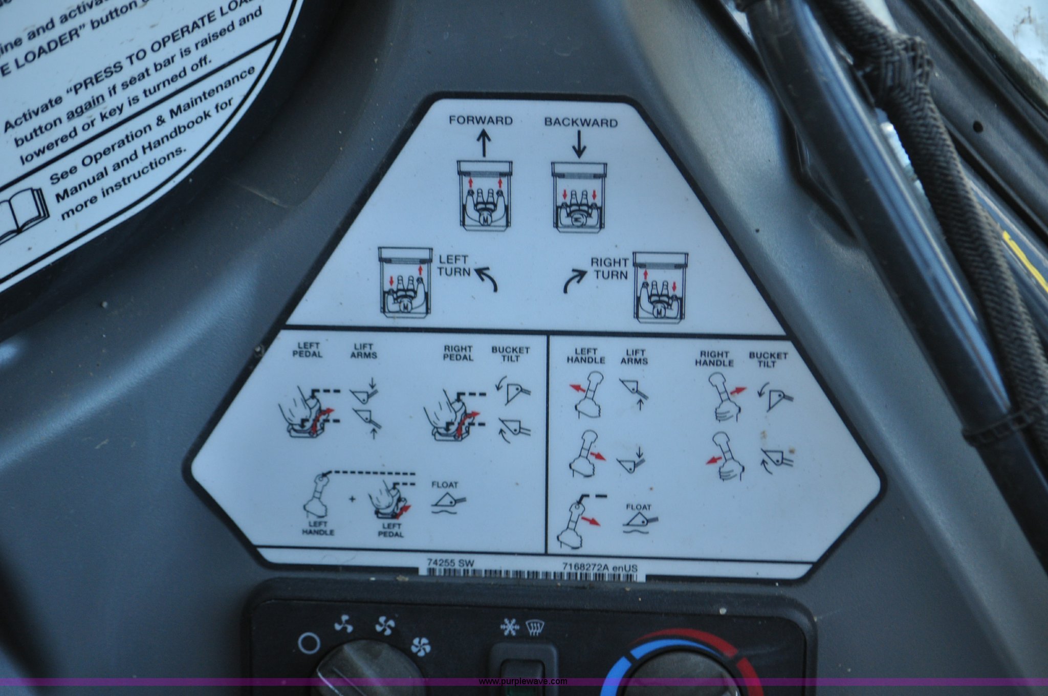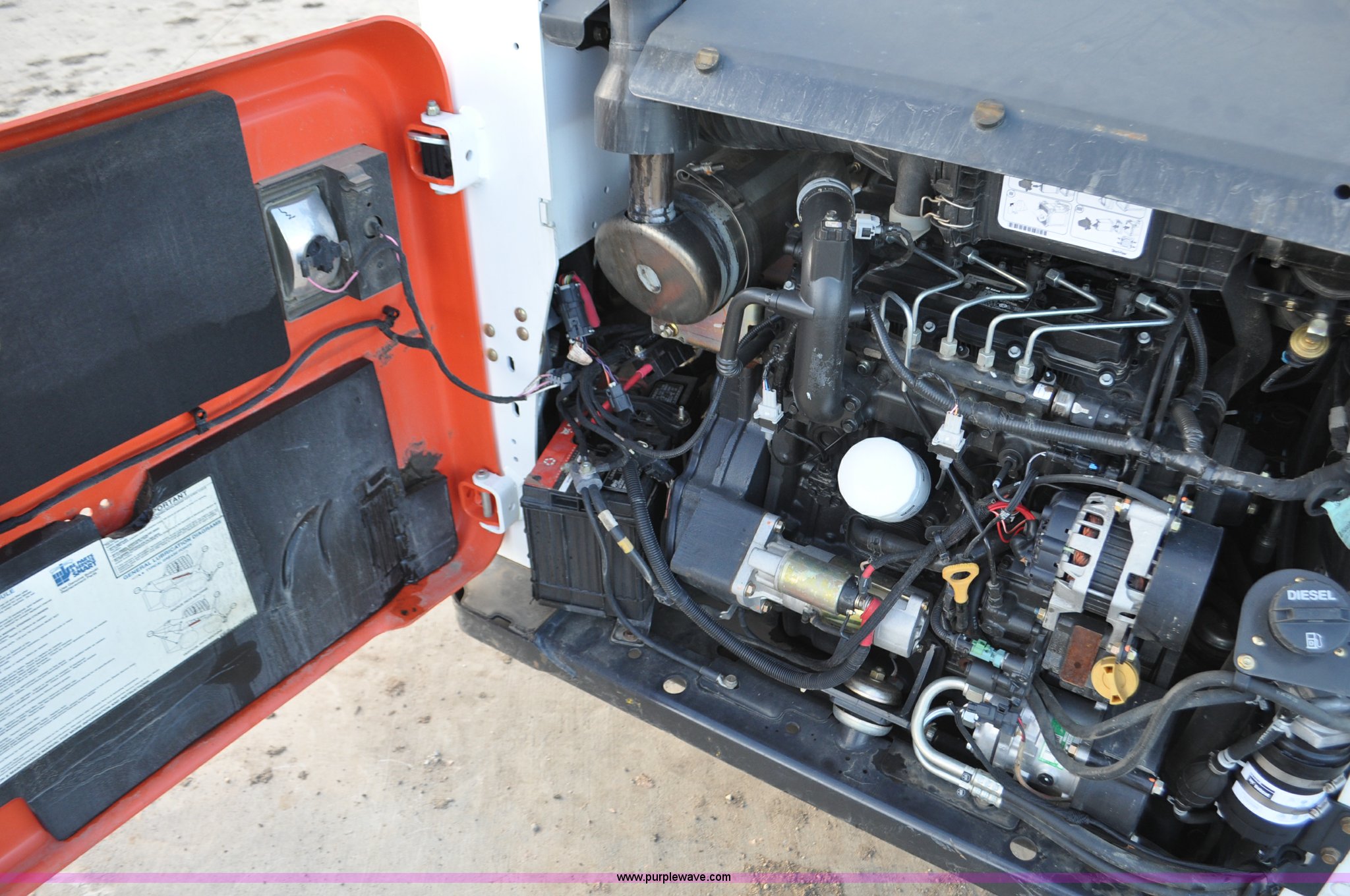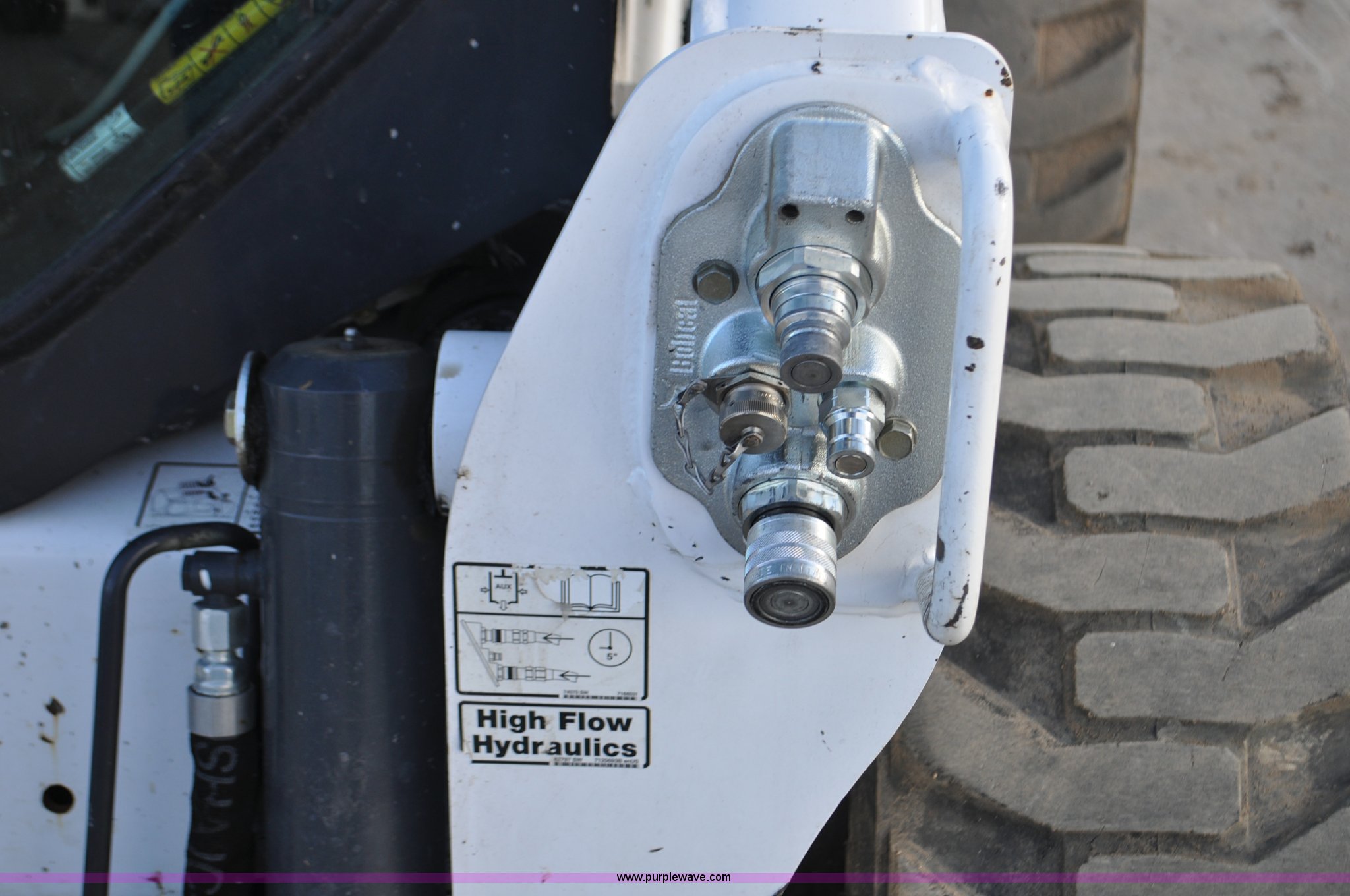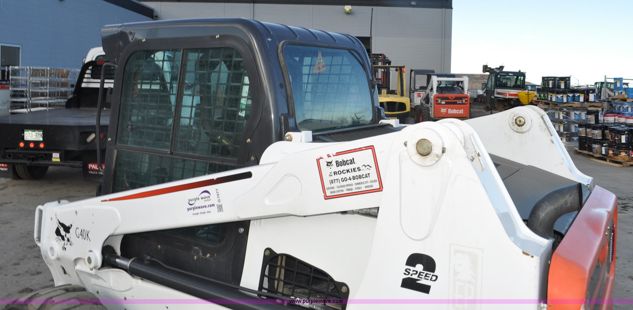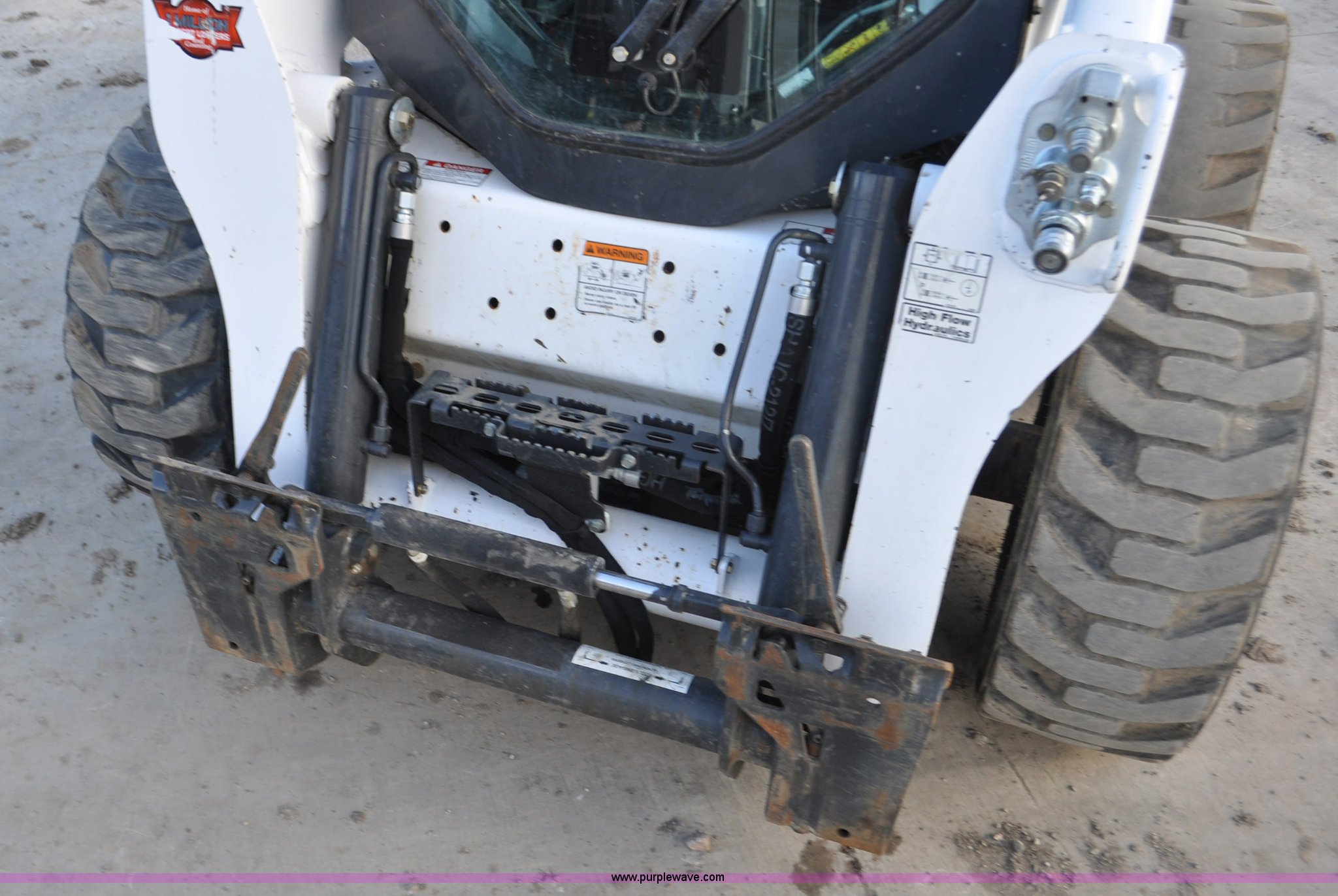 Purple Wave is selling a used Skid Steer Loader in Colorado. This item is a 2014 Bobcat S630 skid steer with the following: 436 hours on meter, Bobcat D24NAP four cylinder turbo diesel engine, Two speed hydrostatic transmission, Enclosed cab, Heat, AM/FM, Hand and foot controls, Spring suspension seat, Wipers, Front and rear work lights, Power Bobtach coupler, High Flow auxiliary hydraulics, Auxiliary electrical outlet, Bobcat 12-16.5 tires, Serial AHGL11127