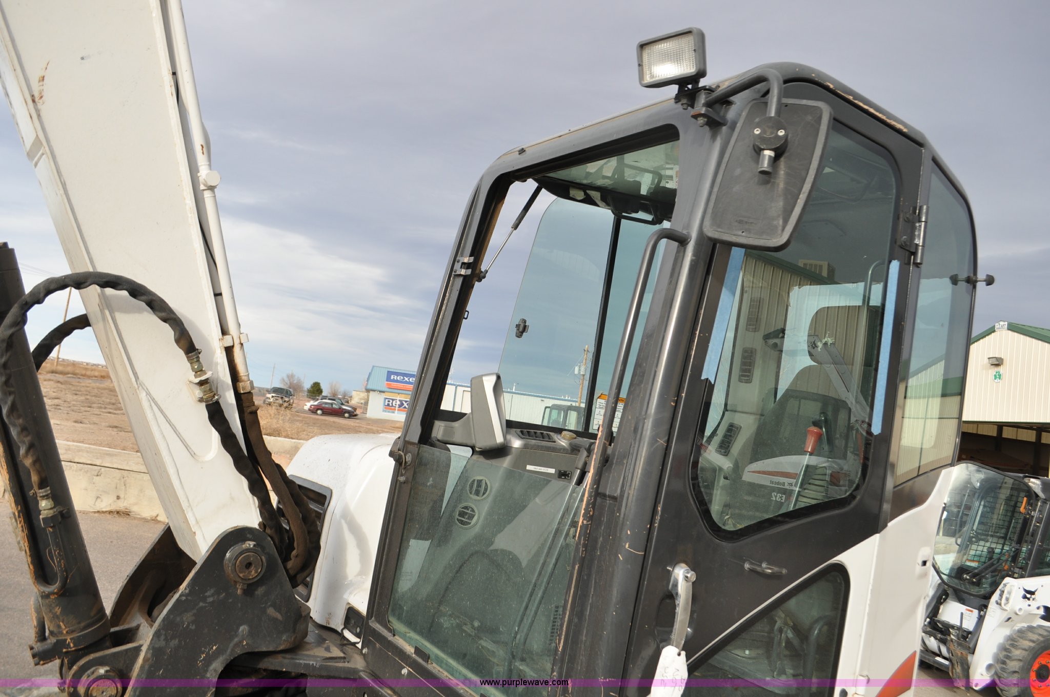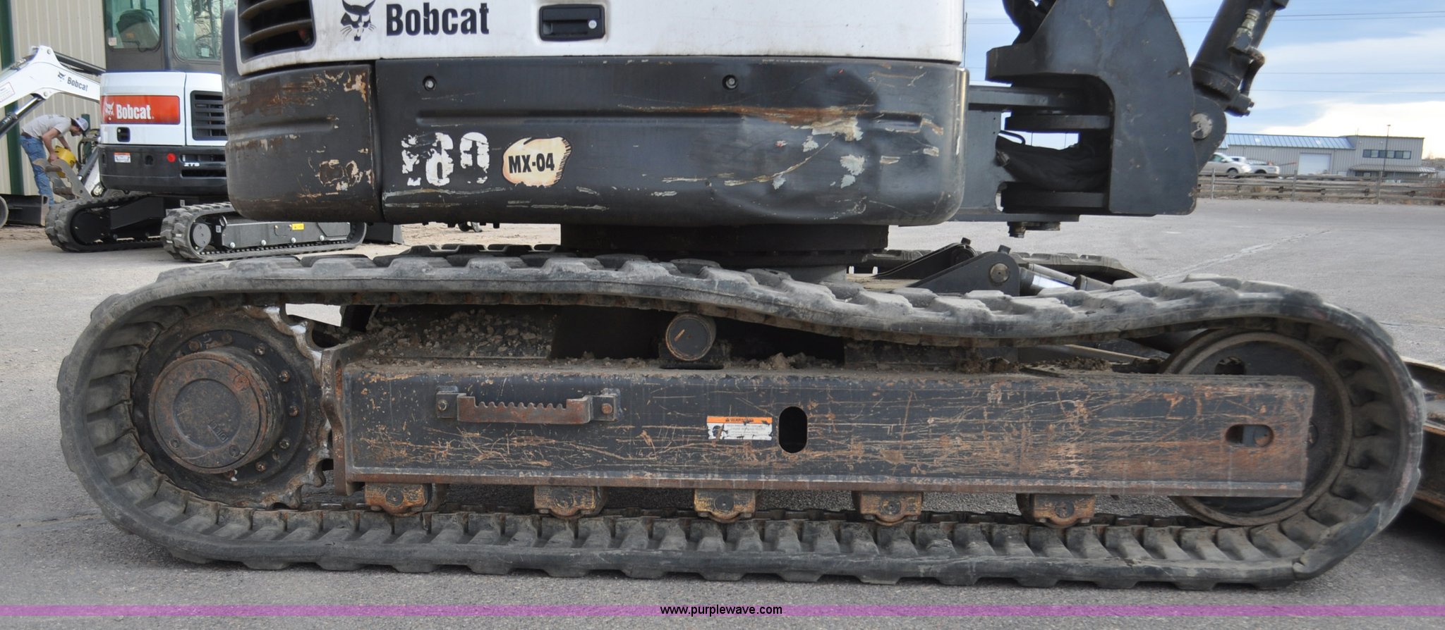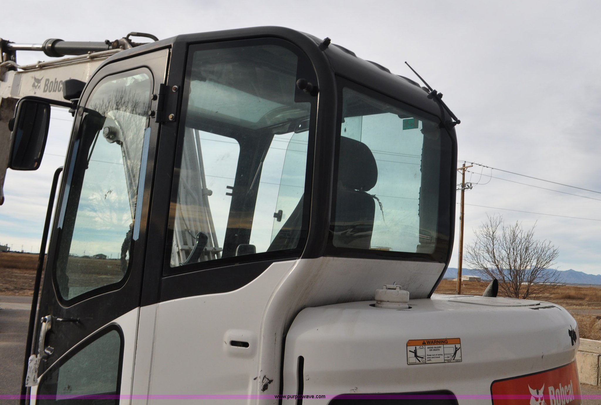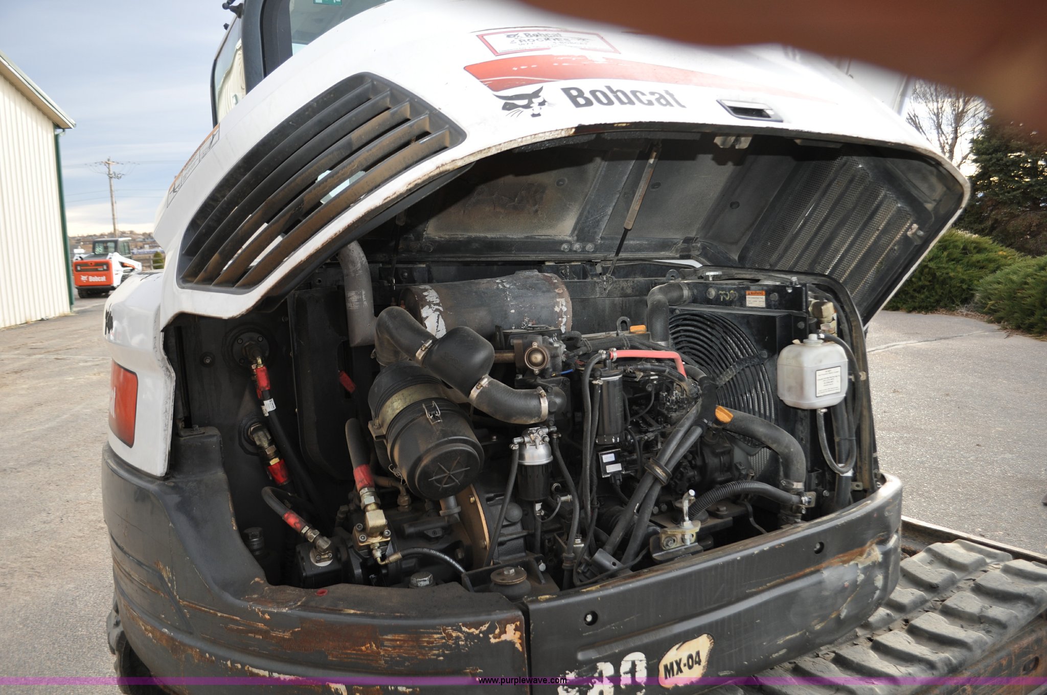 Purple Wave is selling a used Mini Excavator in Colorado. This item is a 2010 Bobcat E80 compact excavator with the following: 4,267 hours on meter, Yanmar 3.32L diesel engine, 57 HP, Hydrostatic transmission, EROPS, Heat, Suspension seat, Front work lights, Knuckle boom, 7'5" stick length, 18"W bucket, (4) bolt-on teeth, Mechanical quick coupler, Two way auxiliary hydraulics, 18"W rubber tracks, Serial AETB11224, Unit# 1029903