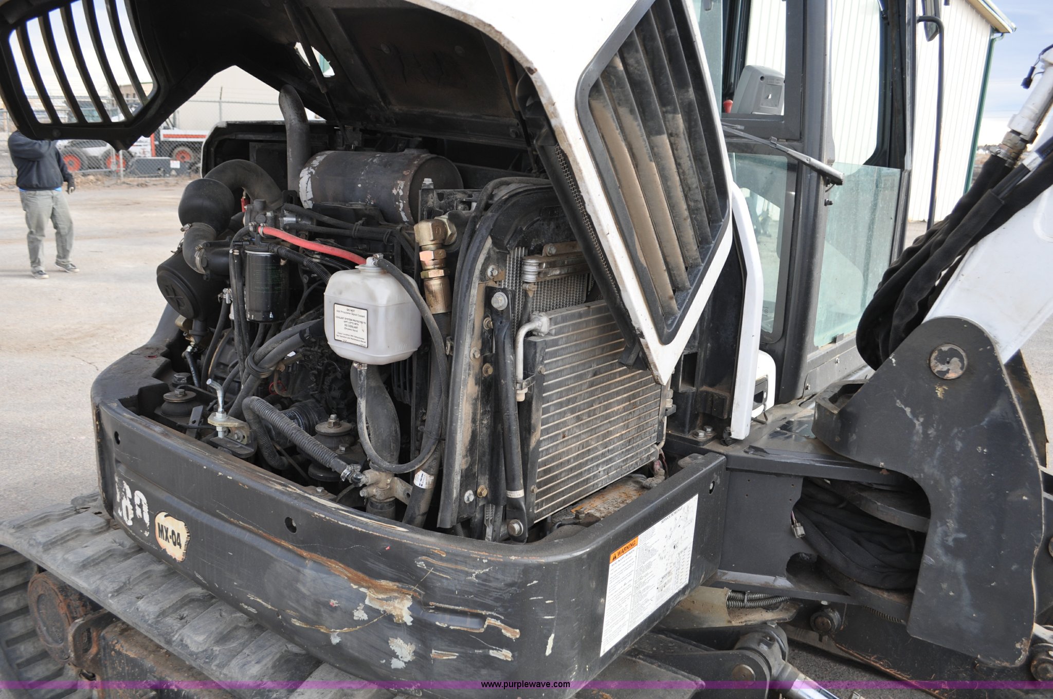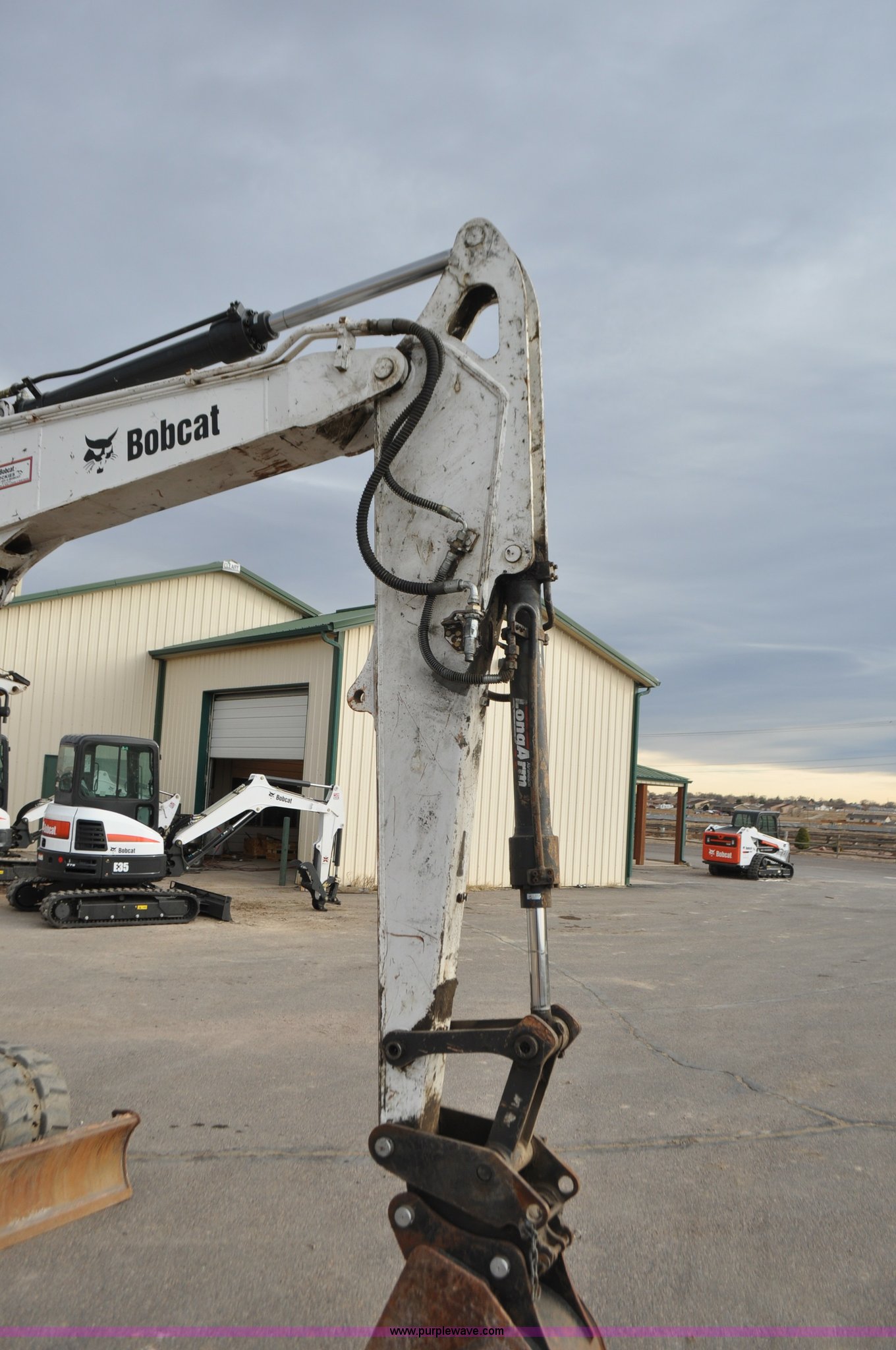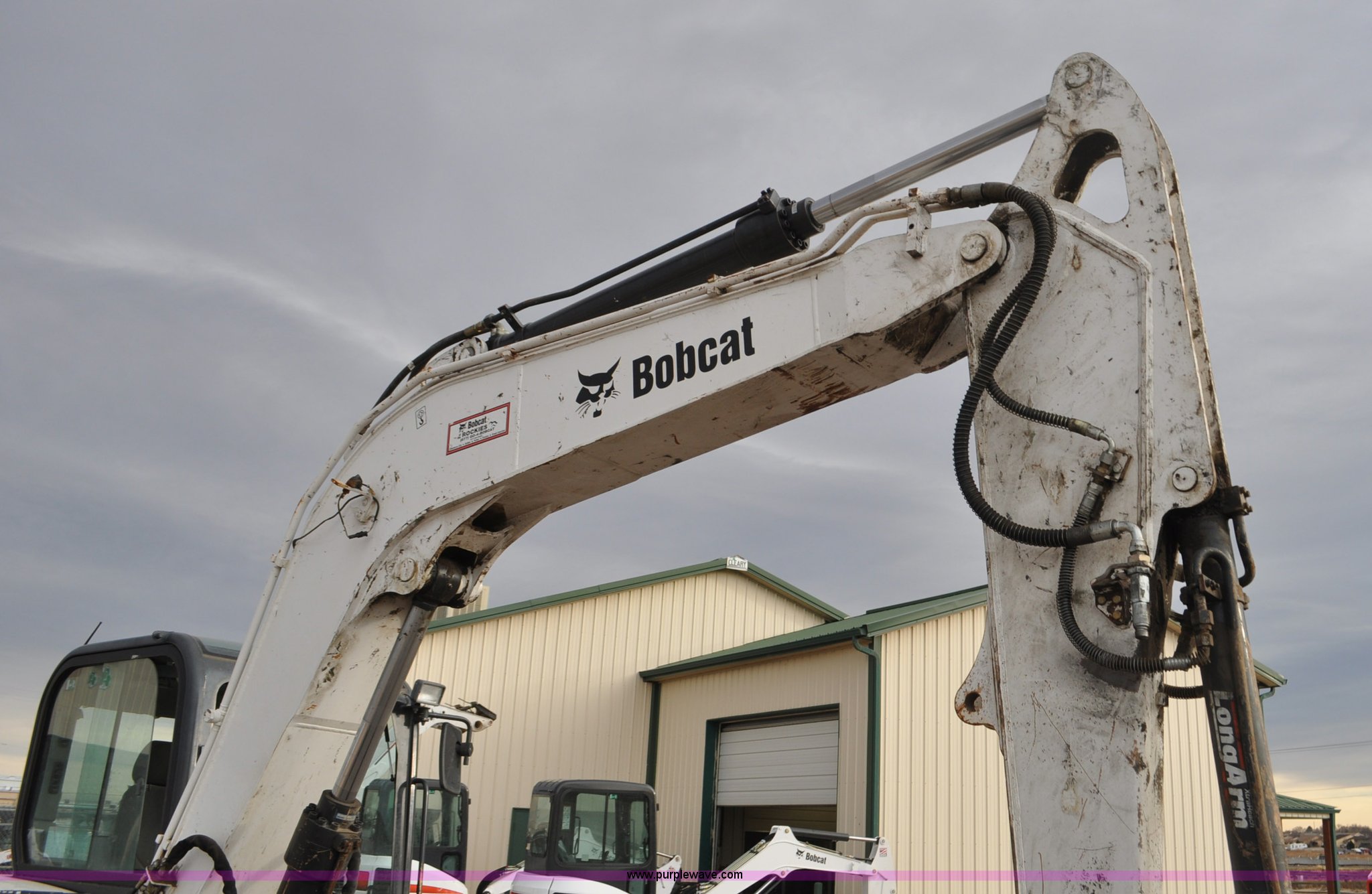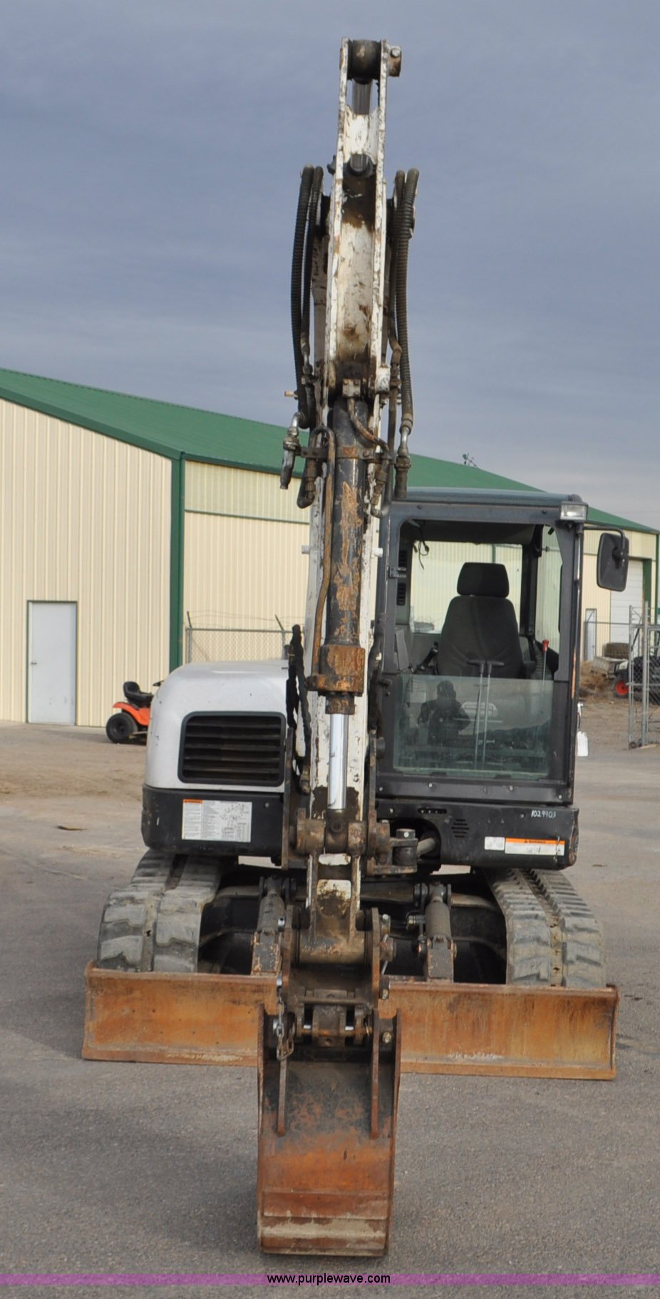 Purple Wave is selling a used Mini Excavator in Colorado. This item is a 2010 Bobcat E80 compact excavator with the following: 4,267 hours on meter, Yanmar 3.32L diesel engine, 57 HP, Hydrostatic transmission, EROPS, Heat, Suspension seat, Front work lights, Knuckle boom, 7'5" stick length, 18"W bucket, (4) bolt-on teeth, Mechanical quick coupler, Two way auxiliary hydraulics, 18"W rubber tracks, Serial AETB11224, Unit# 1029903