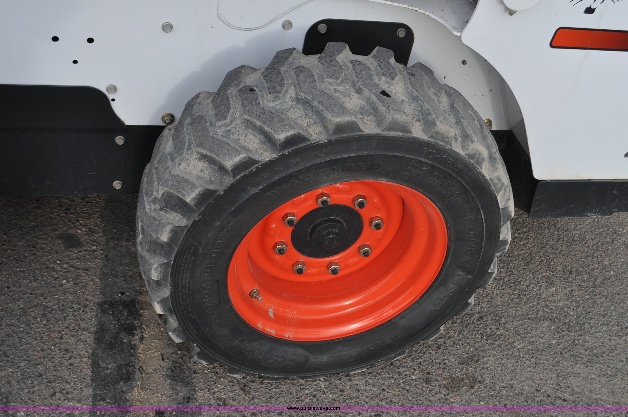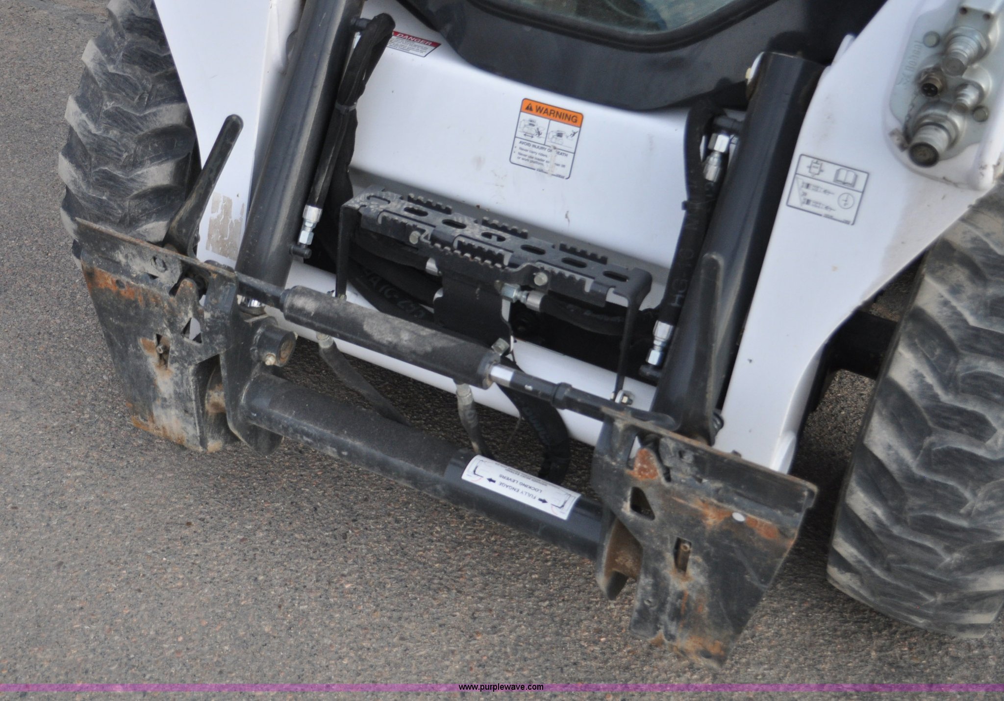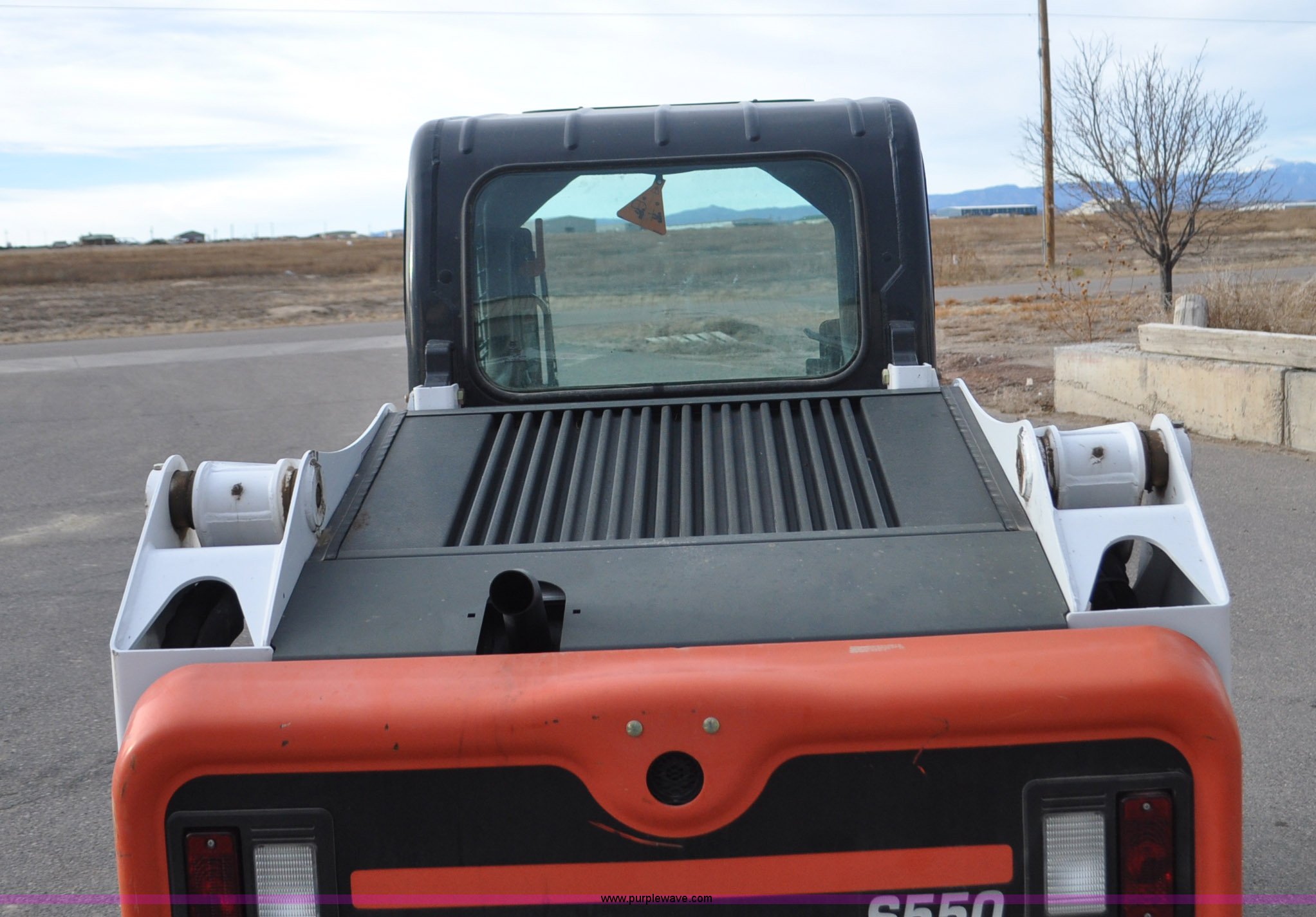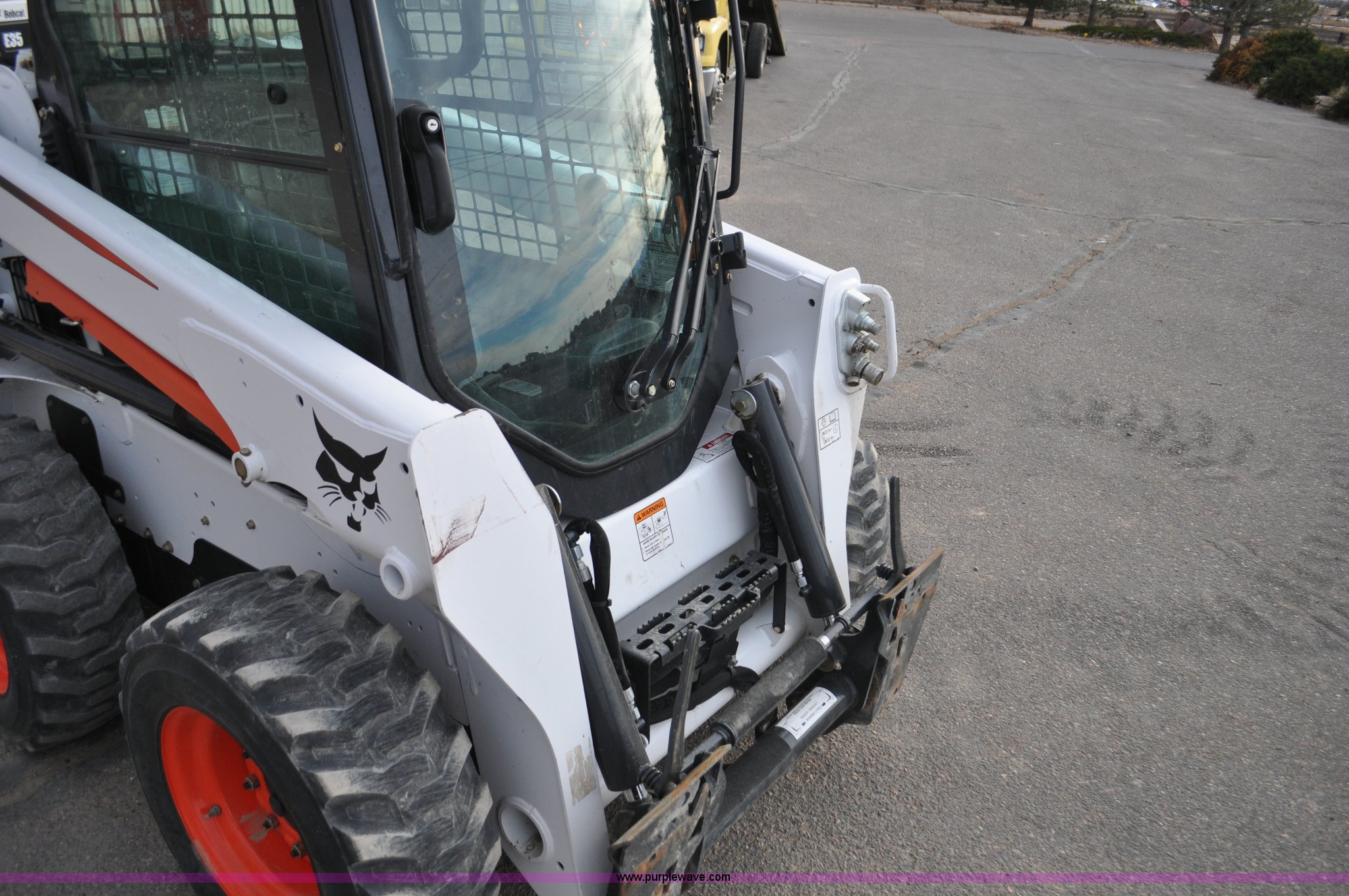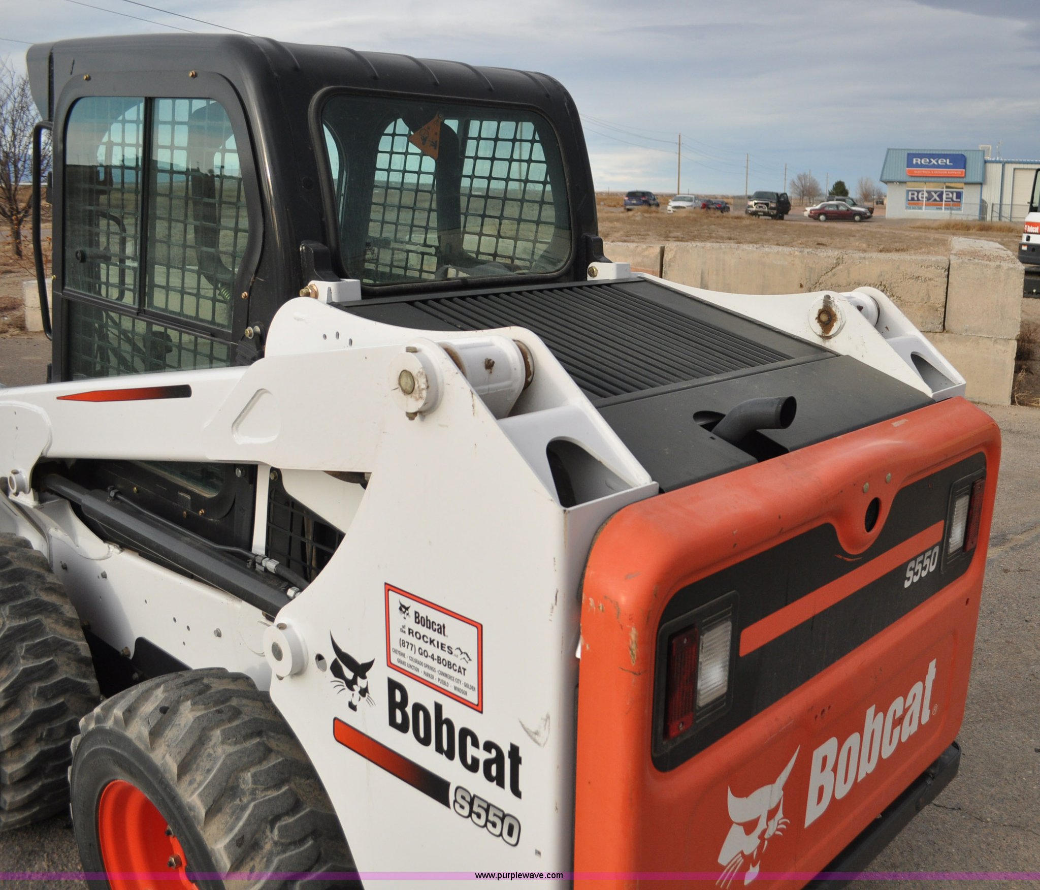 Purple Wave is selling a used Skid Steer Loader in Colorado. This item is a 2014 Bobcat S550 skid steer with the following: 363 hours on meter, Kubota 2.6L four cylinder turbo diesel engine, 61 HP, Hydrostatic transmission, Enclosed cab, Heat, Hand and foot controls, Spring suspension seat, Wipers, Front and rear work lights, Backup alarm, Hydraulic quick coupler, Auxiliary hydraulics, Auxiliary electrical outlet, Bobcat 10-16.5 tires, Serial A3NL11828, Unit# 1075845