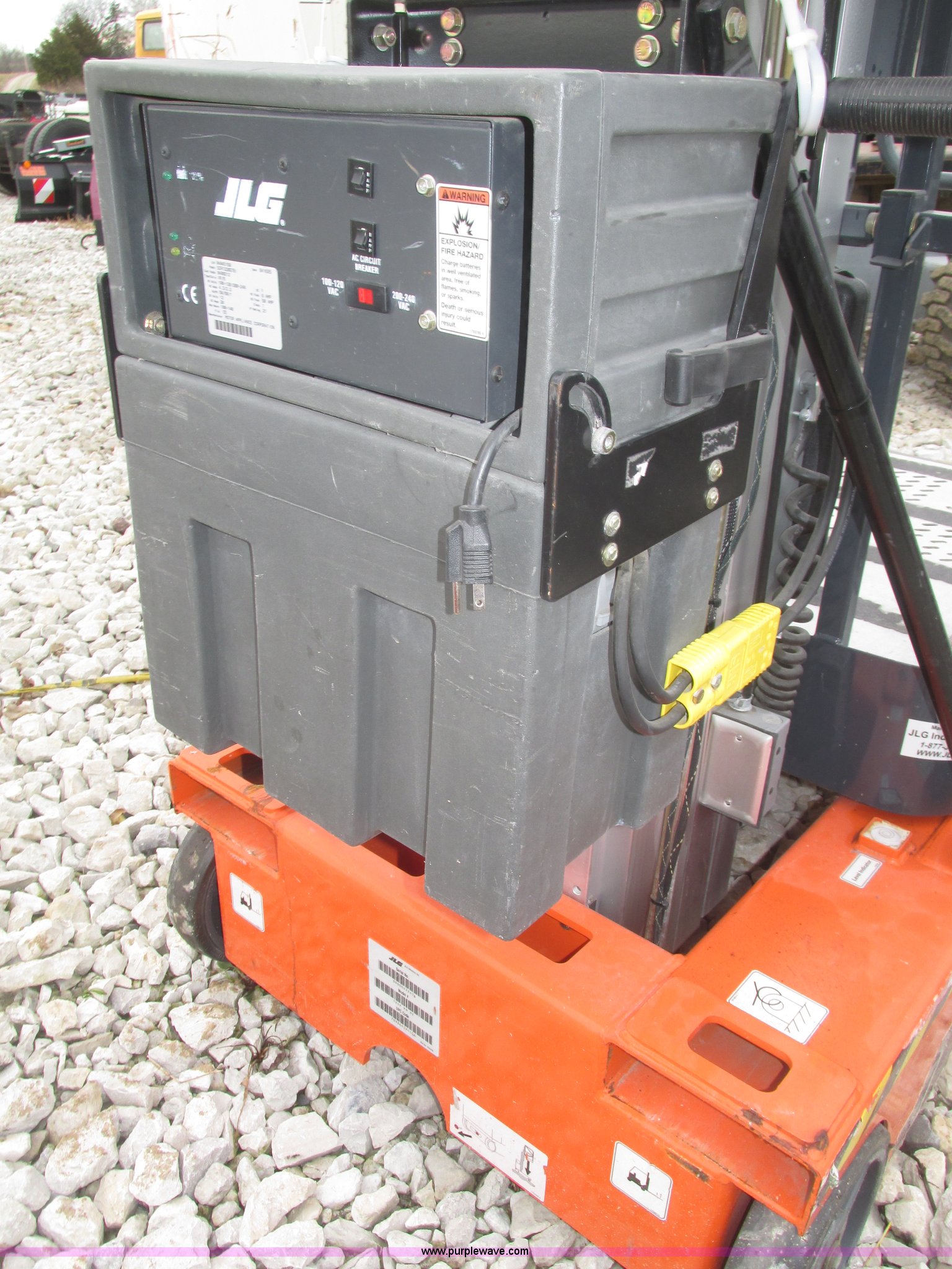 Purple Wave is selling a used Scissor or Vertical Lift in Nebraska. This item is a 2004 JLG 12SP vertical lift with the following: Electric operation, 500 lbs maximum lift capacity, 11'9" maximum lift height, 48" x 28" platform, Platform controls, 43 3/4"H safety rail, Forklift pockets, Stabilizers, Manual emergency lowering valve, Approximately 73"L x 34"W x 78"H stowed height, 6 x 2 solid front tires, 10 x 2-1/2 solid rear tires, 1,155 lbs. base operating weight, Battery charger, Model SCR122097B1, 110V, Serial 04045160, Removable battery pack, Operator manual, Safety manual, ANSI manual, Unused, Safety belt and lanyard included, Serial 0900022267