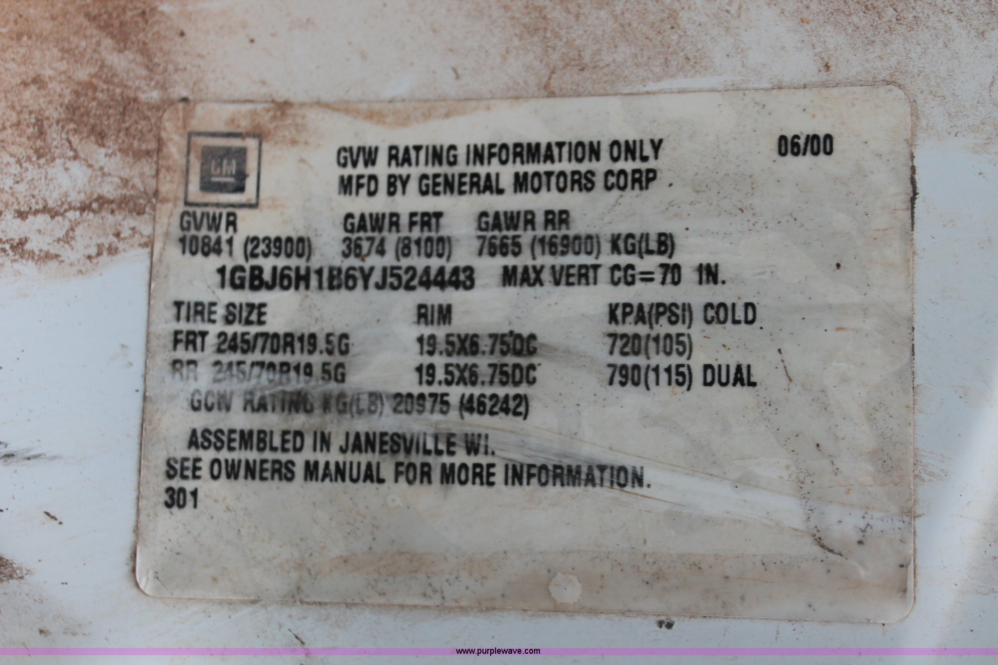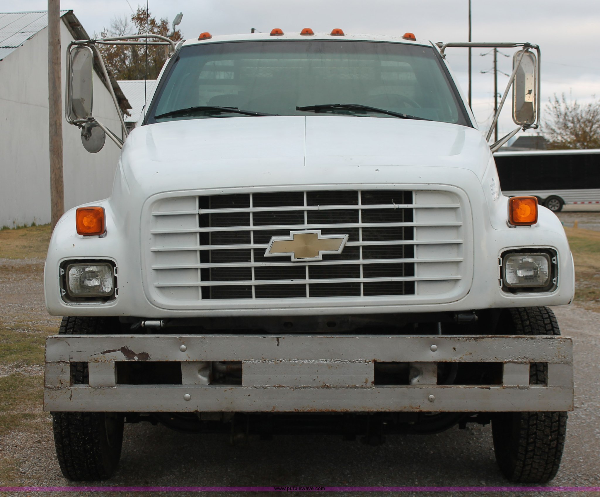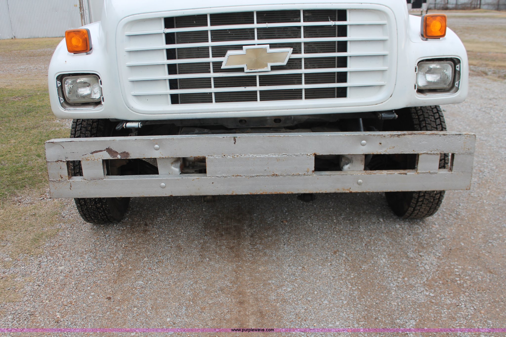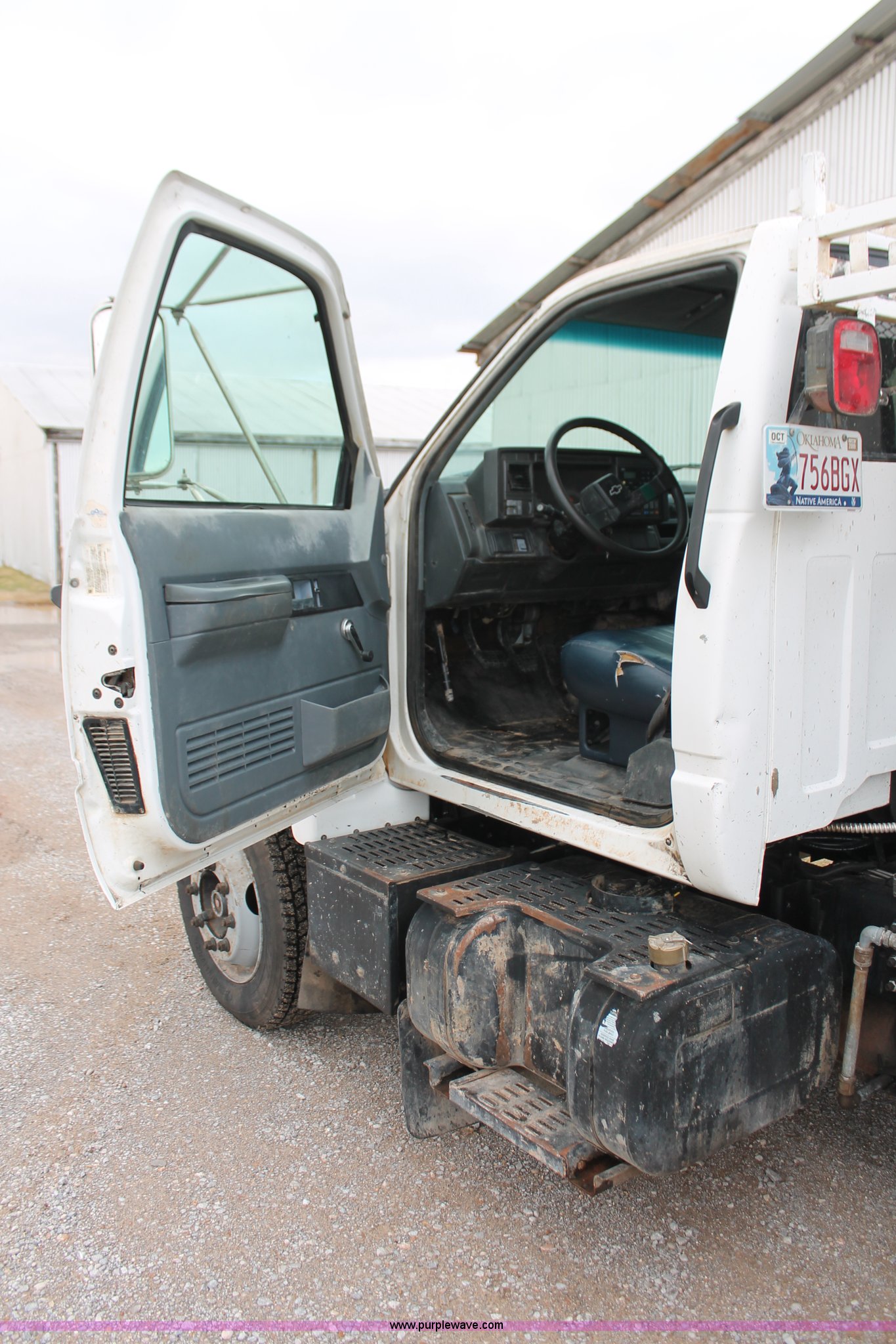 Purple Wave is selling a used Ready Mix or Pump Truck in Oklahoma. This item is a 2000 Chevrolet C6500 concrete pump truck with the following: 154,470 miles on odometer, Vortec 7400 7.4L V8 gas engine, Five speed manual transmission, Vinyl interior, Front tow hooks, PTO, Concrete pumper bed, 16'L, Dual ram, 48"W hopper, 6" diameter outlet plumbing, Toolbox, Dual fuel tanks, Spring suspension, Hydraulic brakes, 192" wheelbase, 245/70R19.5 tires