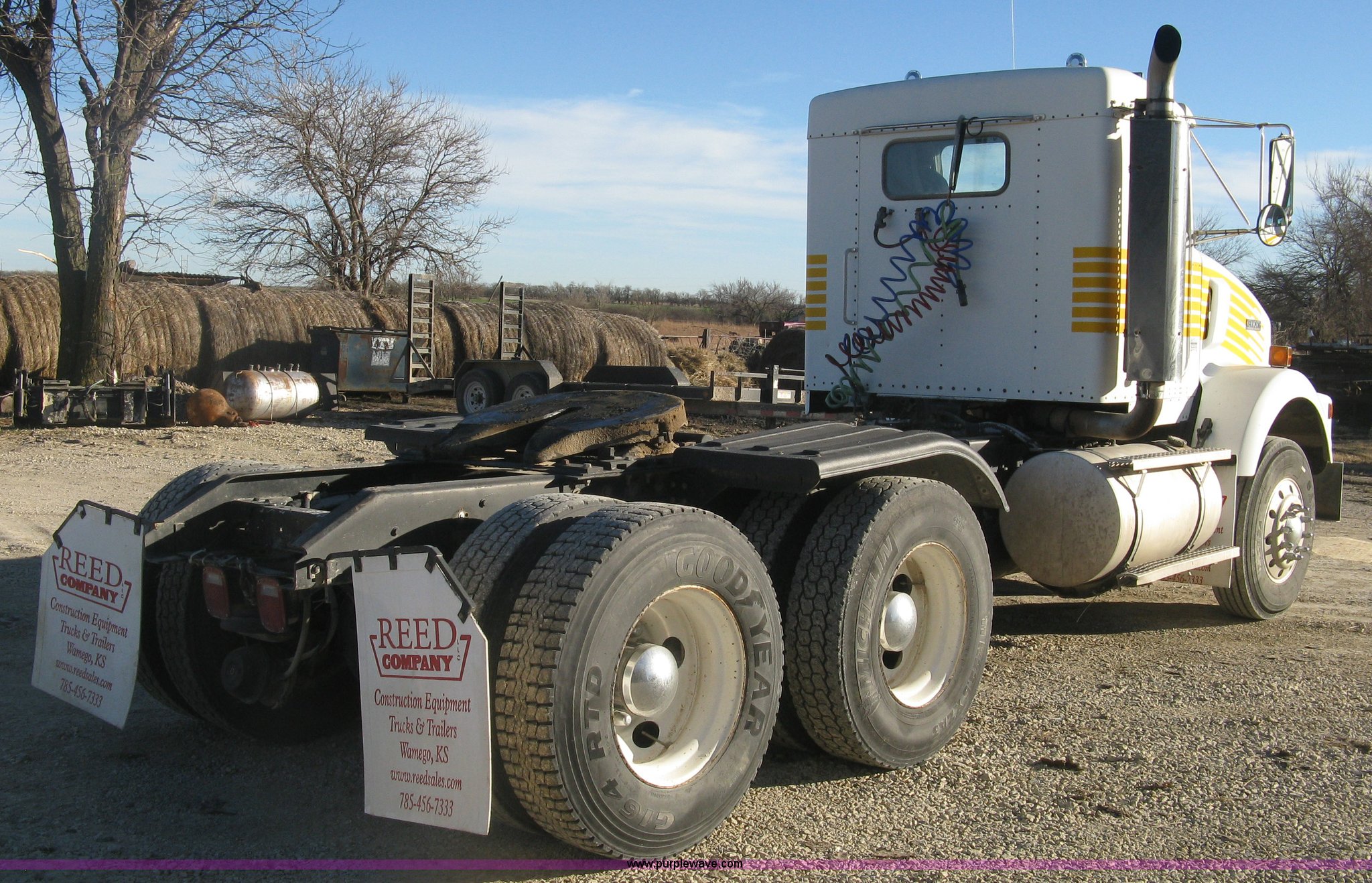 Purple Wave is selling a used Truck Tractor in Kansas. This item is a 1995 Kenworth T800 semi truck with the following: 786,412 miles on odometer, Detroit Diesel Series 60 12.7L L6 turbo diesel engine, Eaton Fuller 10 speed manual transmission, Inter-axle differential lock, AC and heat, Cruise, AM/FM/CD, Power passenger window, Heated mirrors, Air suspension seat, Block heater, Exterior visor, Dump valves, Air operated sliding fifth wheel plate, Single exhaust stack, Dual fuel tanks, Half fenders, Air suspension, Air brakes, 181" wheelbase, 11R22.5 front tires, GVWR 50,000 lbs, FAWR 12,000 lbs, IAWR 19,000 lbs, RAWR 19,000 lbs, Recently replaced batteries, Dash cracked