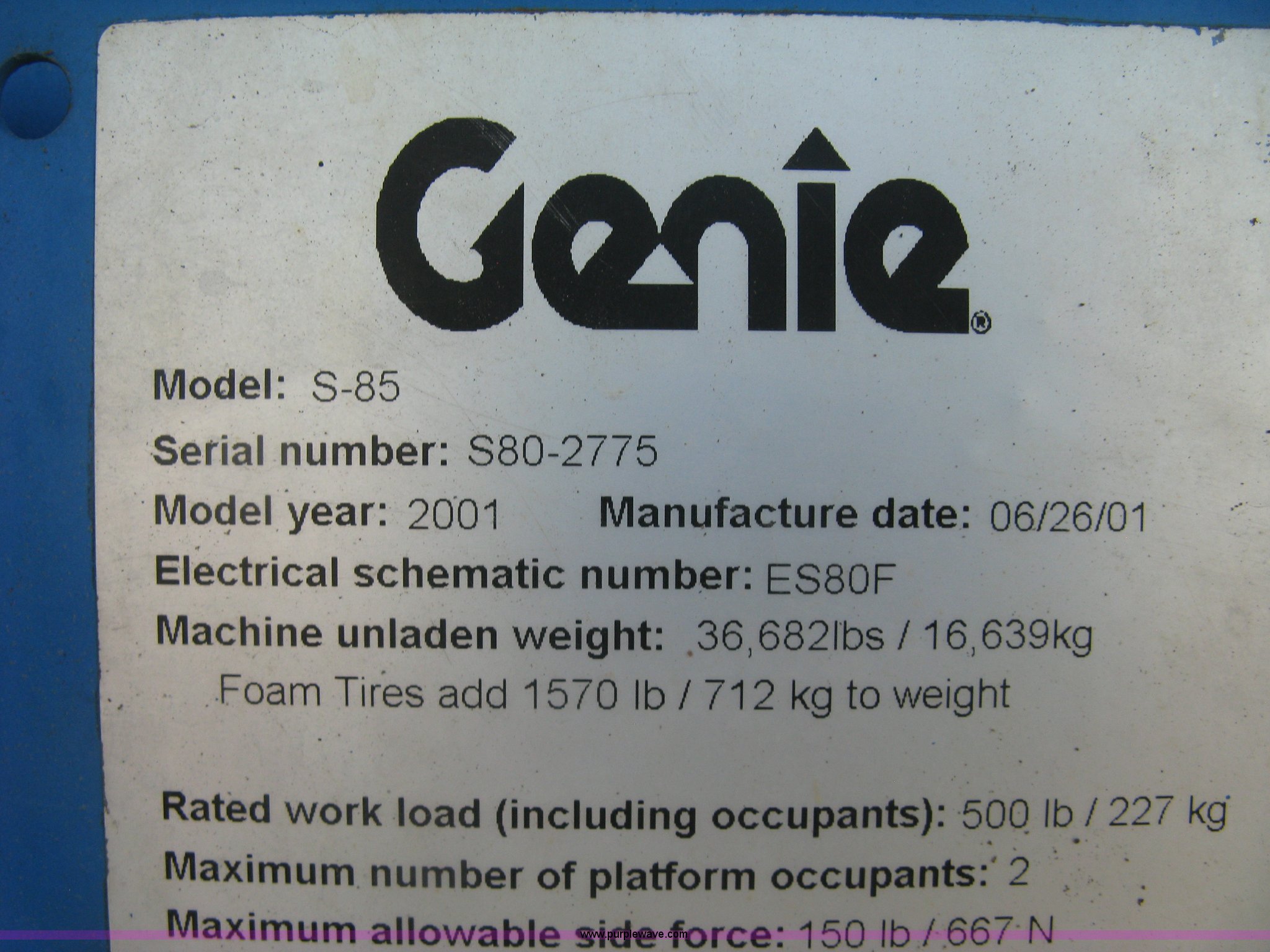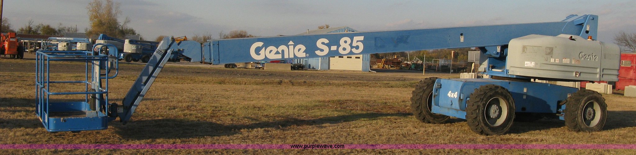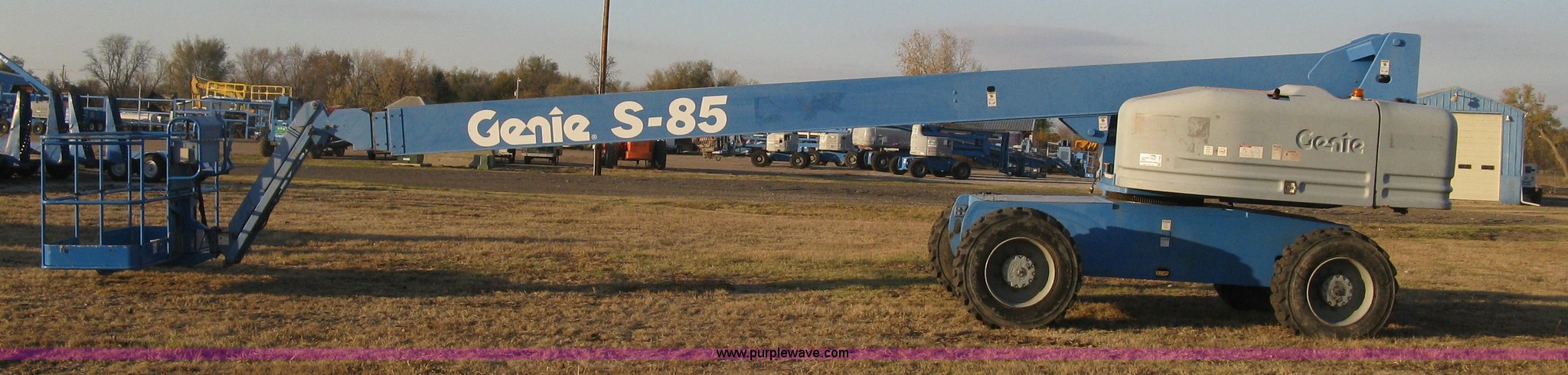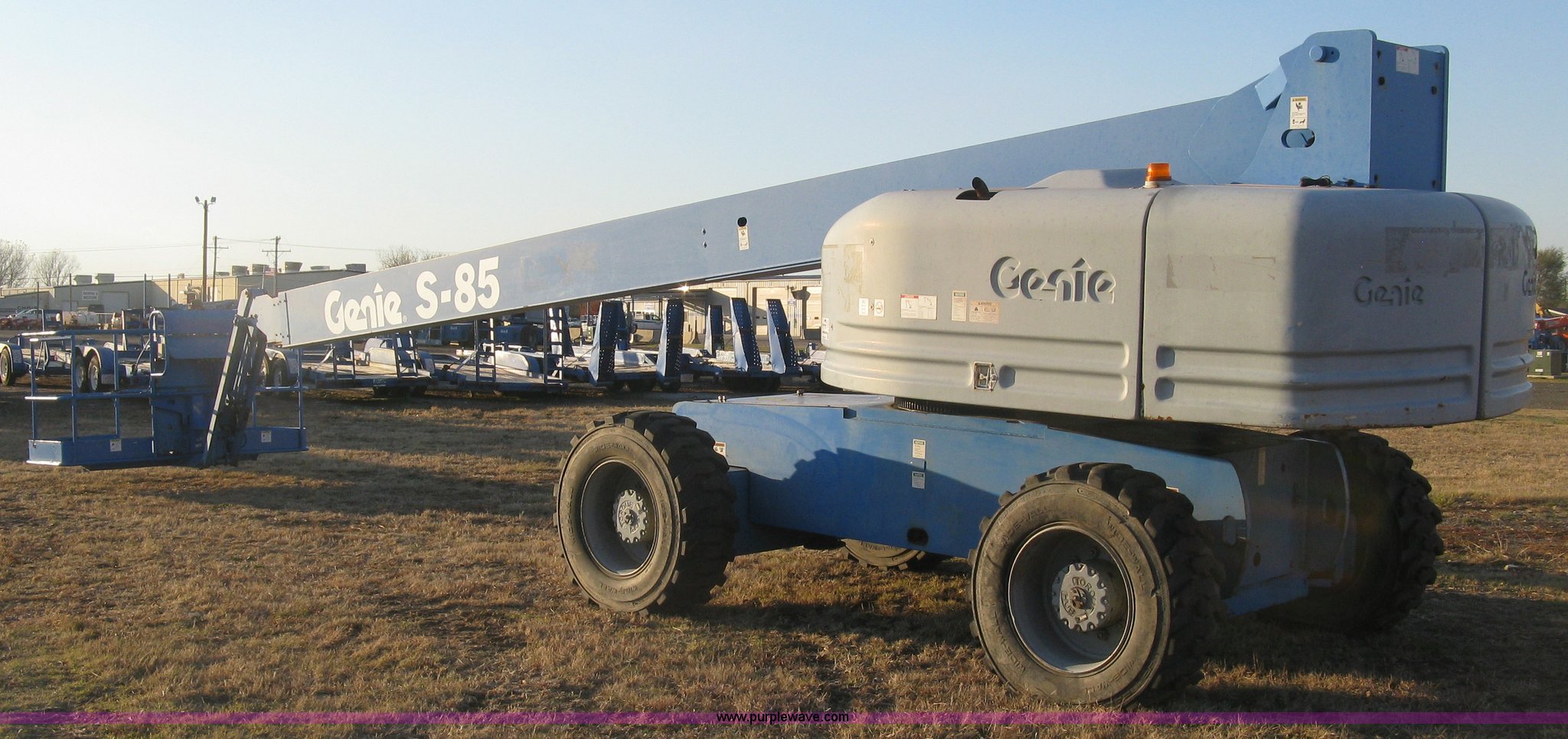 2001 Genie S85 boom lift has sold in Wichita, Kansas for $17050. Item J2988 sold on December 30th, 2015.
