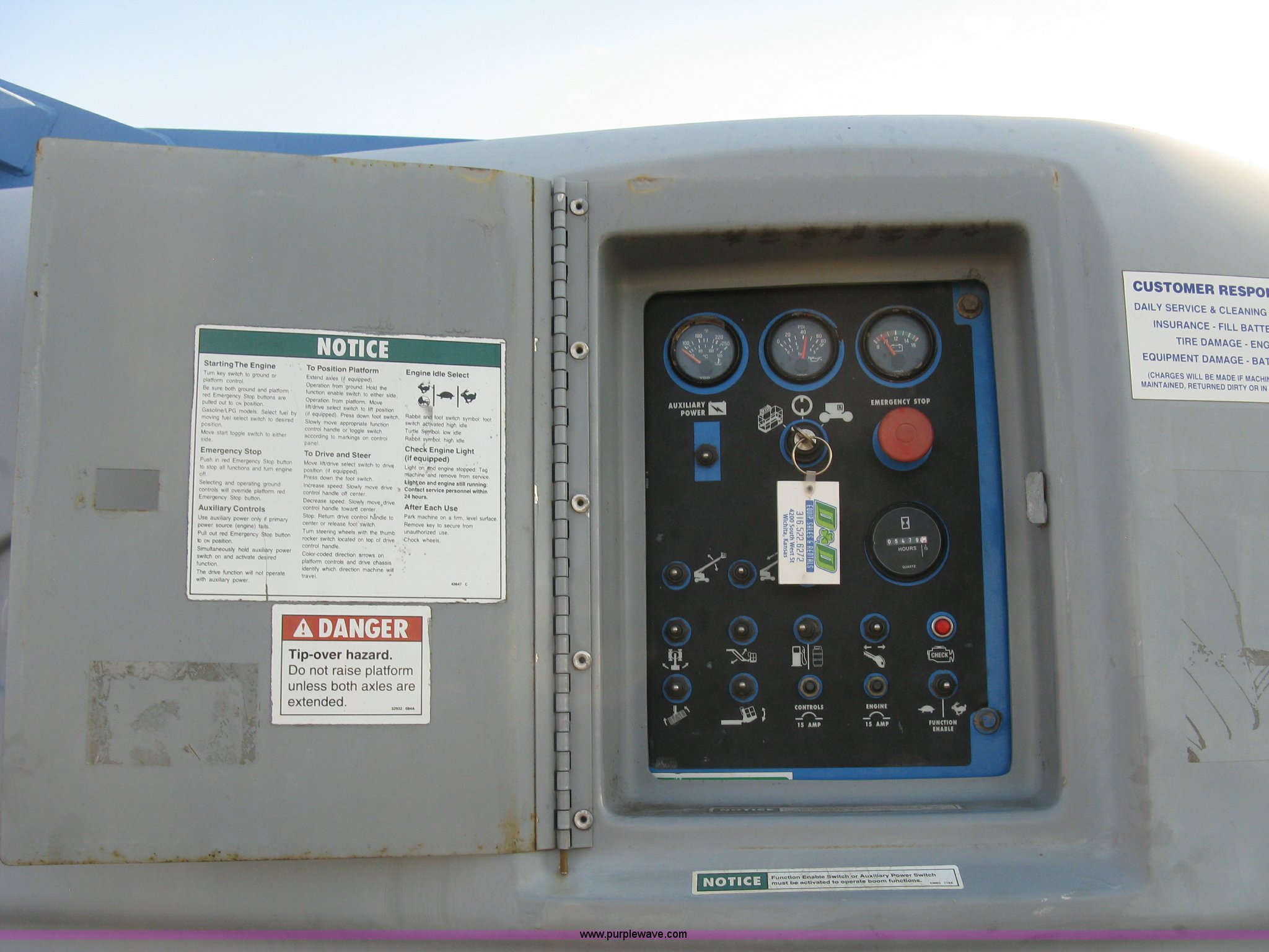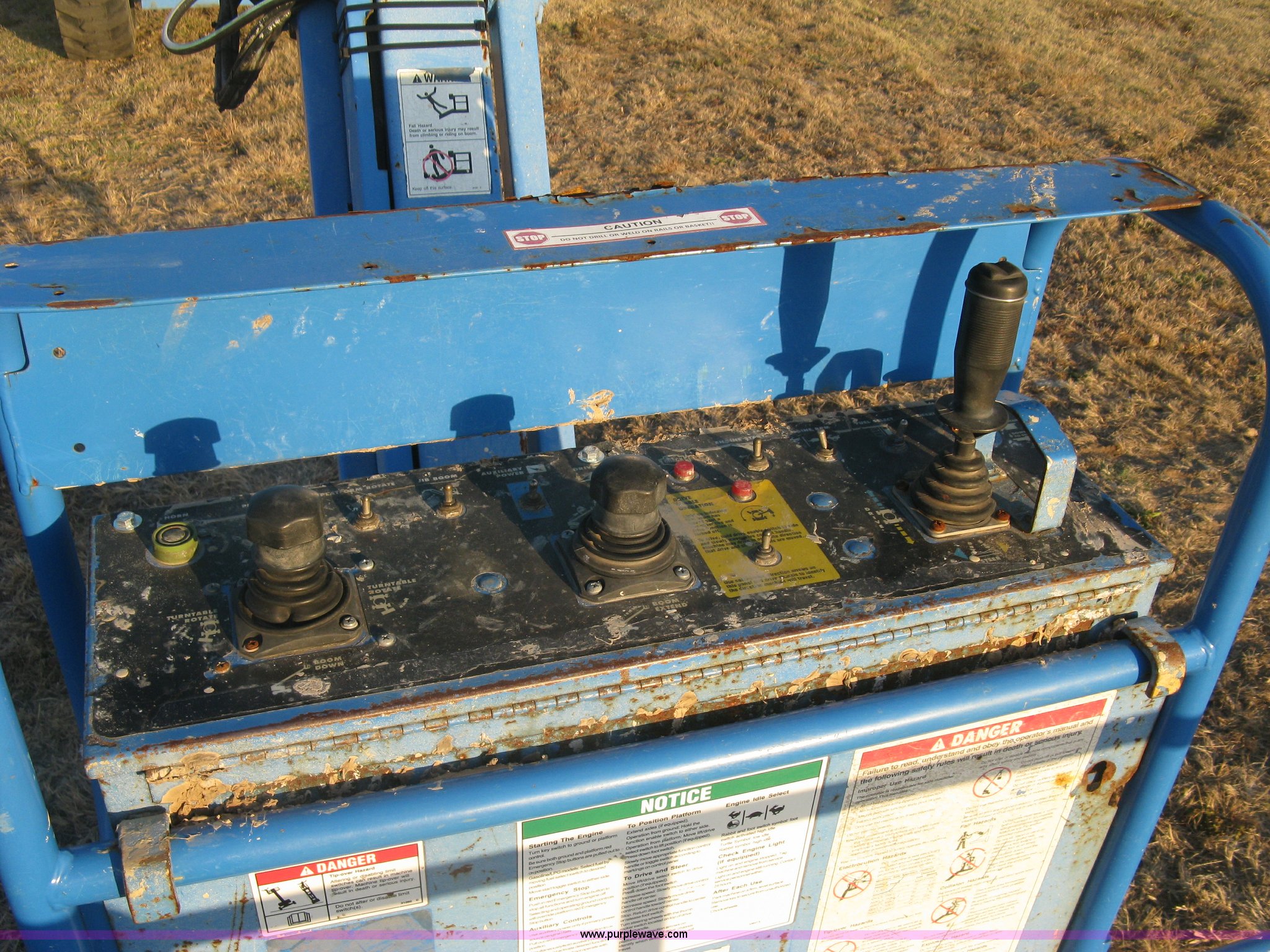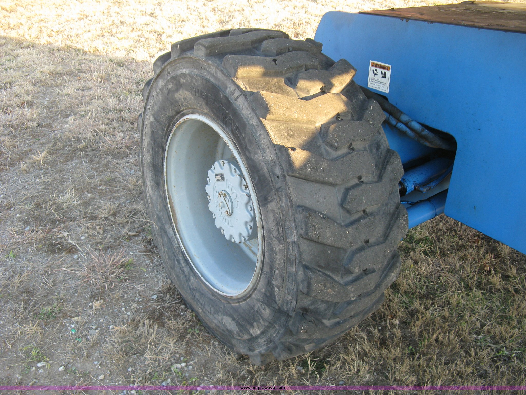 Purple Wave is selling a used Boom Lift in Kansas. This item is a 2001 Genie S85 boom lift with the following: 5,479 hours on meter, Ford four cylinder dual fuel engine, Gas and propane capable, Four wheel drive, 500 lbs maximum lift capacity, 76.11' maximum reach, 85' maximum lift height, 94"L x 34"W platform, Two person capacity, AC power outlet, Platform rotation, Powered jib extension, Hydraulic extending outrigger augers, (2) hydraulic jack posts, Ground outrigger controls, 385/65-22.5 NHS tires, 35,860 lbs. base operating weight, Serial 580-2775